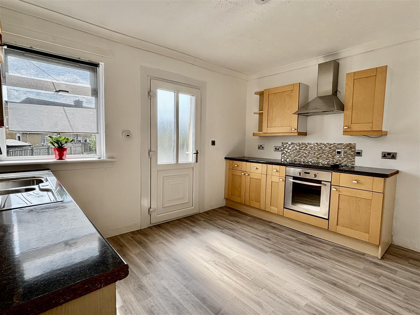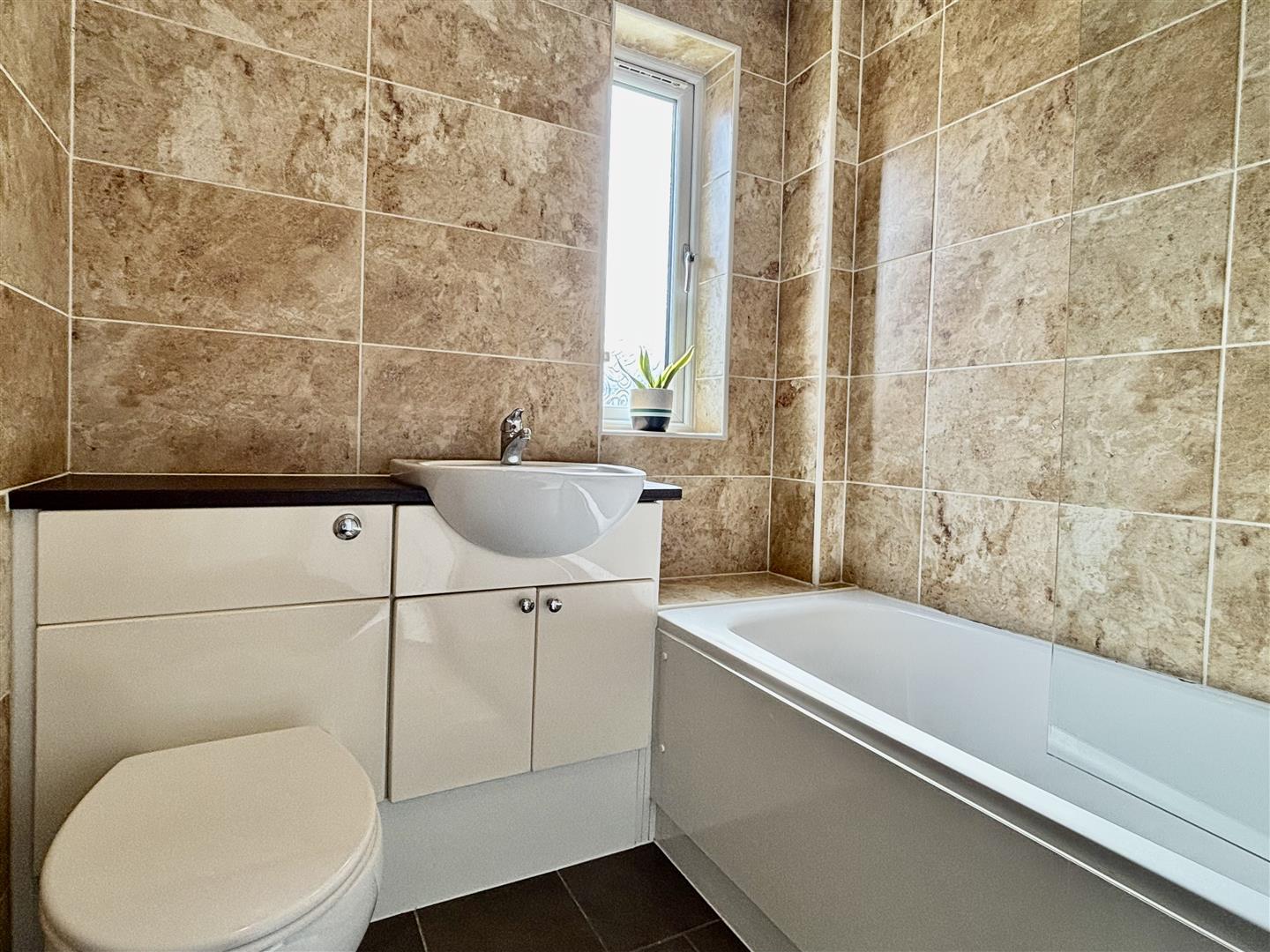 The property comprises of an entrance staircase leading up into a carpeted front-facing lounge, a generous sized fully fitted kitchen with wall and base units with built in oven and hob, two bedrooms, both of which are doubles with the master located to the front and hosting fitted wardrobes. The fully tiled family bathroom hosts a three piece suite consisting of bar to wall WC/sink combination unit and bath with overhead mixer shower.