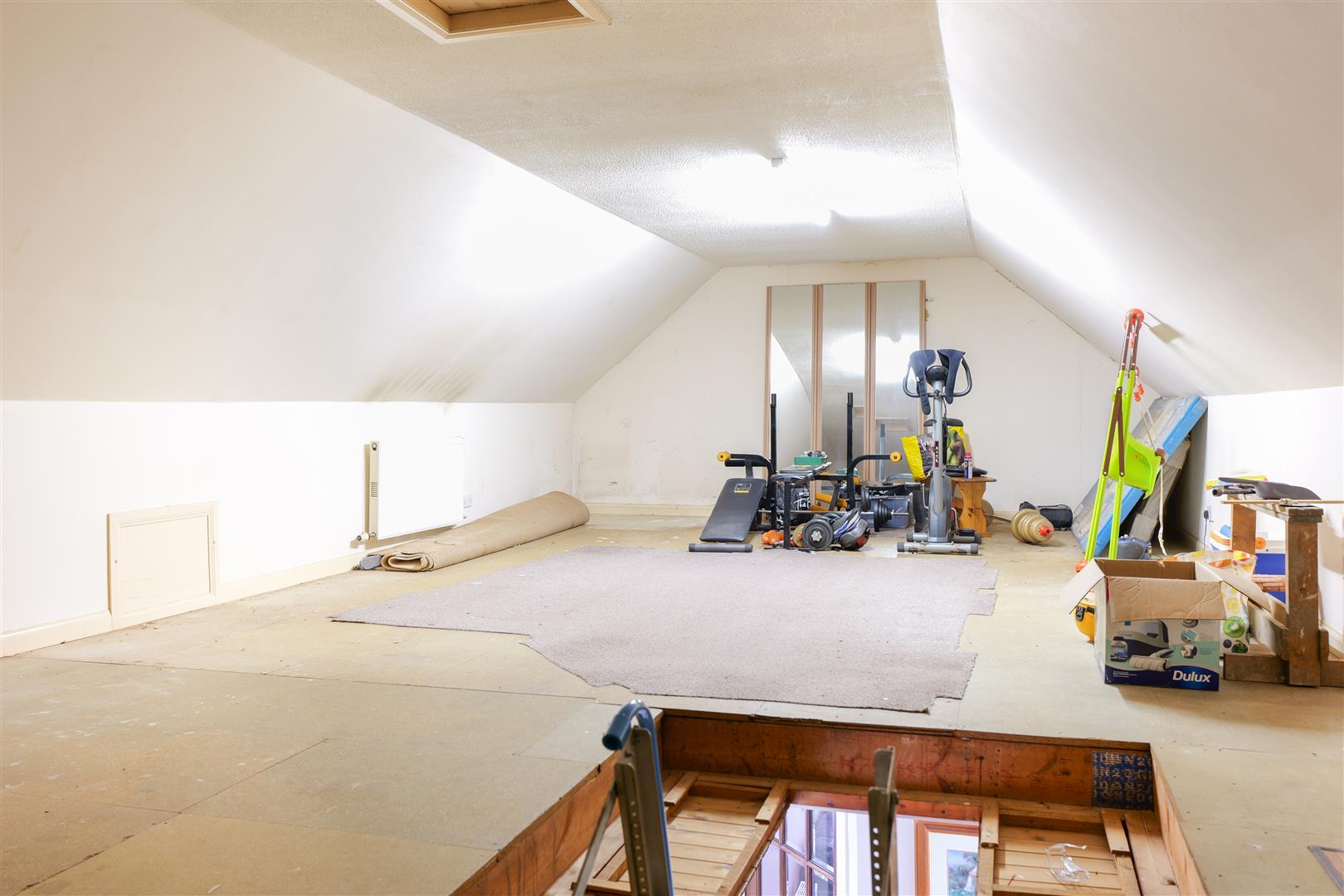 This charming and spacious home welcomes you with a bright entrance hallway, a good size rear facing lounge with carpeted flooring, patio doors and a feature fireplace, a fitted kitchen with wall and floor mounted units and built in oven and hob, a fully tiled bathroom with WC, sink and bath with overhead electric shower. The home boasts three generously sized bedrooms, one of which is currently used as a dining room and enjoys direct access to the private rear garden via patio doors. You'll also find a substantial loft space which is floored insulated and sheeted with electrics and central heating, this would make an additional two bedrooms and bathroom subject to required warrants.