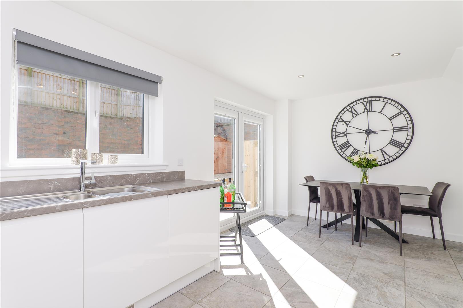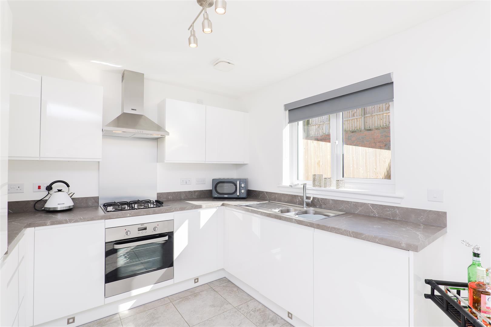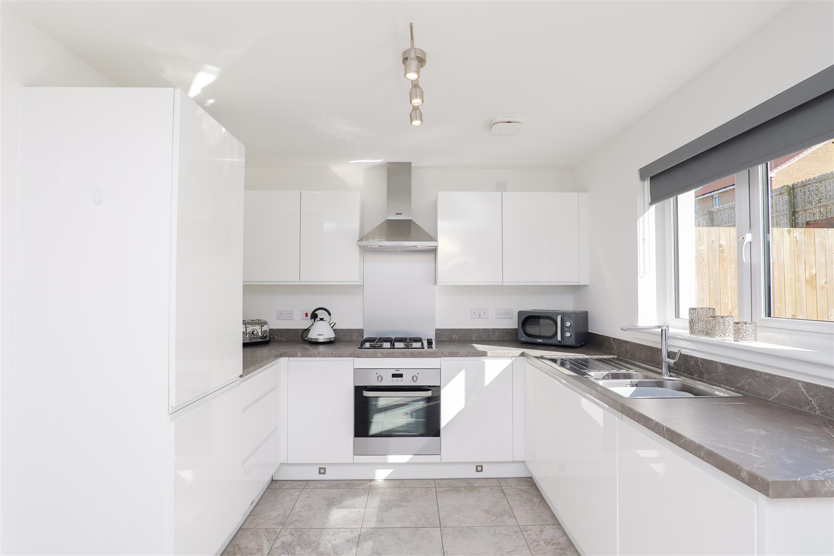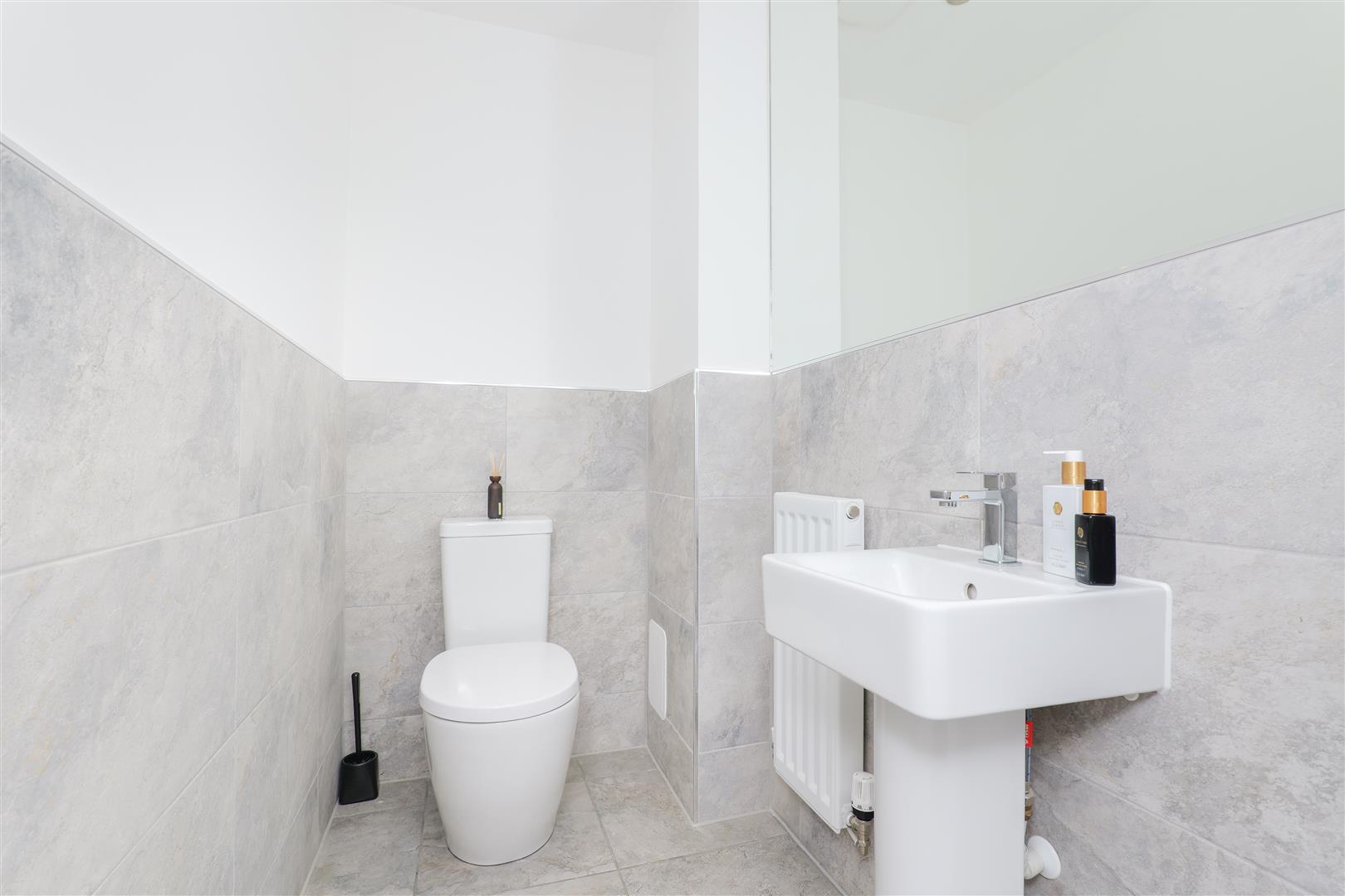 Upon entering, you're greeted by a welcoming hallway that leads to a bright and airy front-facing lounge. The modern kitchen/dining area is fully equipped with ample storage, a built-in oven and gas hob, and French doors that open to the private rear garden. Completing the ground floor is a convenient cloakroom WC.