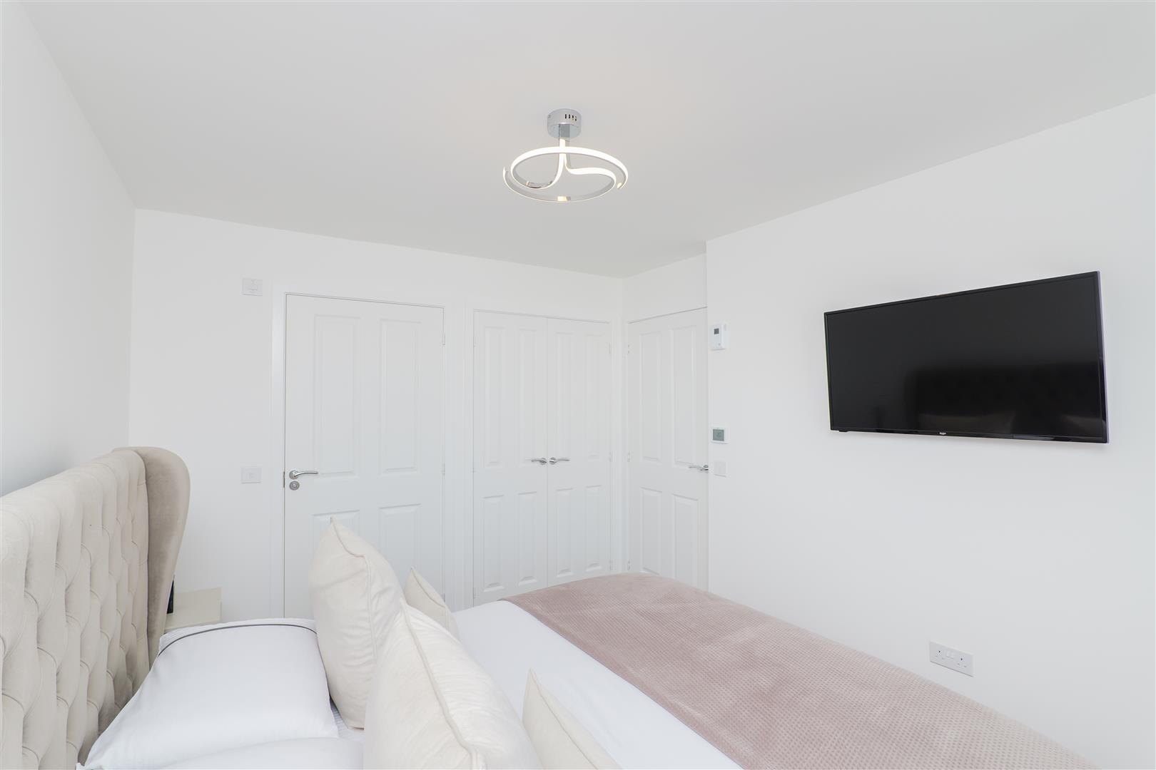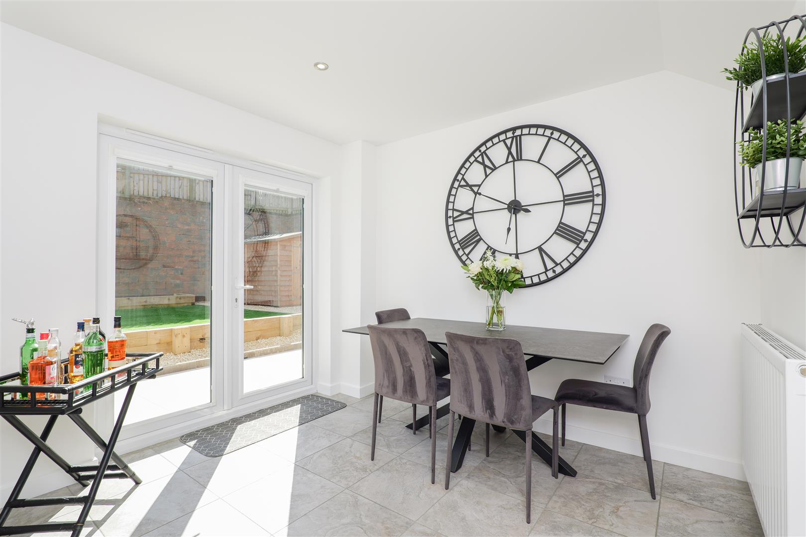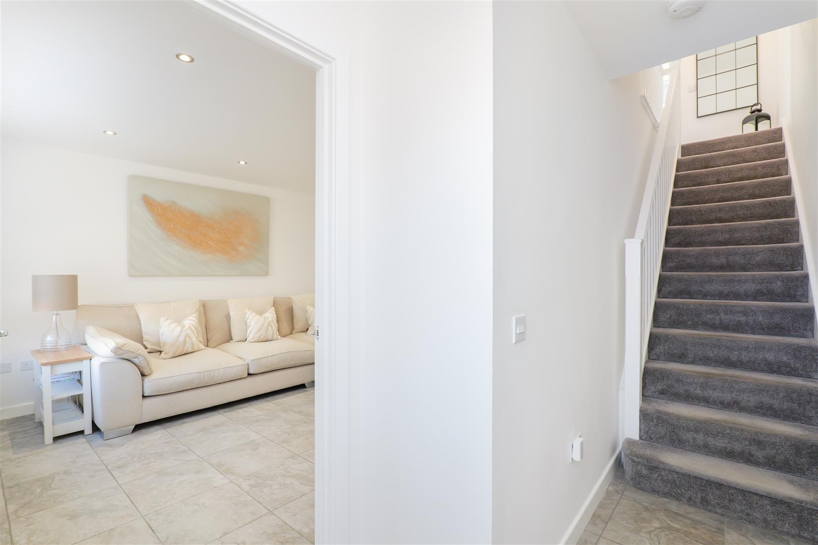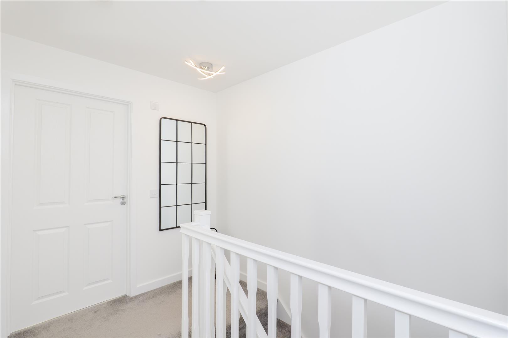 The upper level features a landing area that leads to three beautifully decorated bedrooms, all carpeted and finished in neutral tones, with two offering fitted wardrobes. The master bedroom includes a contemporary en-suite shower room, while the stylish family bathroom boasts chic part tiling.