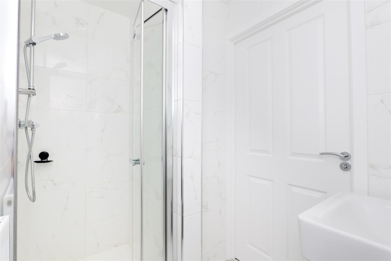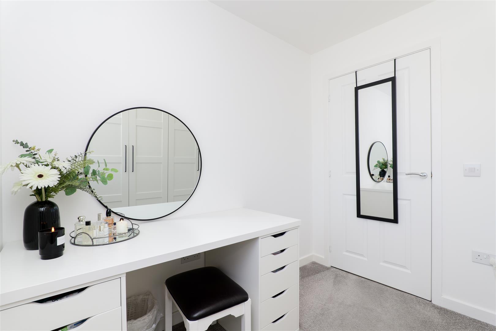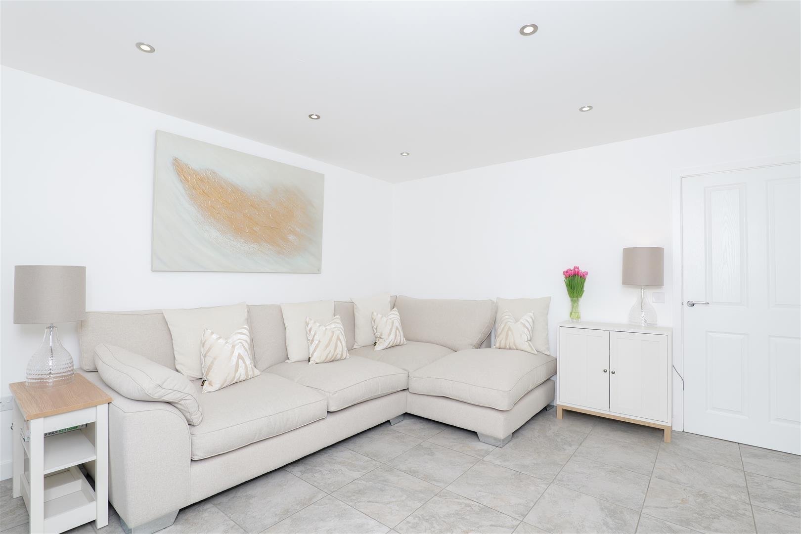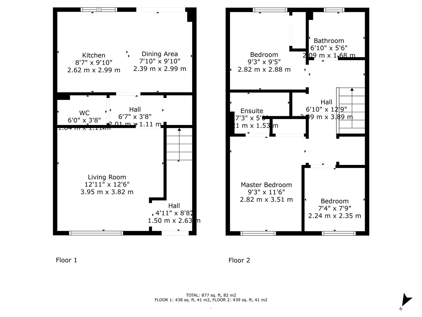 The upper level features a landing area that leads to three beautifully decorated bedrooms, all carpeted and finished in neutral tones, with two offering fitted wardrobes. The master bedroom includes a contemporary en-suite shower room, while the stylish family bathroom boasts chic part tiling.