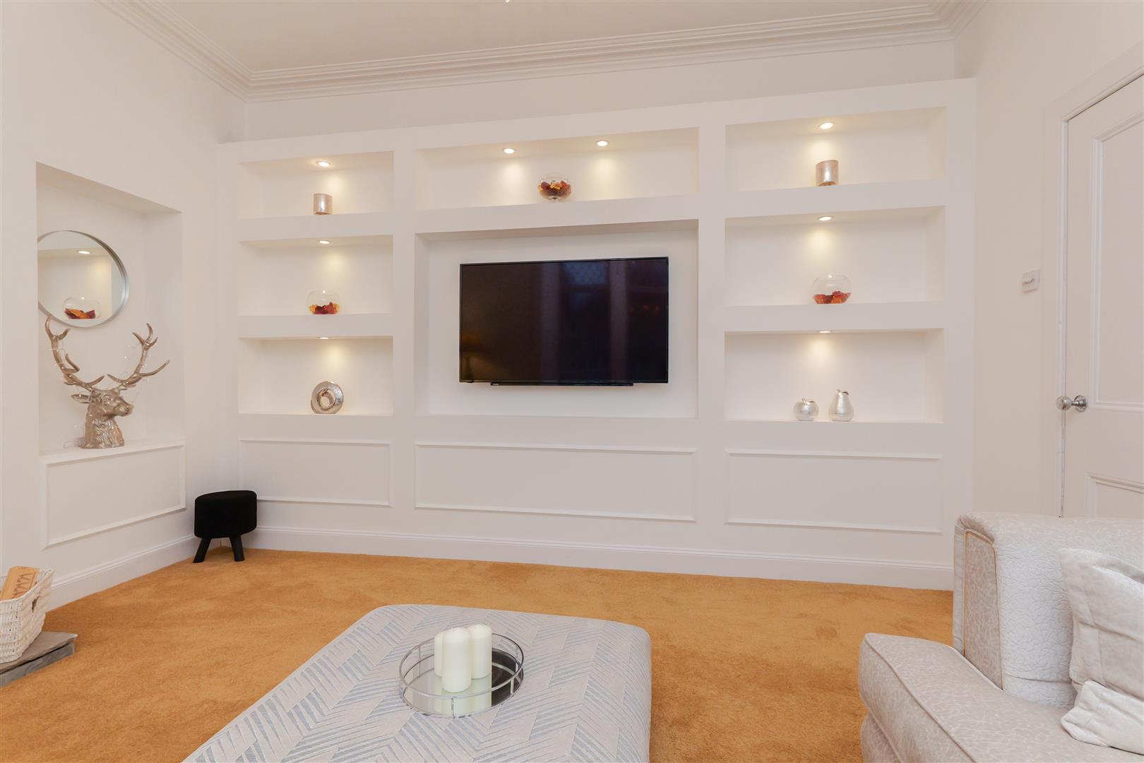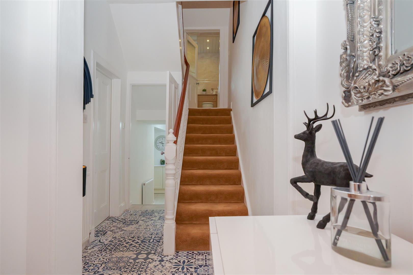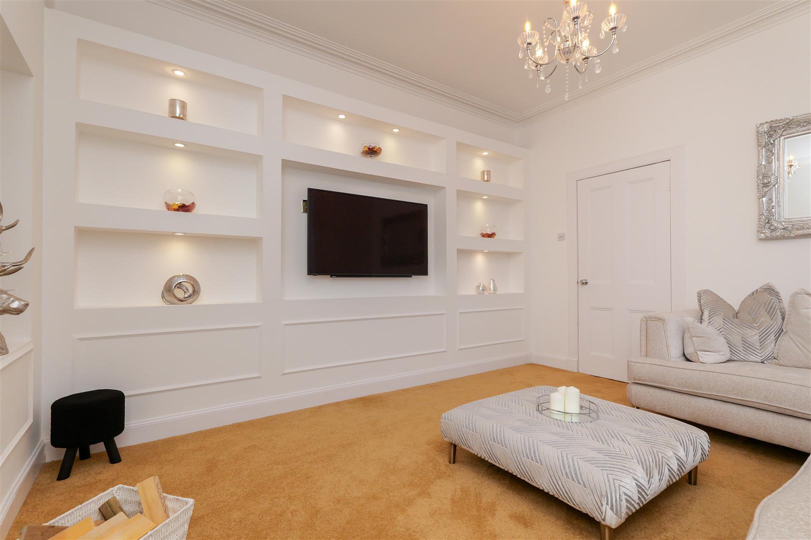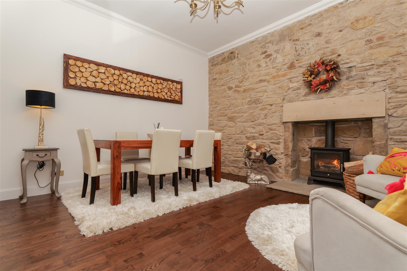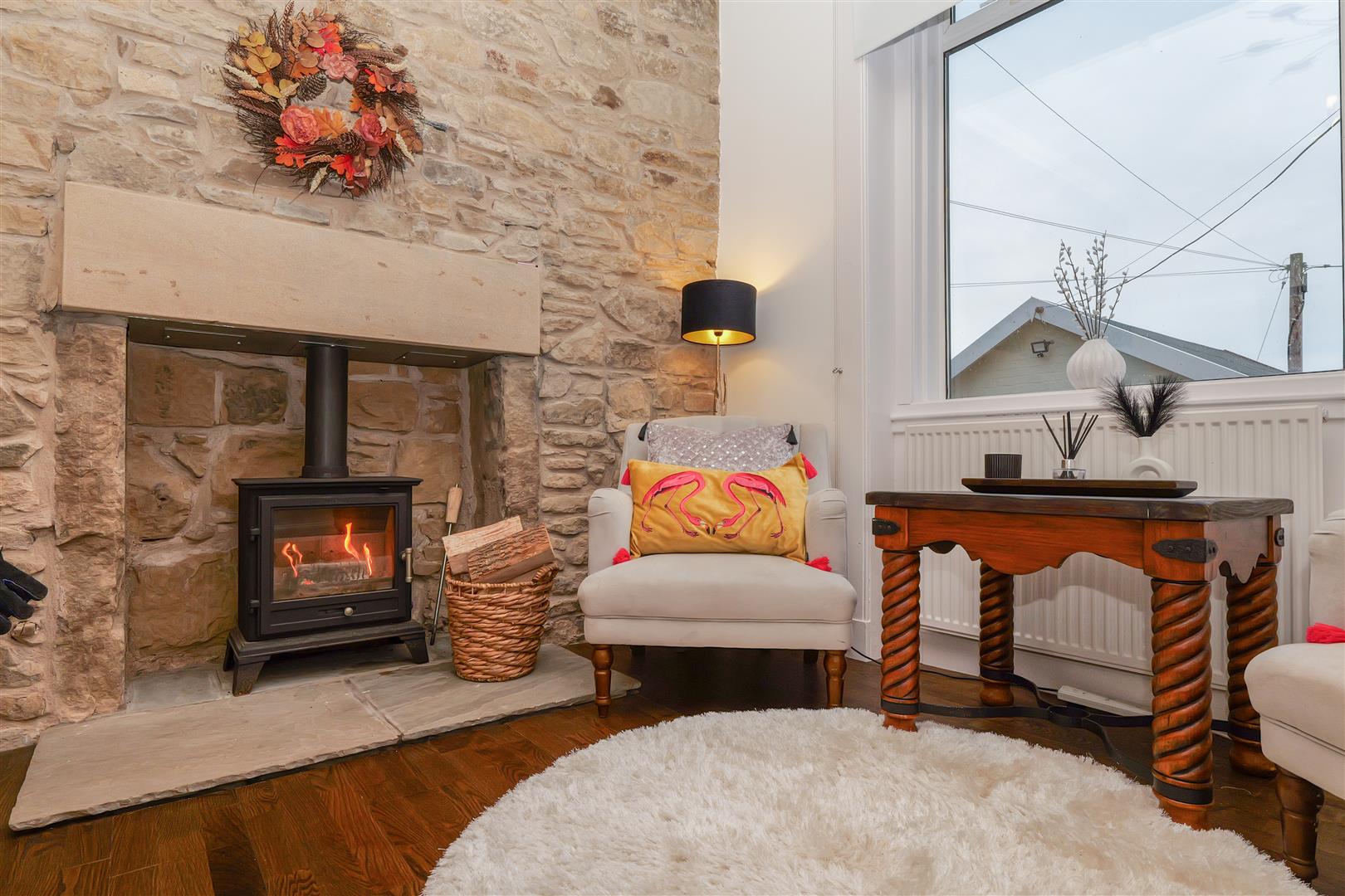 This beautifully presented and most impressive two bedroom semi detached home has been completed to a high standard with tasteful decoration throughout and is in true walk in condition making it an ideal family home. Set over two levels with the ground floor comprising of a beautiful welcoming entrance hallway, a stunning front facing lounge with a spectacular media wall, a separate dining/sitting room with engineered flooring and a sandstone feature wall with log burner, a modern fitted kitchen with built in floor units, a large range style cooker and full length glass door which allows for access to the decked patio.