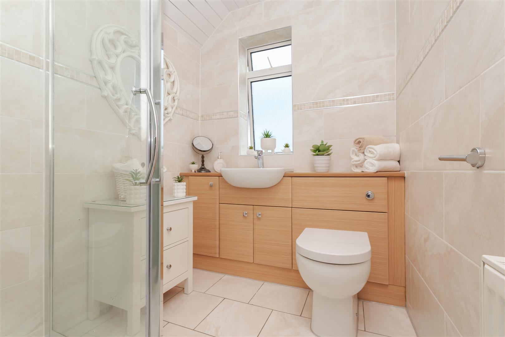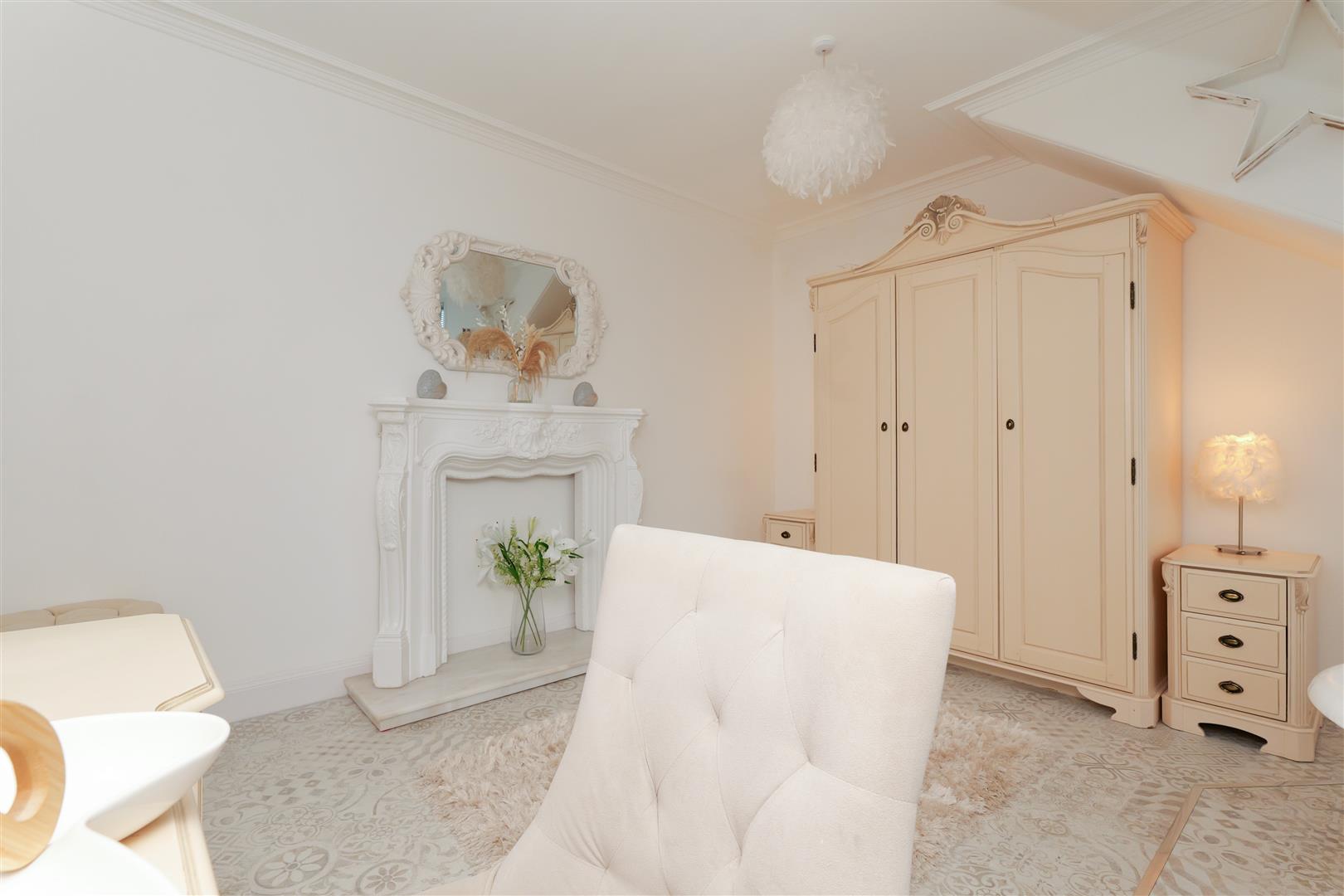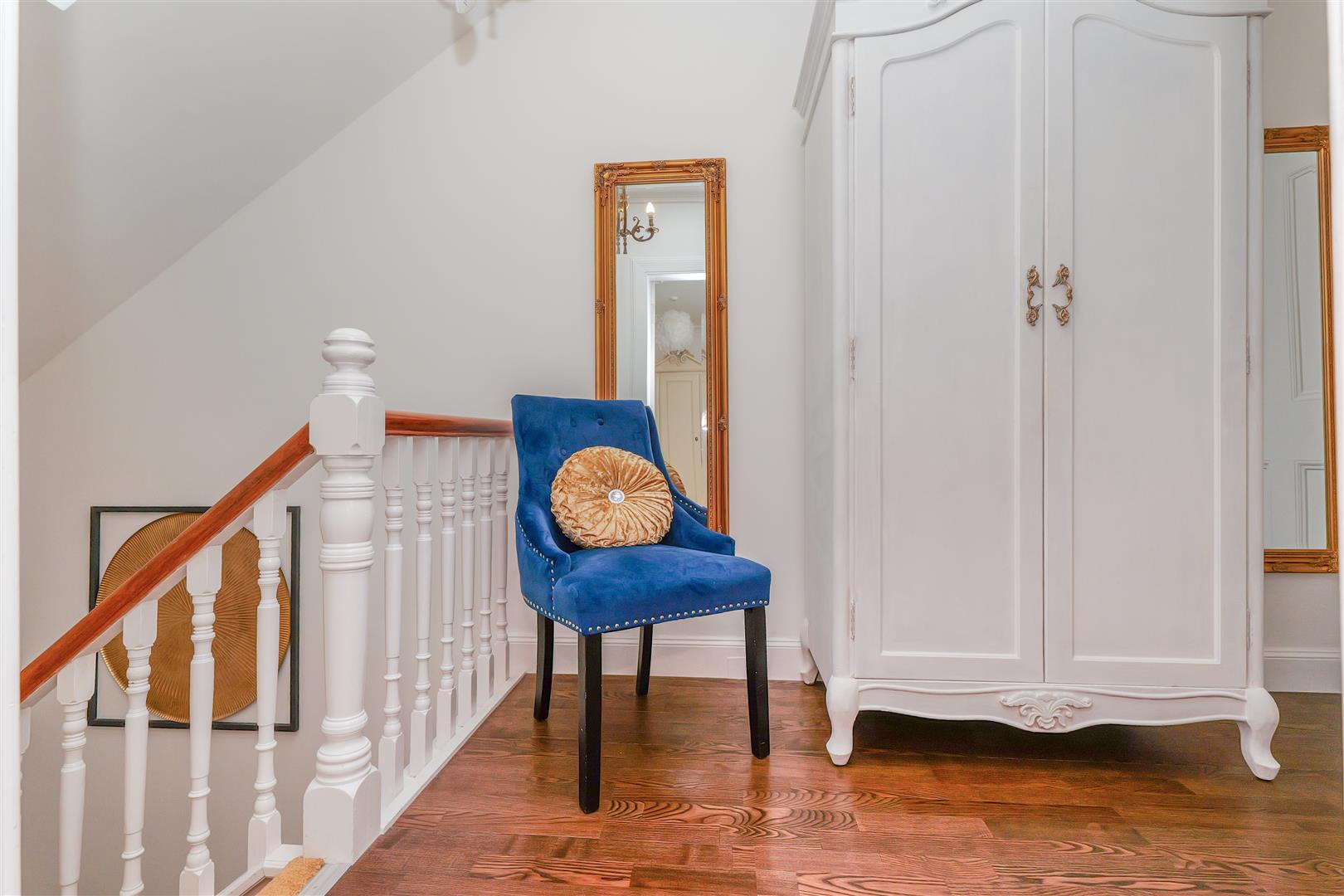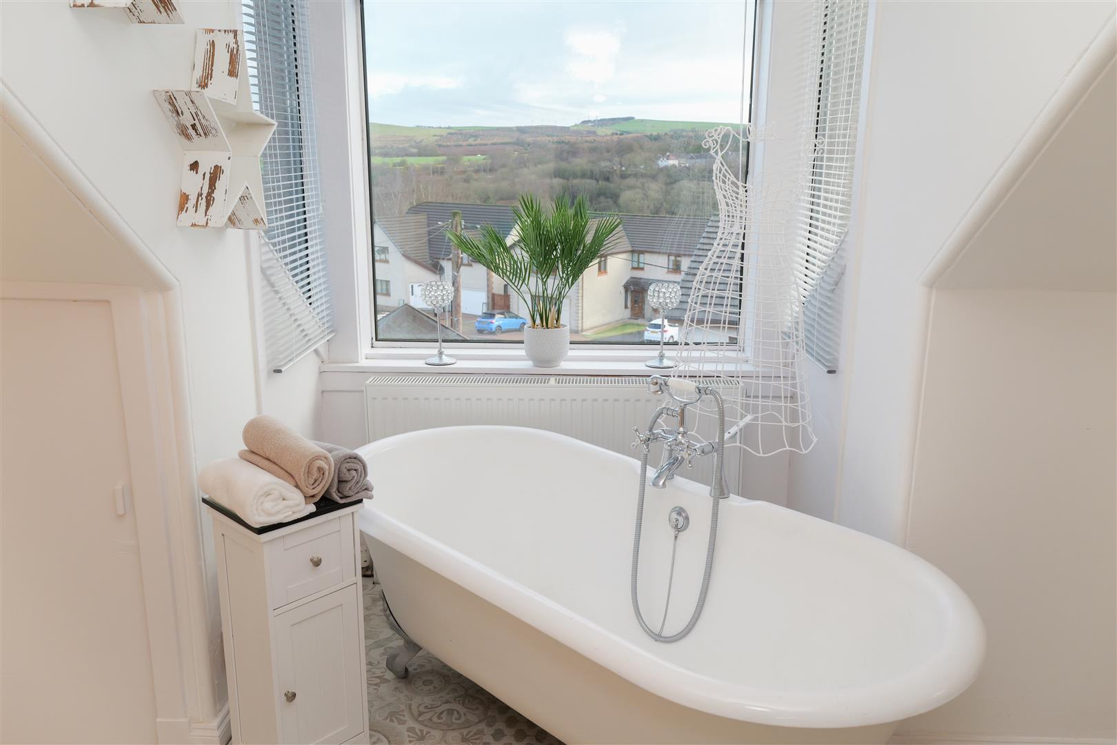 On the upper level via a beautiful carpeted staircase you will find a large walk in wardrobe, two bedrooms, both of which have neutral colour decor and a mix of carpeted and retro laminate flooring with ample storage space. The second bedroom benefits from a free standing cast iron bath with exceptional views overlooking the countryside. On the middle landing you will find a lovely fully tiled family bathroom which consists of a back to wall WC/sink combination and walk in shower enclosure.