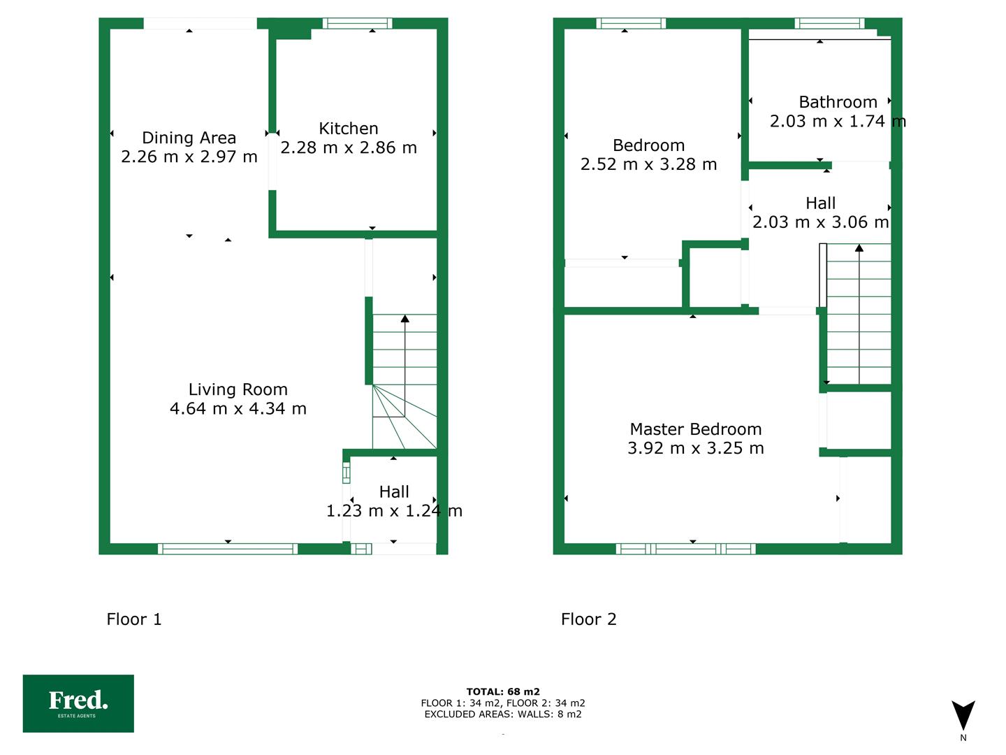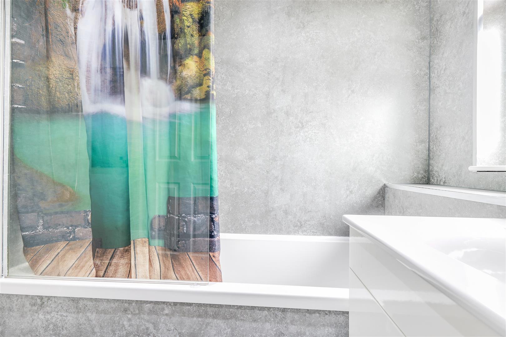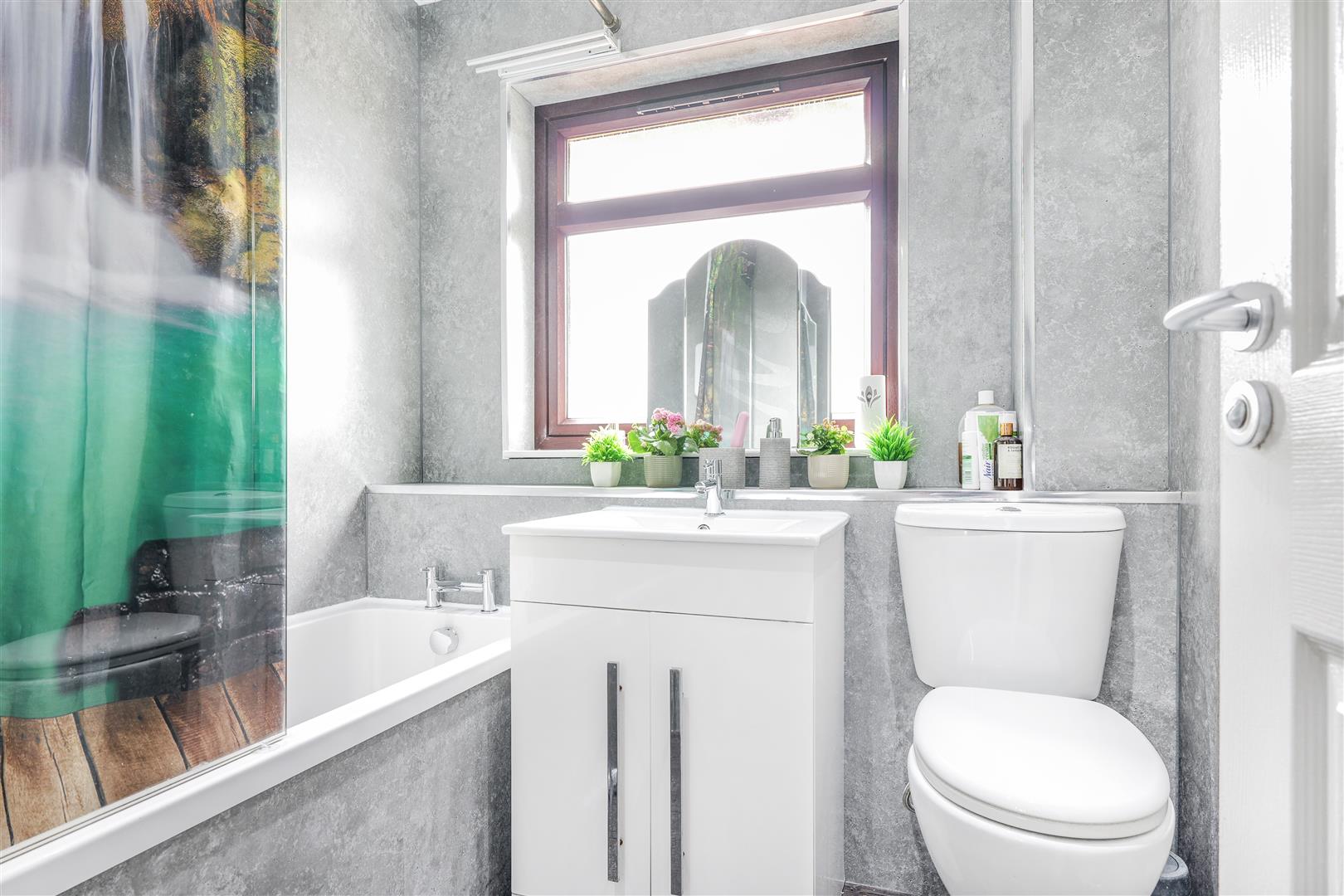Upstairs, you'll find two good sized, carpeted bedrooms, both complete with fitted wardrobes to maximize storage. The upper floor is completed by a stylish bathroom, thoughtfully designed with a WC, wash hand vanity basin, and a bath with an overhead mixer shower, all set against easy-to-maintain wet wall panelling.