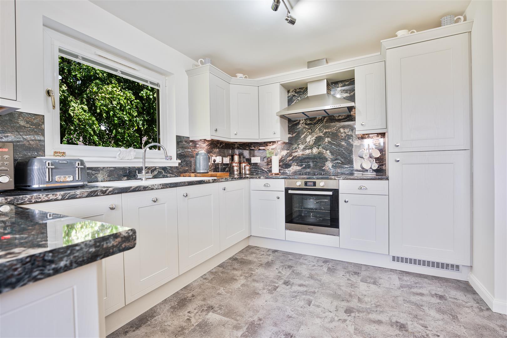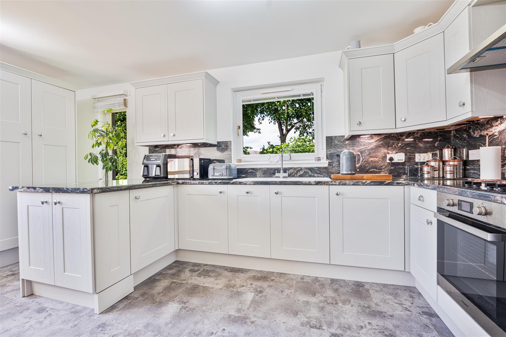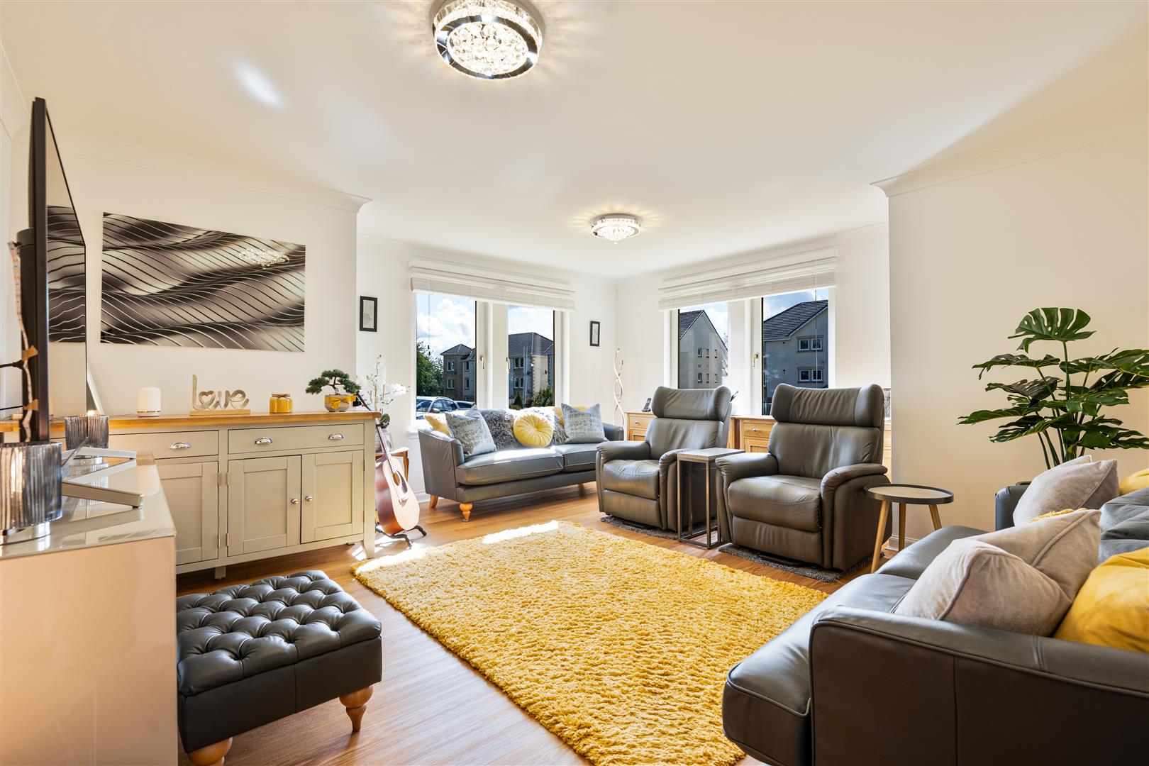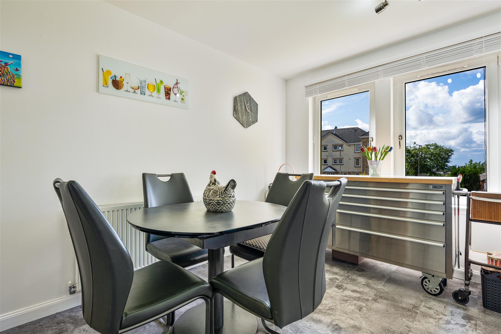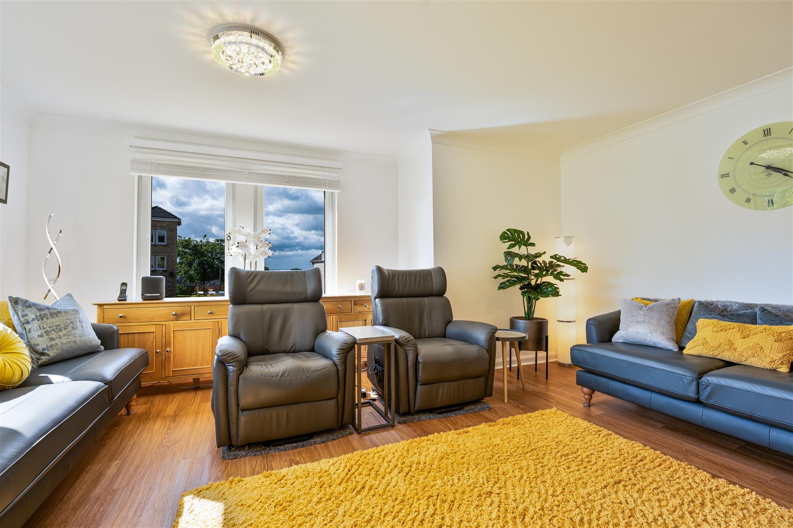 Thoughtfully refurbished to a high standard within the last two years, this immaculate apartment offers both style and comfort throughout. Step inside to a welcoming entrance hallway, complete with ample built-in storage—perfect for keeping the space neat and clutter-free. The bright and airy lounge features dual-aspect windows, flooding the room with natural light and creating a warm, inviting space to relax. The sleek, modern L-shaped kitchen is as functional as it is stylish, boasting integrated appliances, a dedicated dining area, and high-end finishes that elevate everyday living.