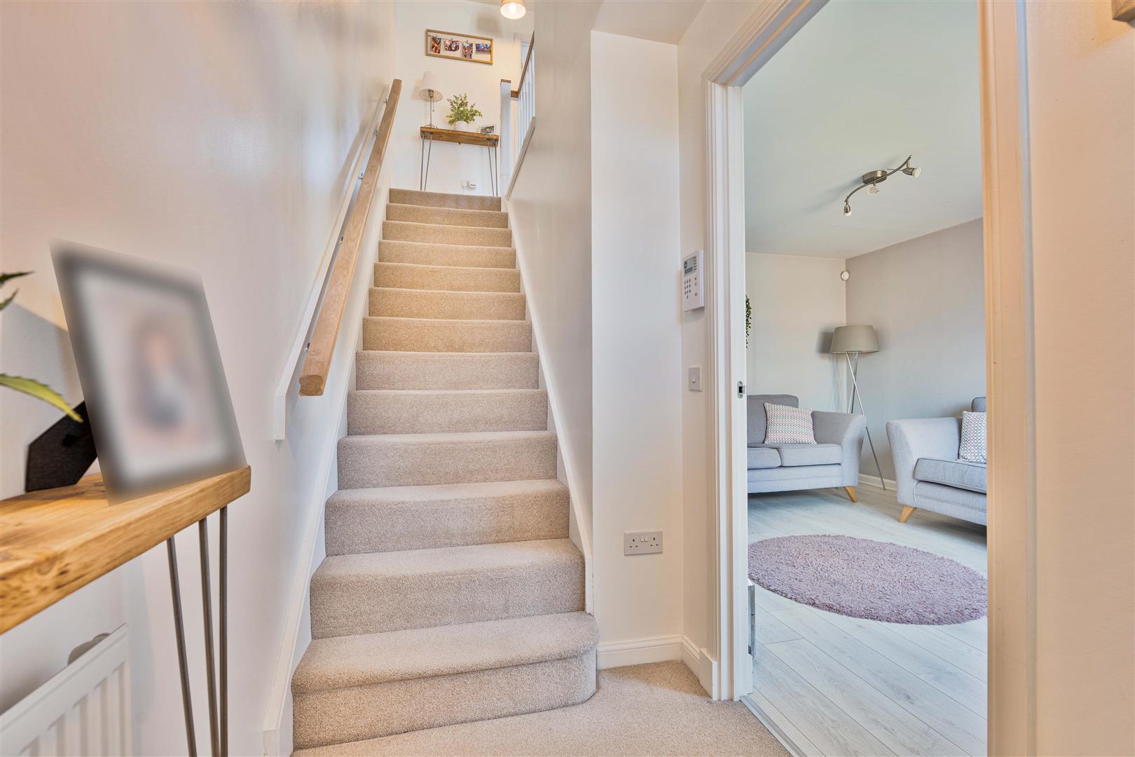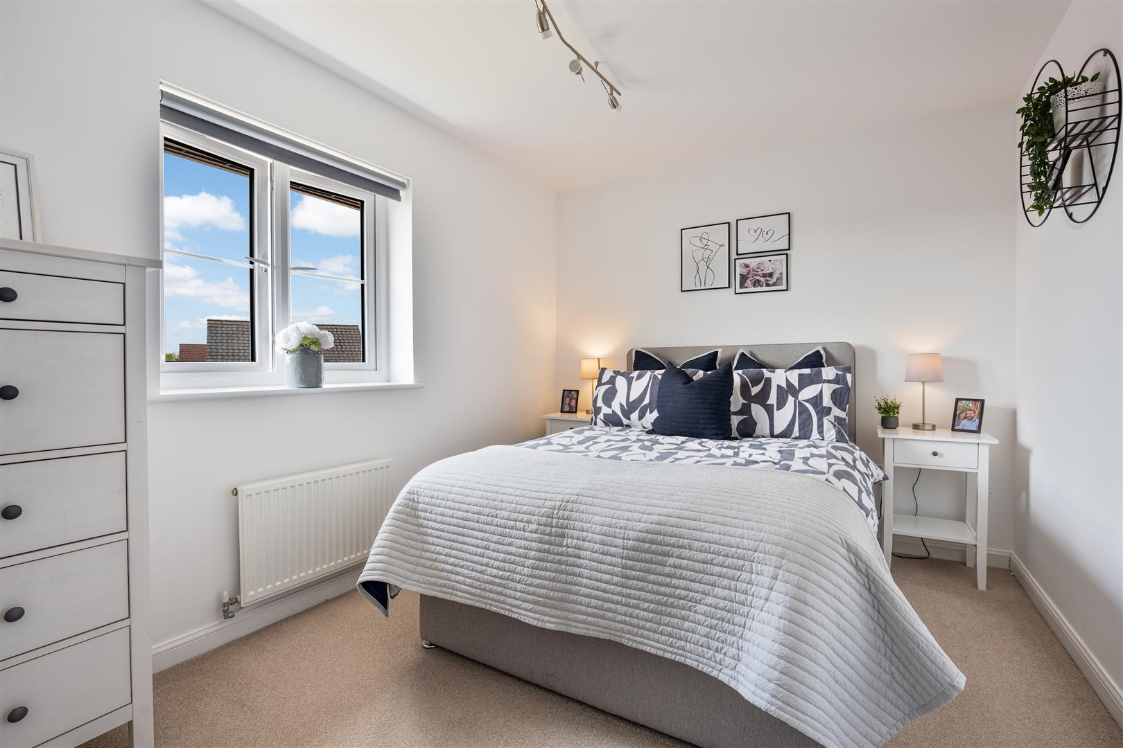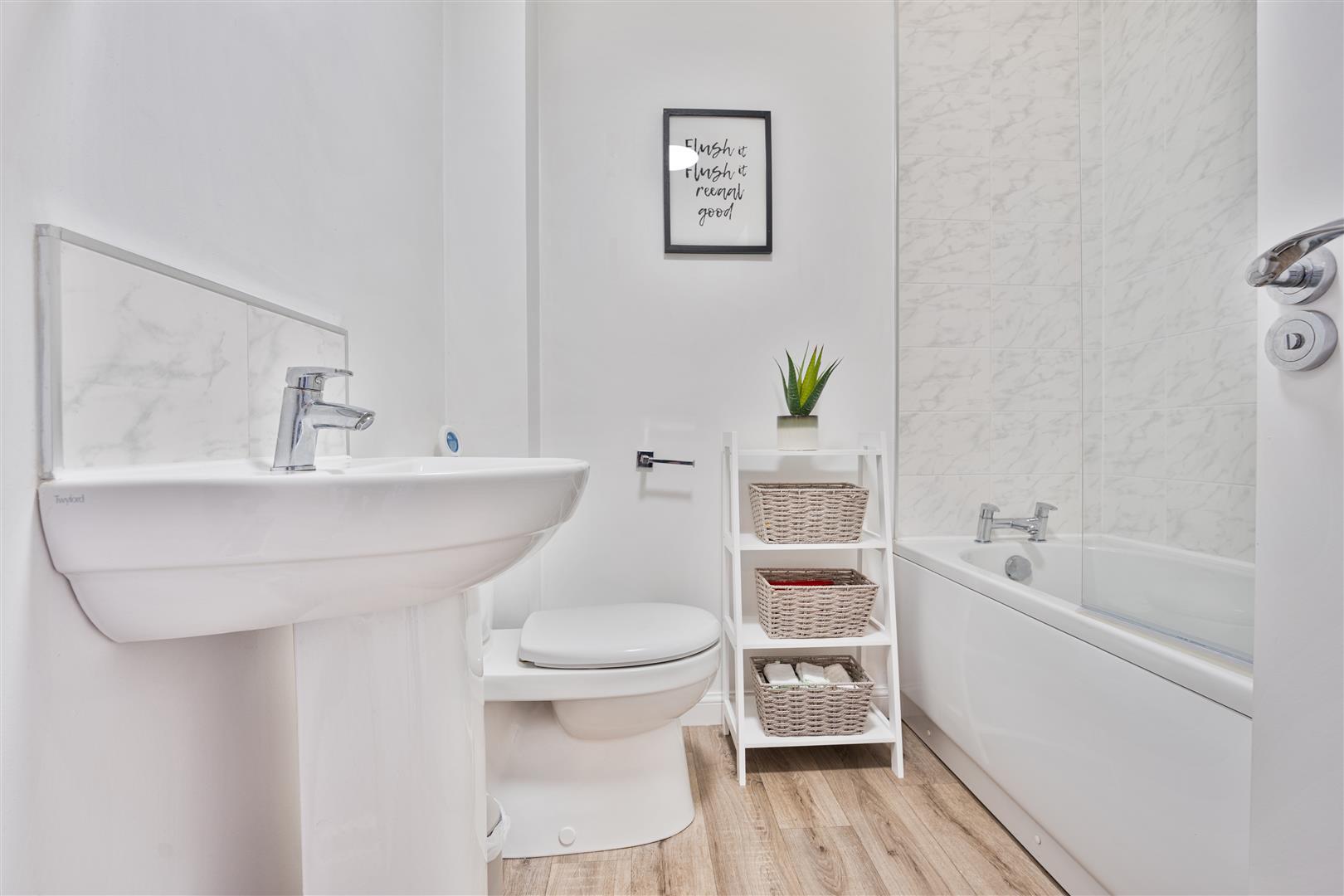 Upstairs, you’ll find two well-proportioned, carpeted bedrooms offering ample space for furnishings and storage, along with a stylish, part-tiled family bathroom fitted with a WC, wash hand basin, and a bath with an overhead mixer shower.