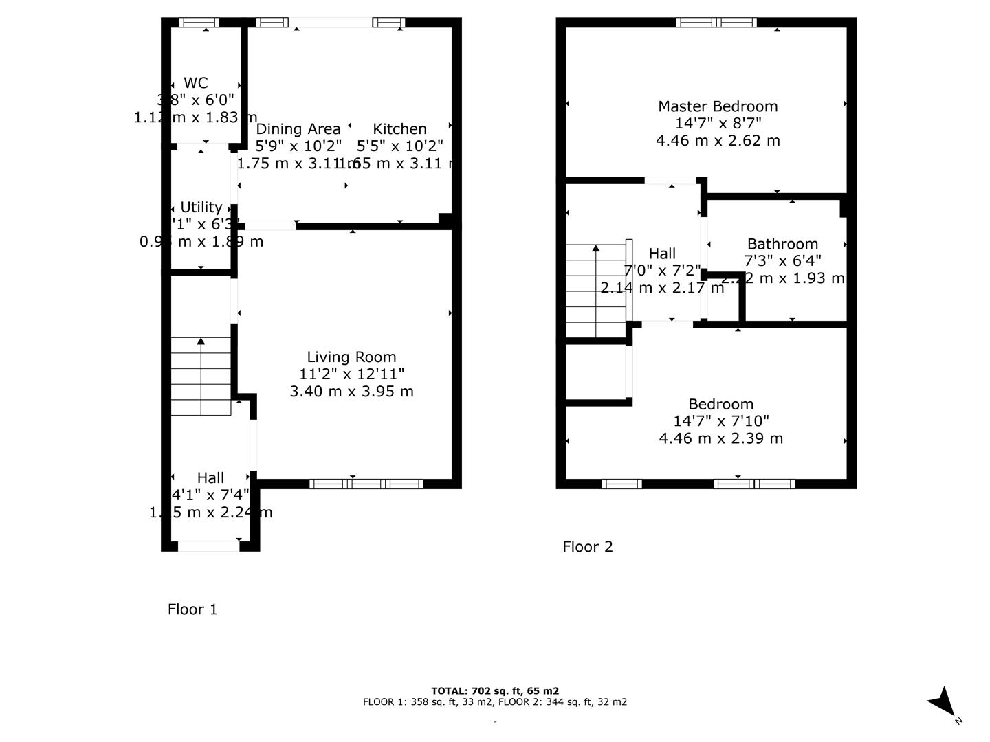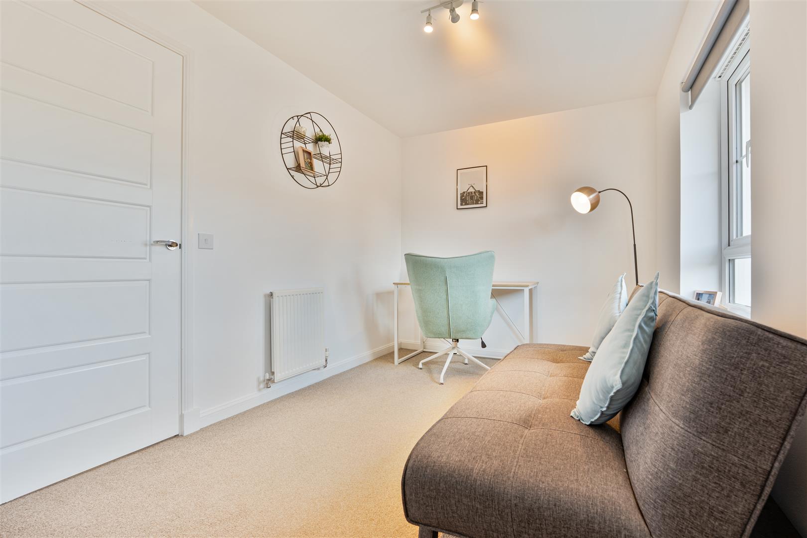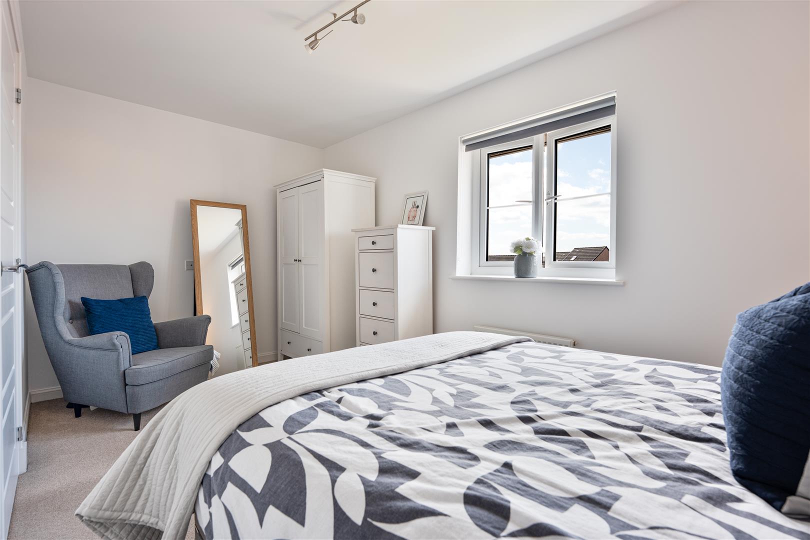 Upstairs, you’ll find two well-proportioned, carpeted bedrooms offering ample space for furnishings and storage, along with a stylish, part-tiled family bathroom fitted with a WC, wash hand basin, and a bath with an overhead mixer shower.