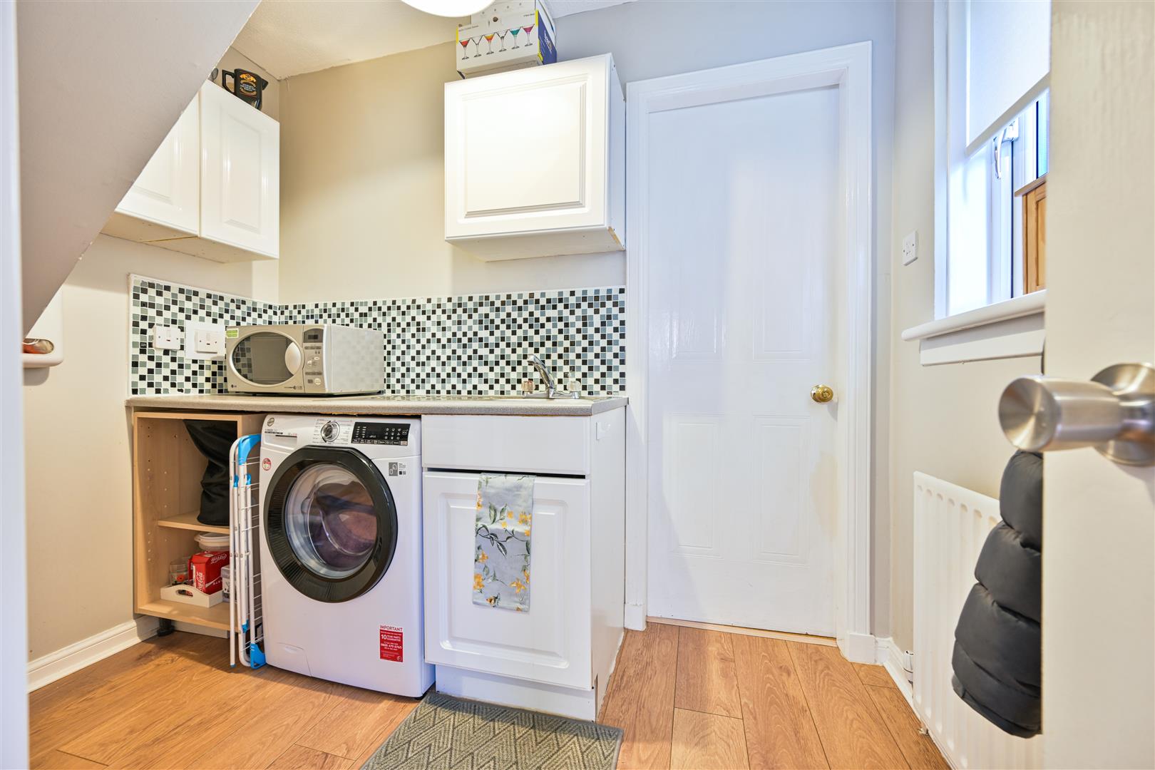 Off the kitchen is a convenient utility area, which also provides access to the integral garage that has been converted into an additional sitting room, offering flexible living accommodation.