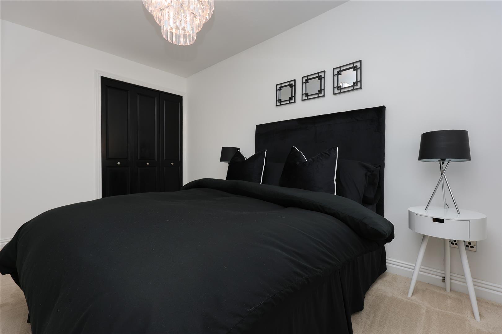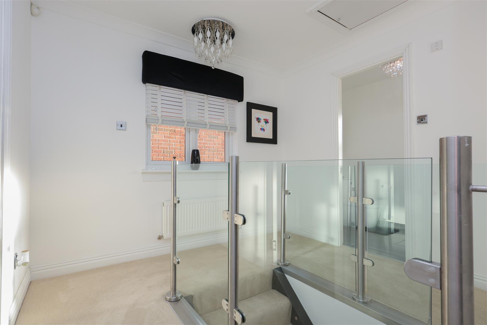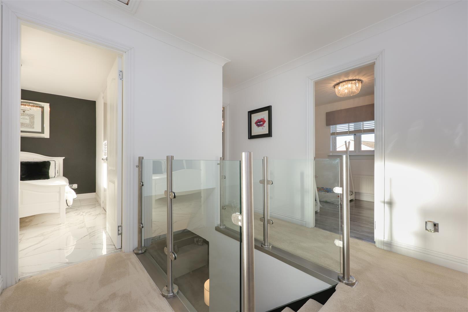 On the upper level via a beautiful carpeted staircase with glass balustrade you will find a further three bedrooms, all of which have neutral colour decor with a mix of carpeted and ceramic tiled flooring with ample storage space, a lovely fully tiled family bathroom which hosts a three piece suite consisting of back to wall WC/sink combination and bath with overhead mixer shower.