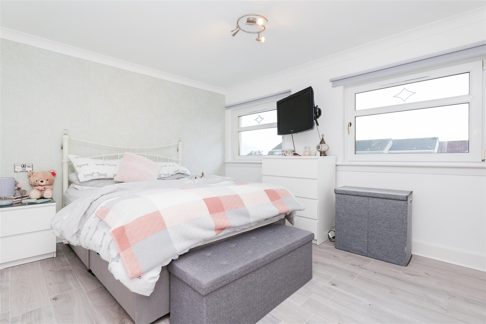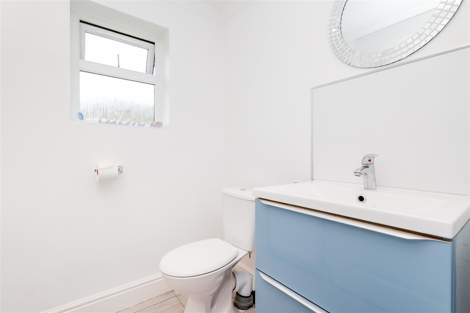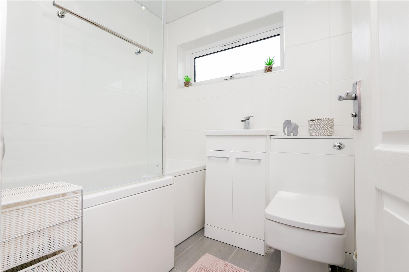 On the upper floor, you'll find a landing leading to two comfortable double bedrooms, both with flooring and offering ample space. The master bedroom provides a practical setting for relaxation with convenient storage cupboard. Completing this floor is a part-tiled family bathroom with a WC, sink, and a bath with an overhead shower.