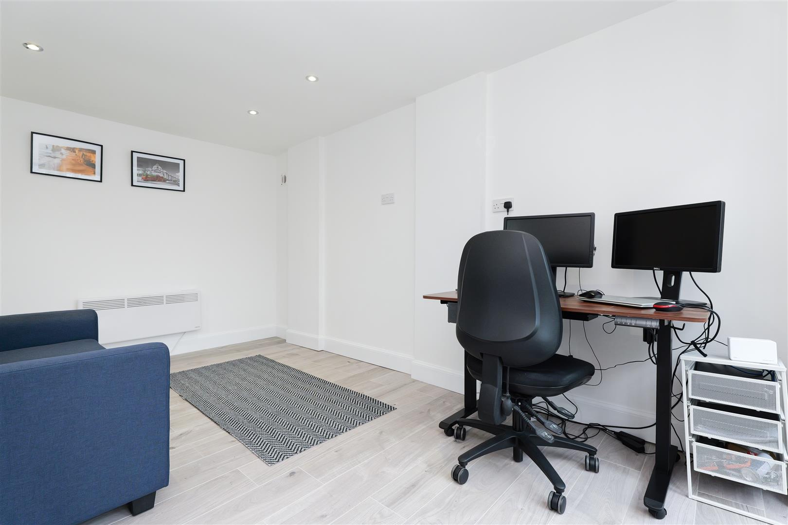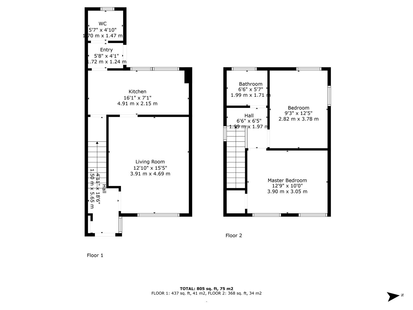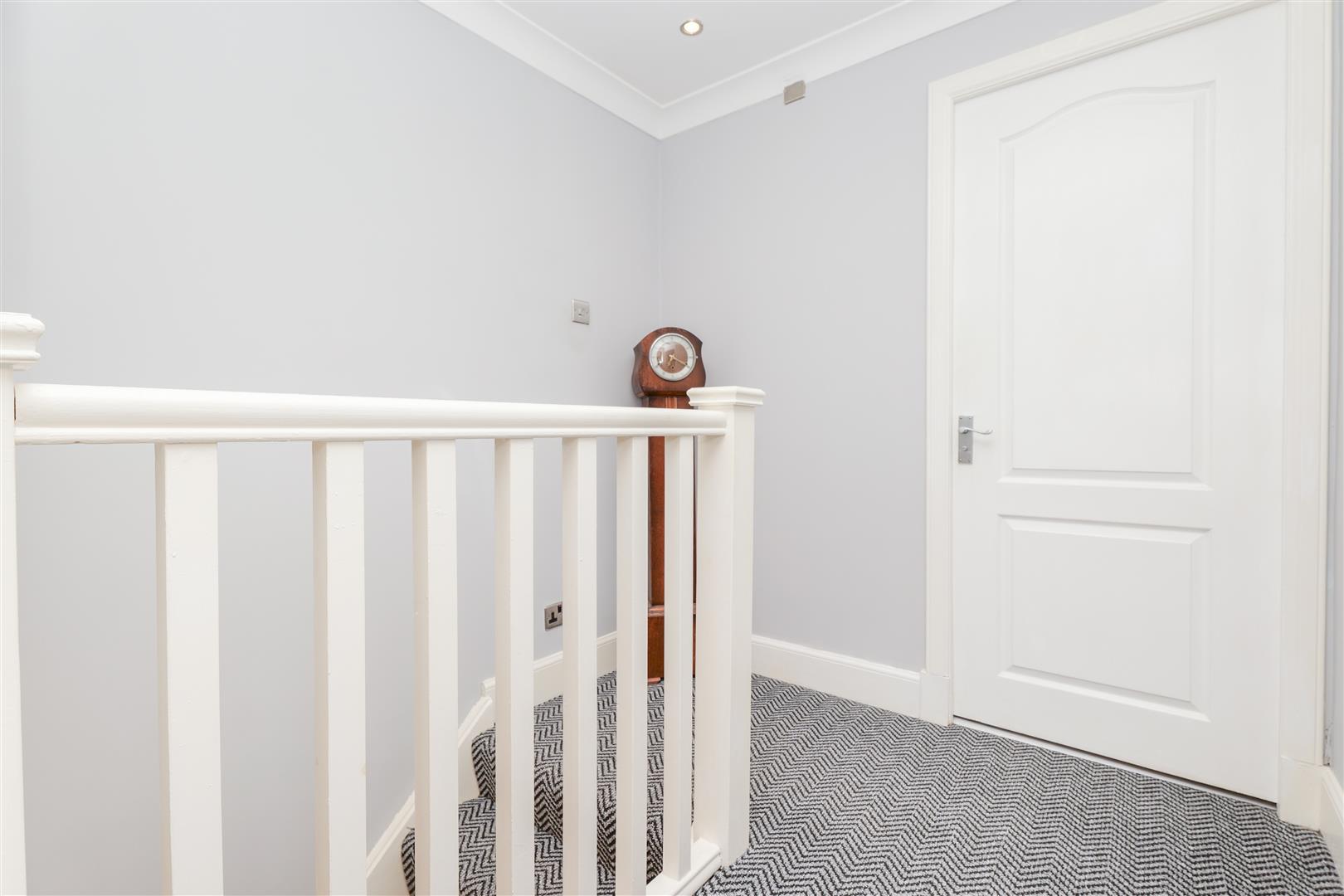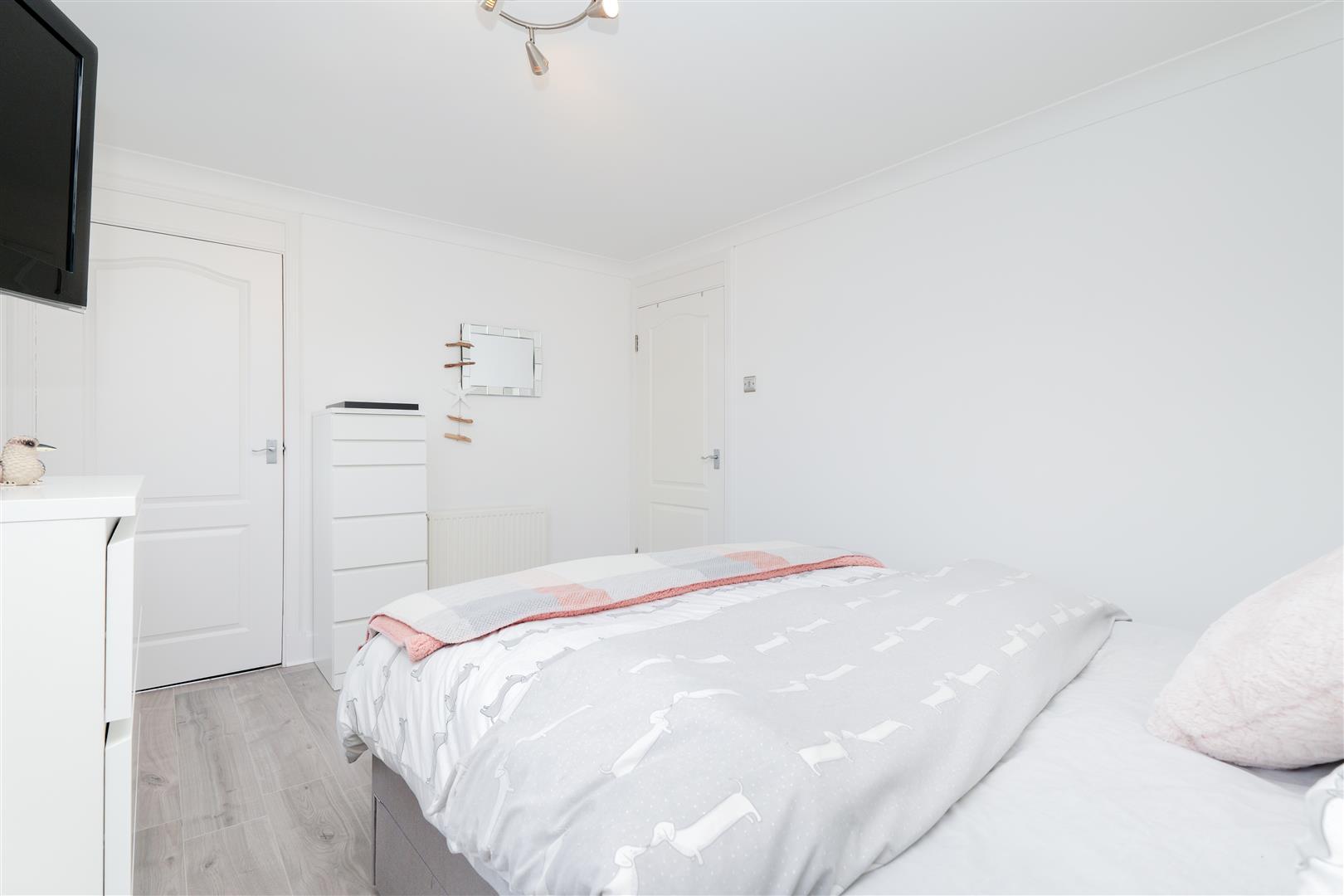 On the upper floor, you'll find a landing leading to two comfortable double bedrooms, both with flooring and offering ample space. The master bedroom provides a practical setting for relaxation with convenient storage cupboard. Completing this floor is a part-tiled family bathroom with a WC, sink, and a bath with an overhead shower.