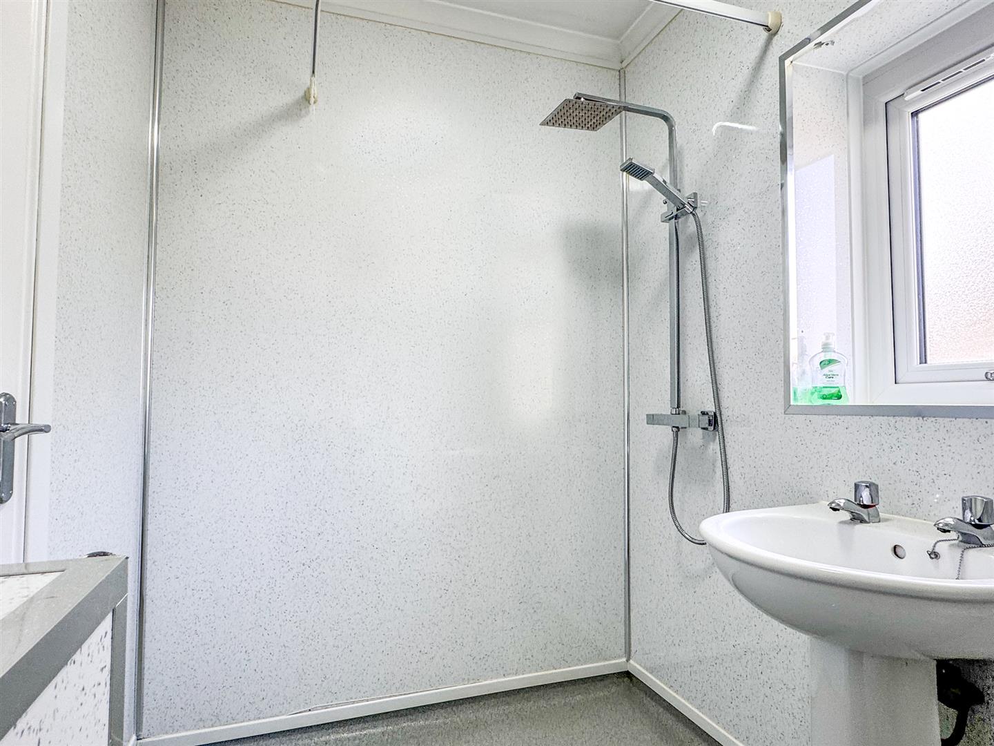 The well-appointed fitted kitchen offers a range of floor and wall mounted units, complemented by an integrated oven, gas hob, and fridge freezer, perfectly suited to modern living. The double bedroom benefits from a useful storage cupboard, while the wet room is fitted with a shower, WC, and wash hand basin, all finished with wet wall panelling for a clean and low-maintenance design.