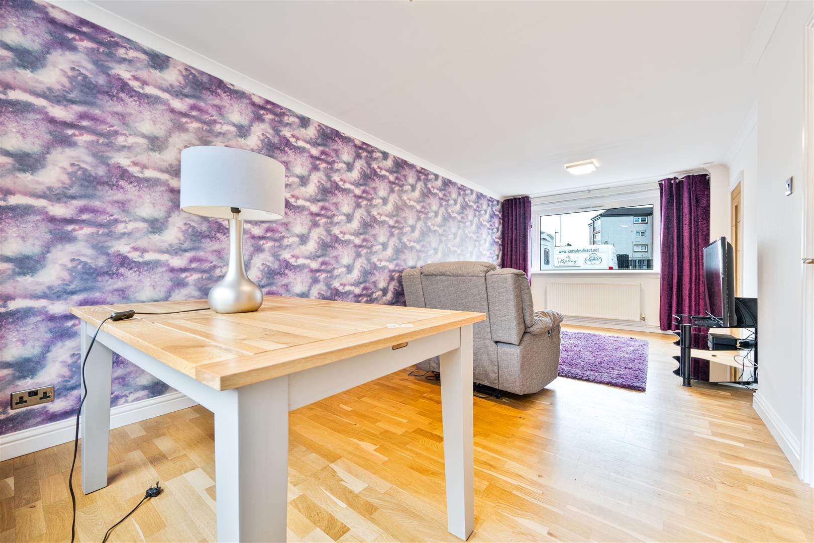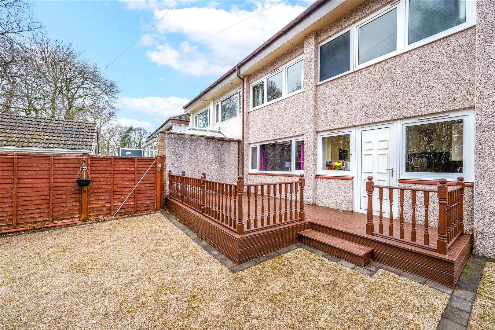 The ground floor comprises a welcoming entrance hallway leading to a spacious and light-filled lounge, enhanced by dual-aspect windows that allow plenty of natural light to flow through the room. The property also benefits from a stunning, generously sized fitted kitchen featuring a wide range of modern base and wall-mounted units, ample worktop space, and integrated appliances. A rear door provides direct access to a raised decked patio area, ideal for outdoor dining and entertaining.