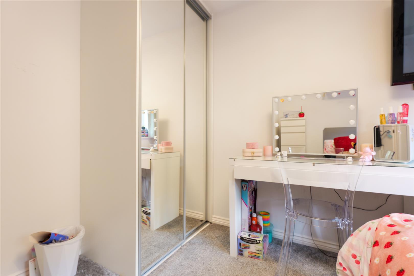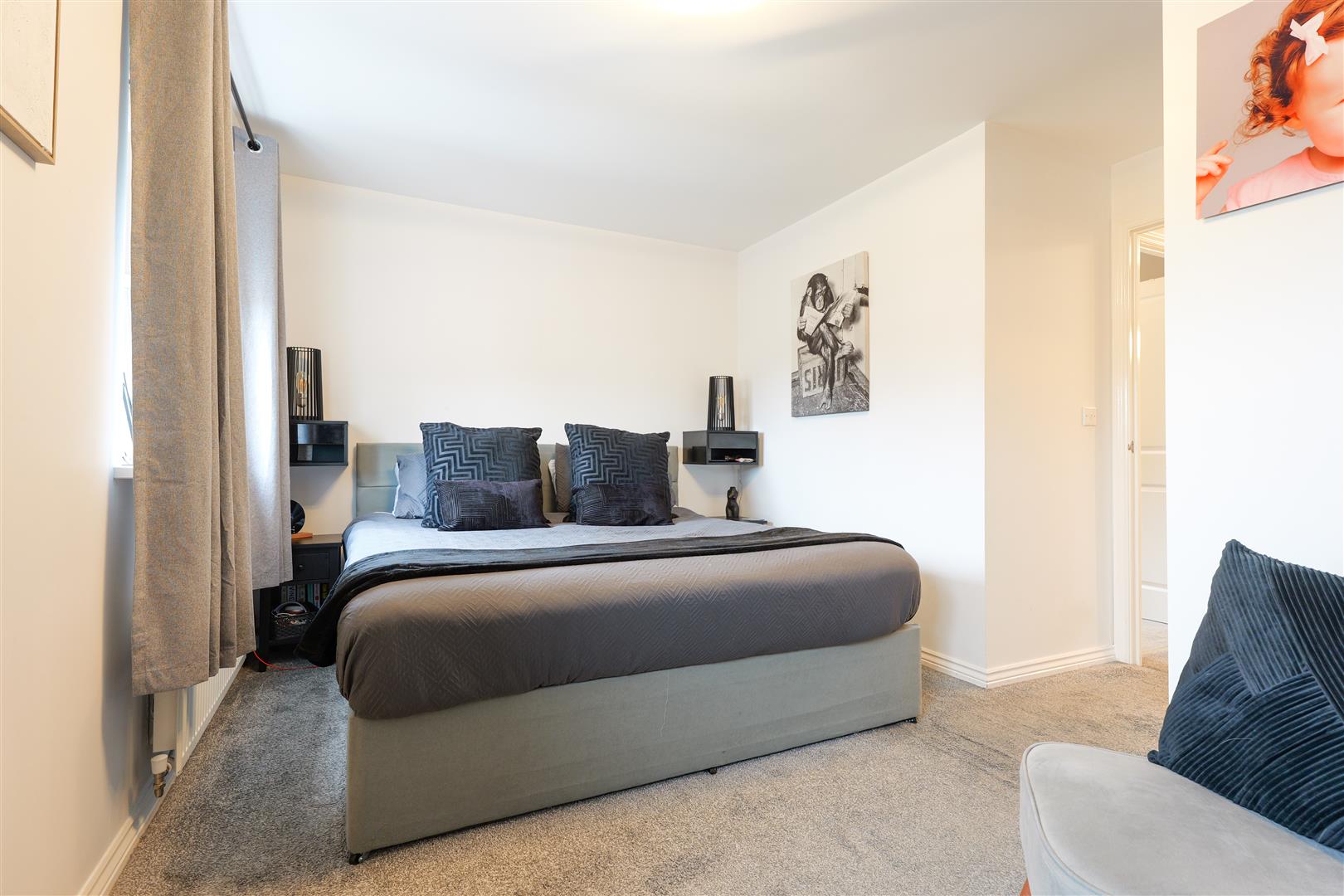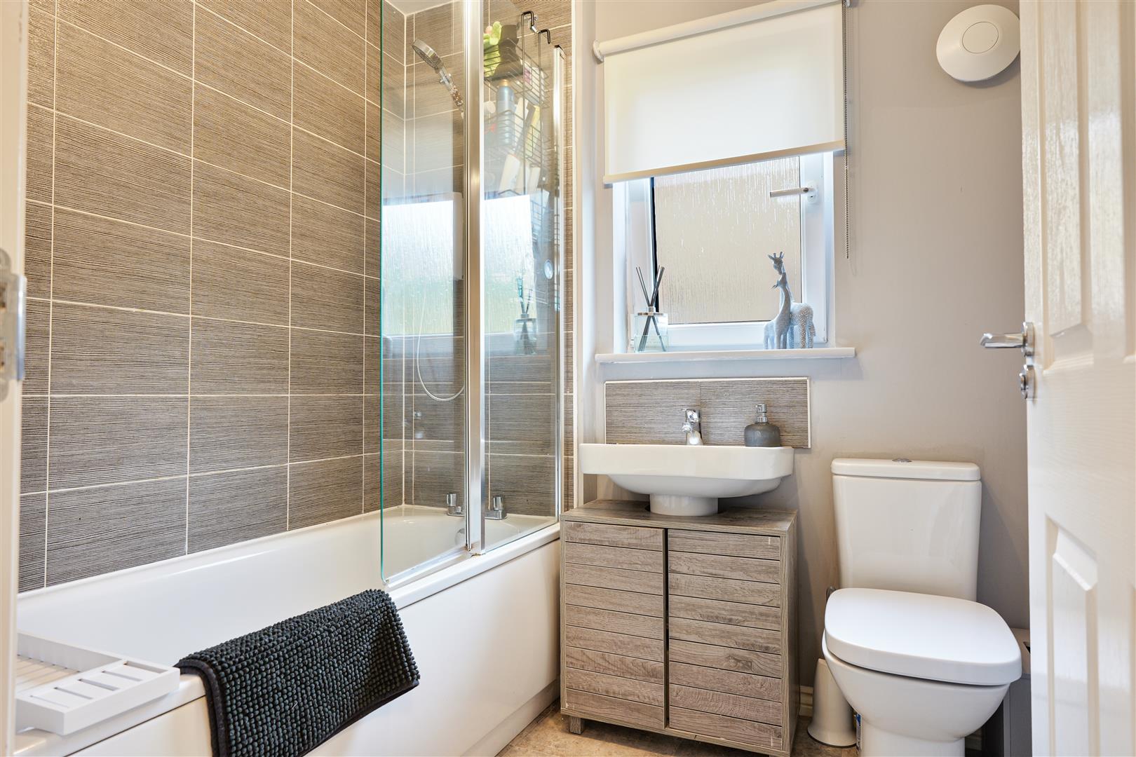 Upstairs offers three generous bedrooms, all neutrally decorated and carpeted throughout with ample fitted storage. The stunning modern family bathroom is finished with full height tiling and a bath with shower over.