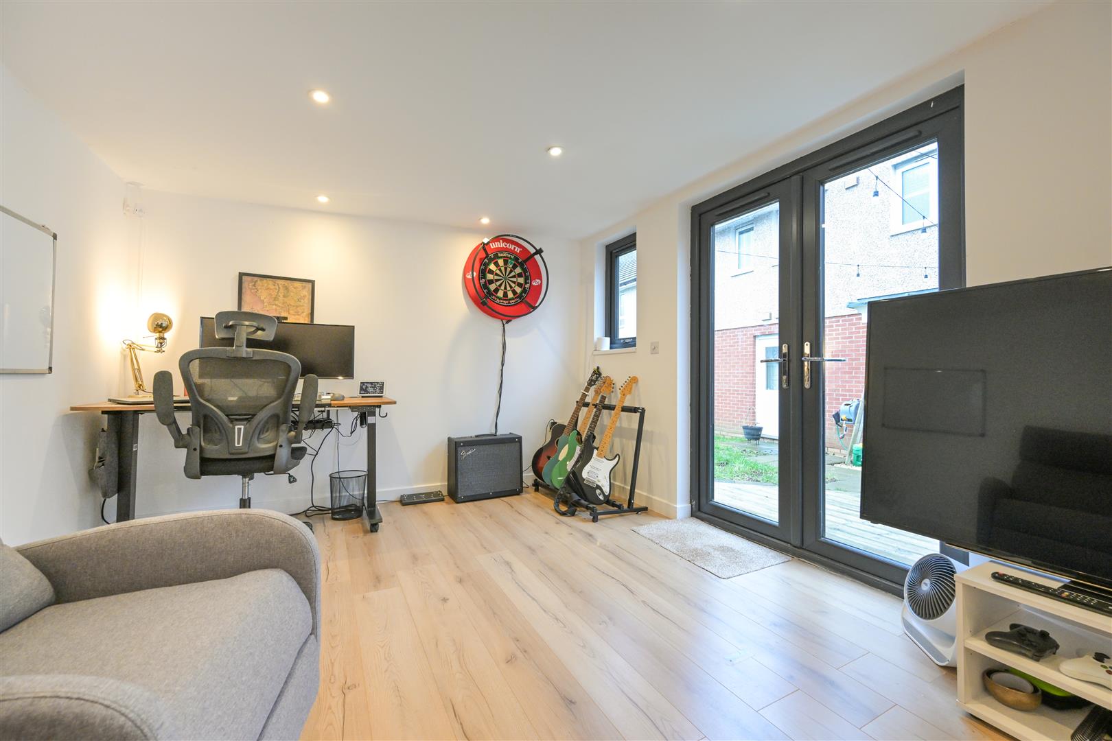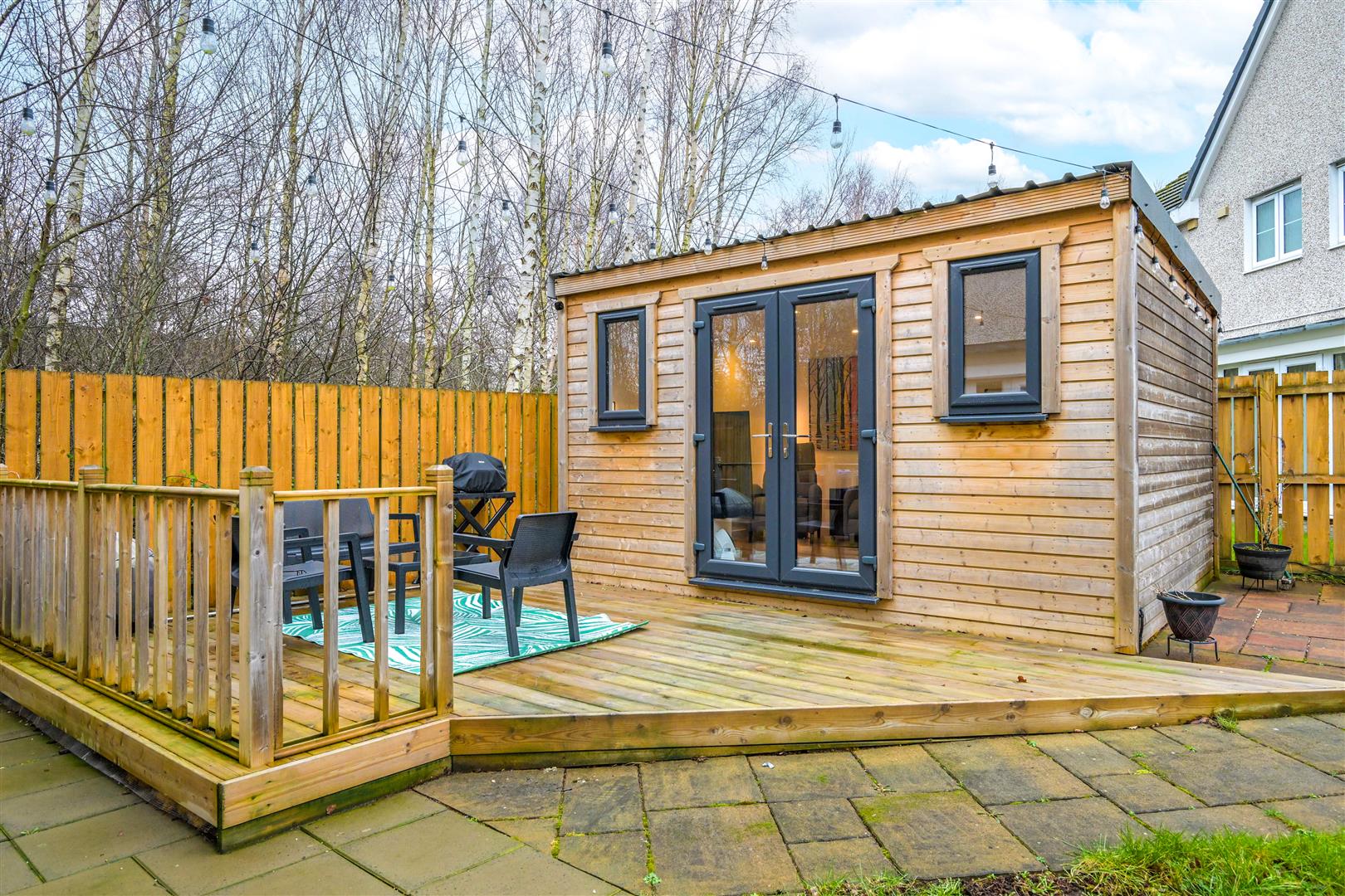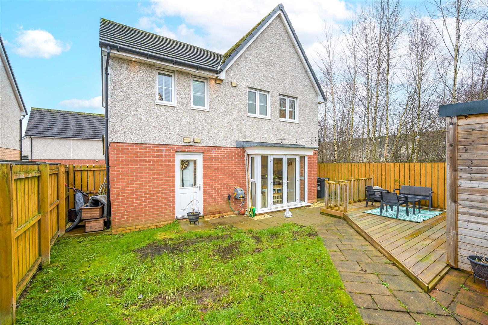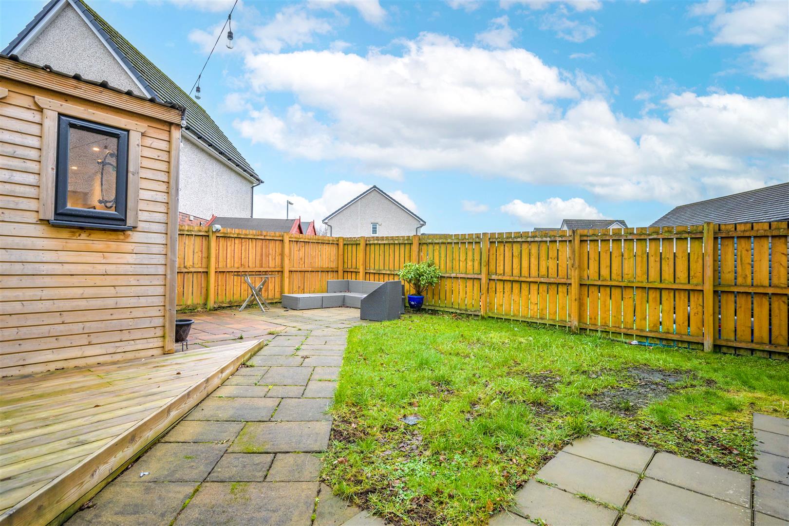 Externally, the property continues to impress. The rear garden features a slabbed patio and decking area, ideal for relaxing or hosting family and friends. A standout feature is the fantastic outhouse, currently utilised as an additional sitting room and home working space, offering superb flexibility to suit a range of needs. To the front, a double driveway and garage provide ample of street parking and excellent storage.