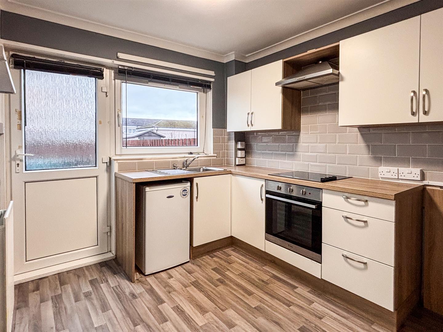 Set over two levels, this home offers bright and spacious accommodation. The entrance hall leads into a generous lounge, complete with carpeted flooring and dual-aspect windows that flood the room with natural light, creating a warm and inviting living space. The modern fitted kitchen features a range of wall and floor mounted units, along with ample space for freestanding appliances, making it both practical and functional for everyday living.