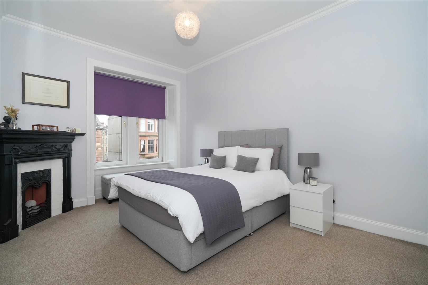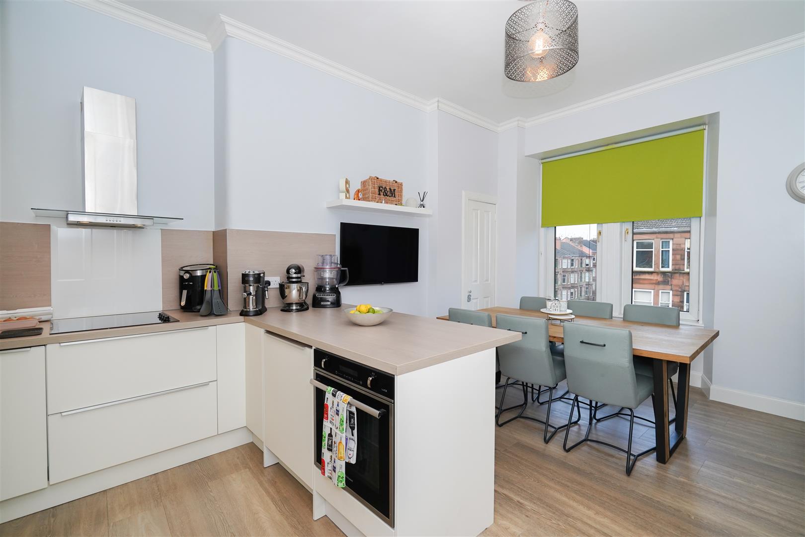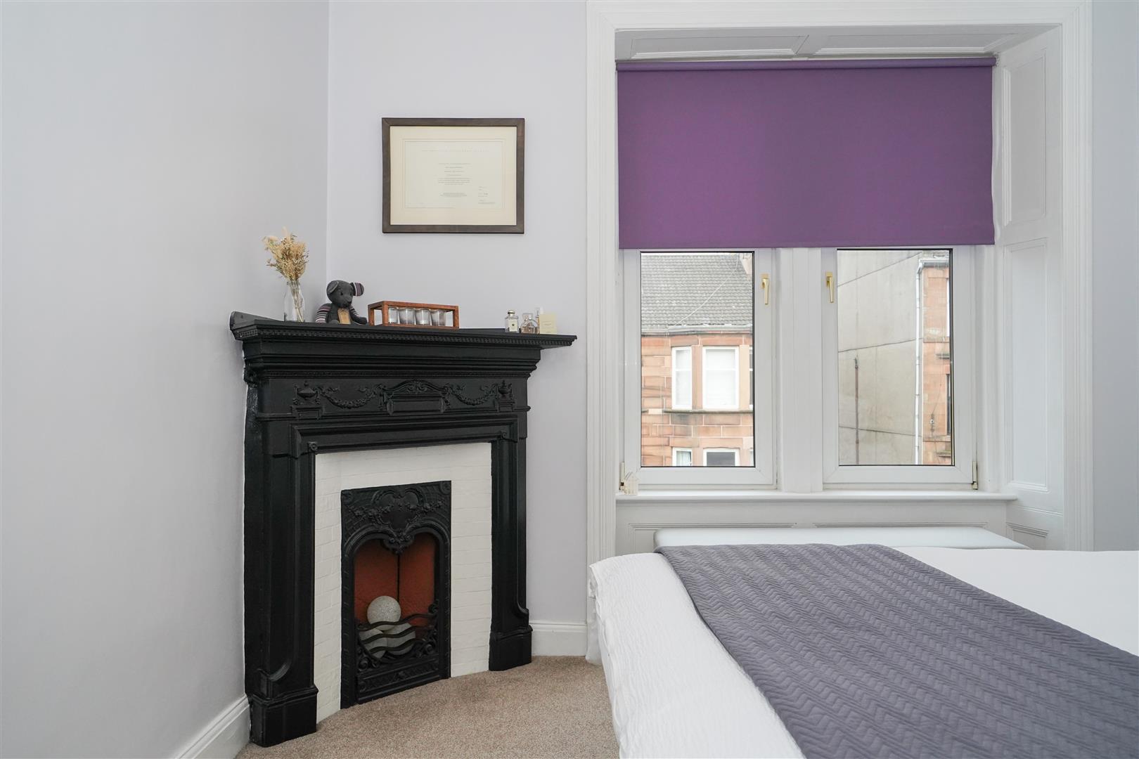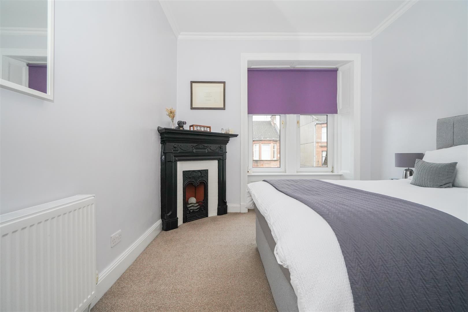 This immediately impressive and immaculately presented one bedroom red sandstone tenement occupies a top floor position. This charming property is presented in walk in condition throughout offering a welcoming entrance hallway, leading through to a lovely lounge with carpeted flooring and neutral colour decor. The stunning kitchen/dining area features quality wooden flooring, modern fitted wall and floor mounted units with integrated appliances, ample space for dining table and large window allowing for plenty of natural daylight. One great size bedroom featuring plush carpeted flooring, storage cupboard, a focal point fireplace and walk in wardrobe/cupboard. There is also a fully tiled stylish bathroom consisting of WC, vanity sink unit and walk in shower enclosure with rainfall shower.