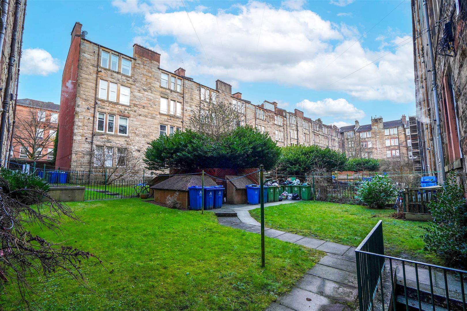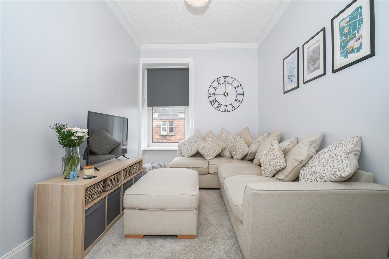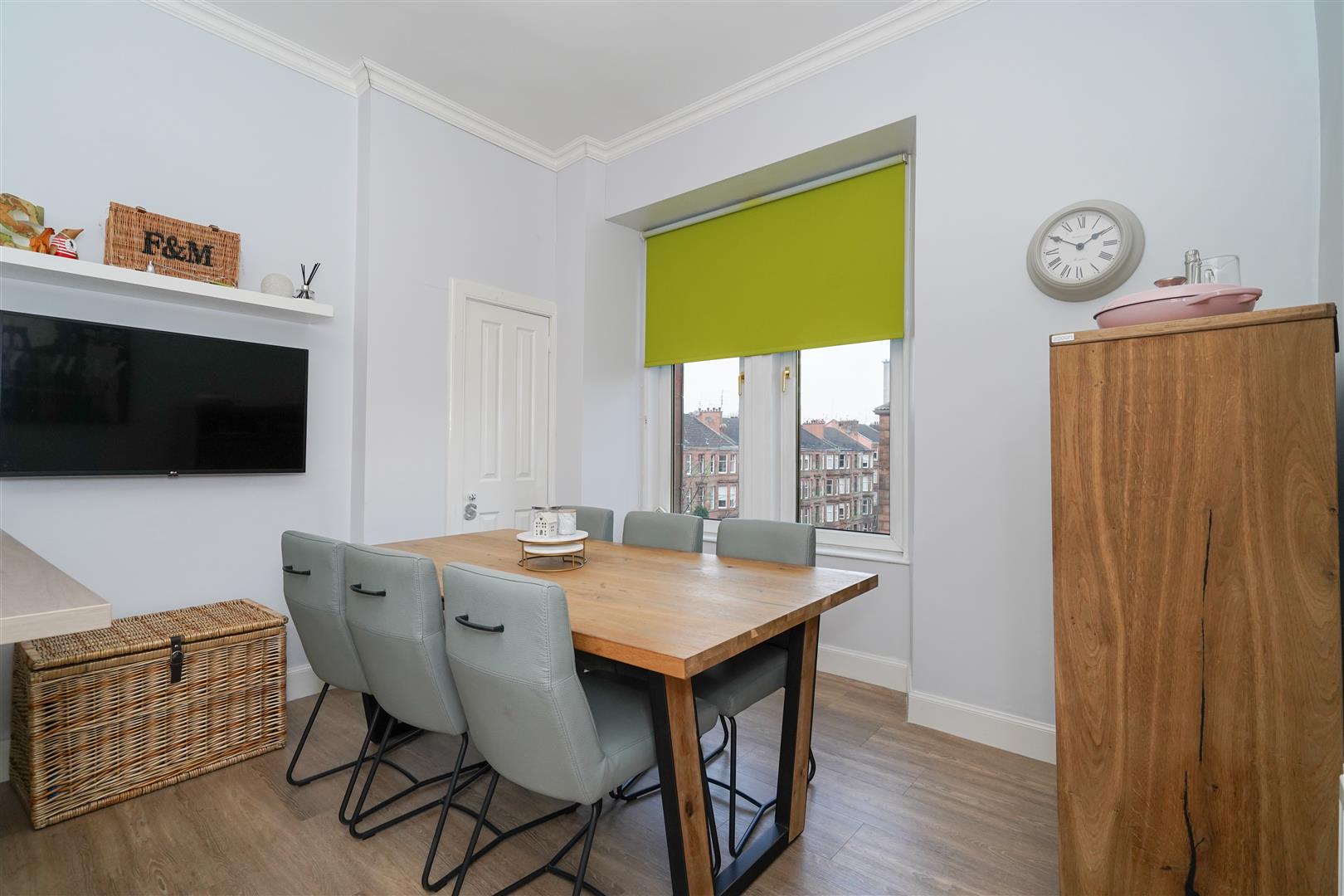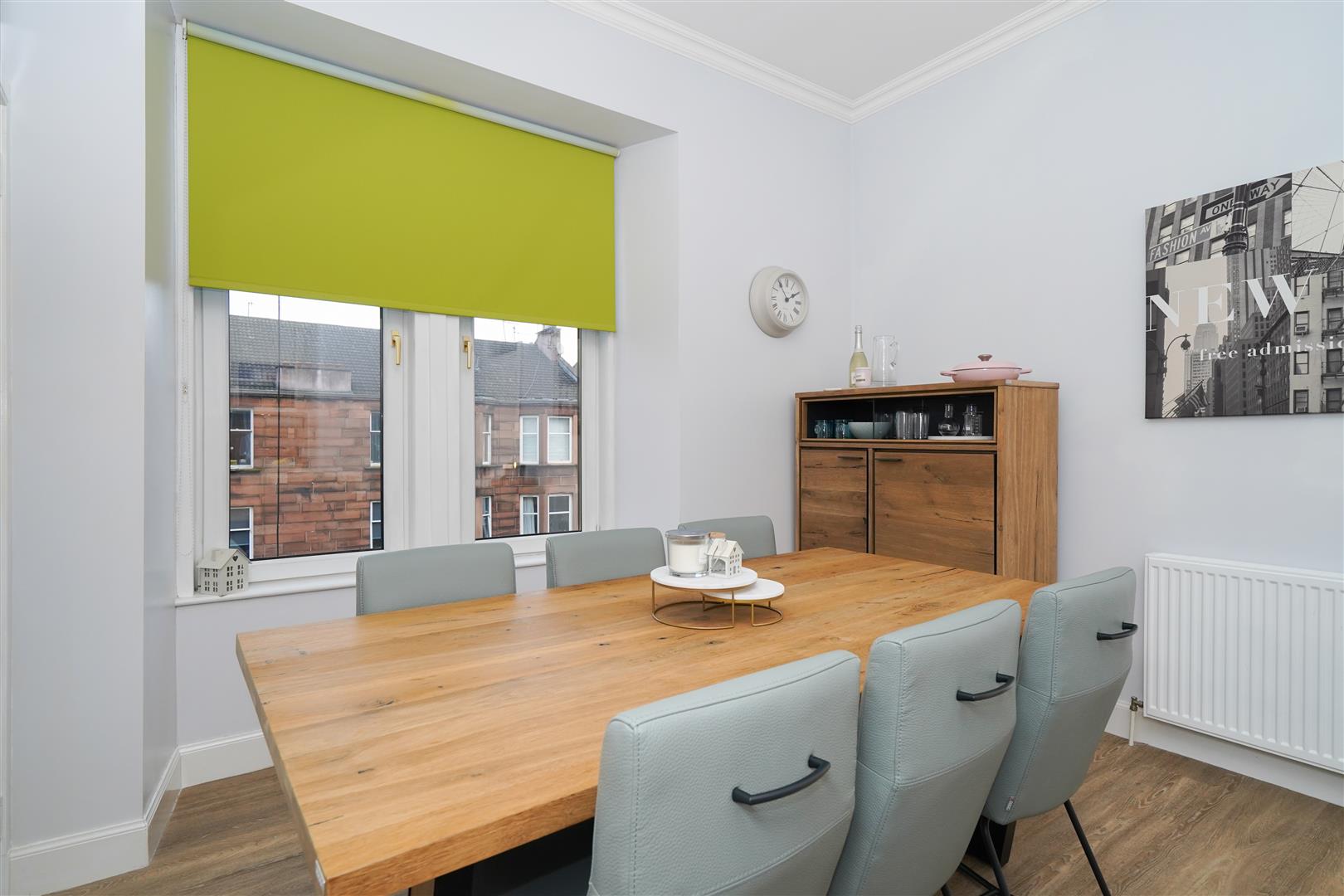 This immediately impressive and immaculately presented one bedroom red sandstone tenement occupies a top floor position. This charming property is presented in walk in condition throughout offering a welcoming entrance hallway, leading through to a lovely lounge with carpeted flooring and neutral colour decor. The stunning kitchen/dining area features quality wooden flooring, modern fitted wall and floor mounted units with integrated appliances, ample space for dining table and large window allowing for plenty of natural daylight. One great size bedroom featuring plush carpeted flooring, storage cupboard, a focal point fireplace and walk in wardrobe/cupboard. There is also a fully tiled stylish bathroom consisting of WC, vanity sink unit and walk in shower enclosure with rainfall shower.