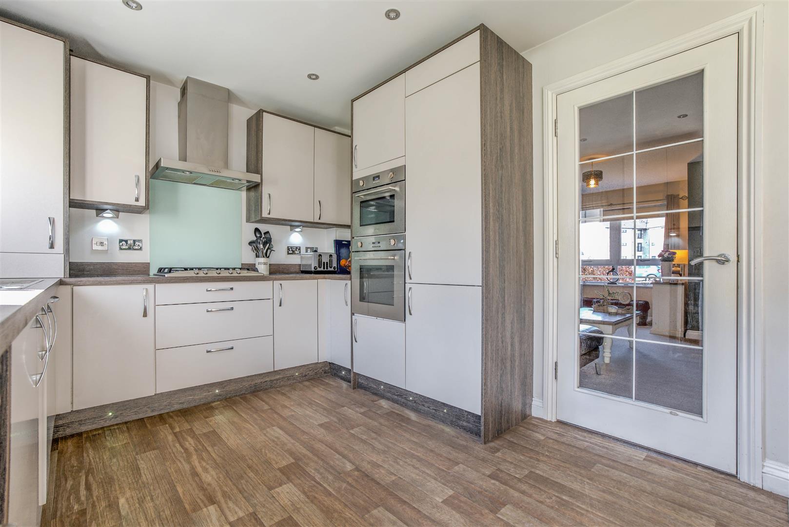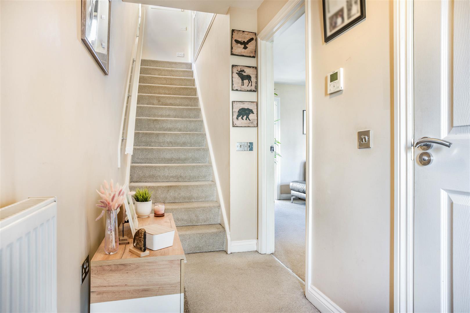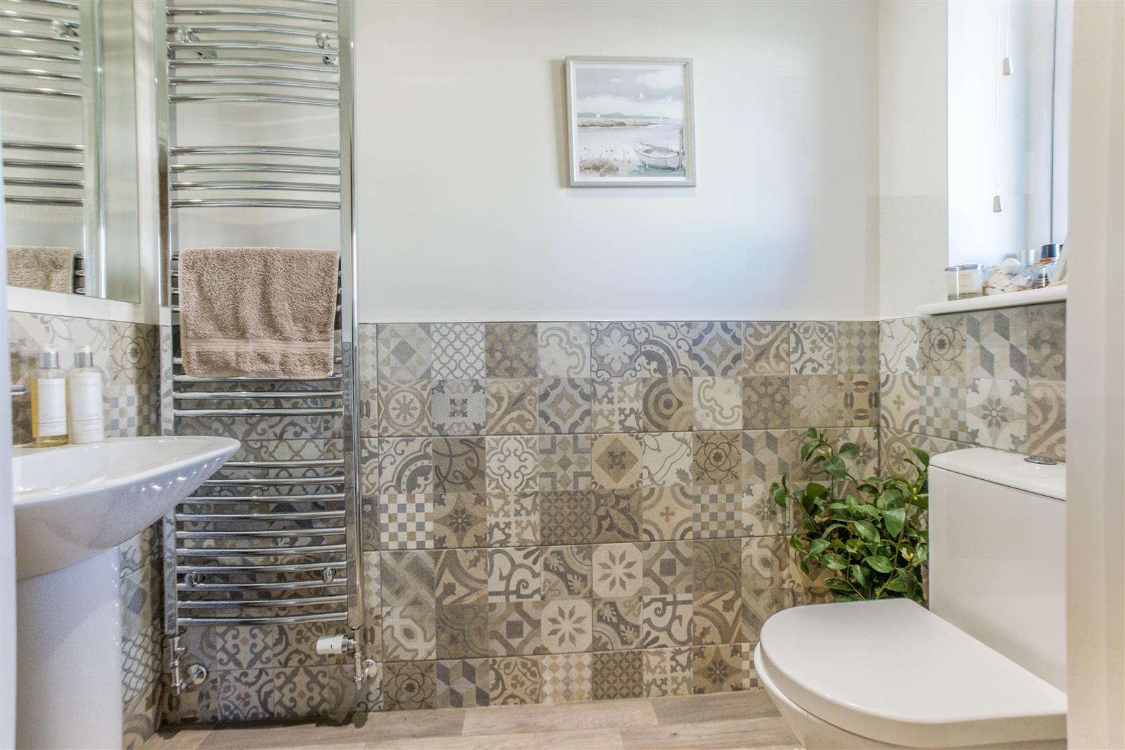 This beautifully maintained home is set across two levels and offers stylish, modern living in a peaceful cul-de-sac setting. On the ground floor, you’re welcomed by an inviting entrance hall, a convenient cloakroom WC, and a bright, front-facing lounge bathed in natural light, featuring neutral décor throughout. To the rear, the contemporary kitchen/dining area is fitted with sleek floor and wall-mounted units, an integrated eye-level oven with gas hob, and additional built-in appliances. French doors open directly onto the landscaped rear garden, creating a perfect flow for indoor-outdoor living.
