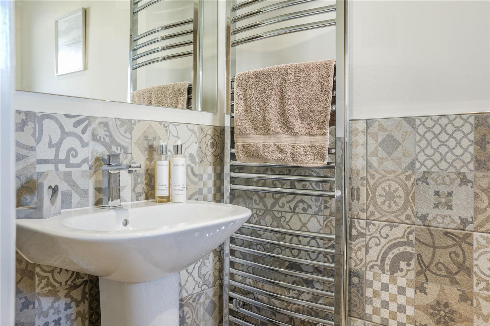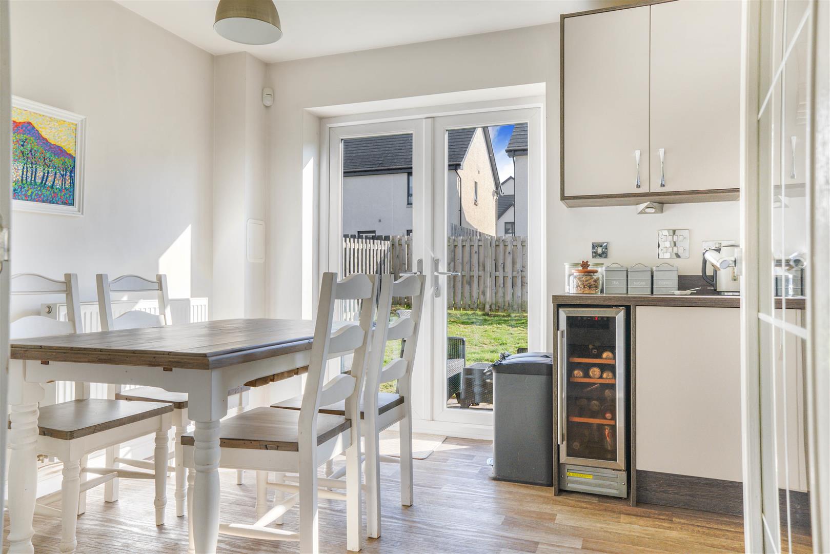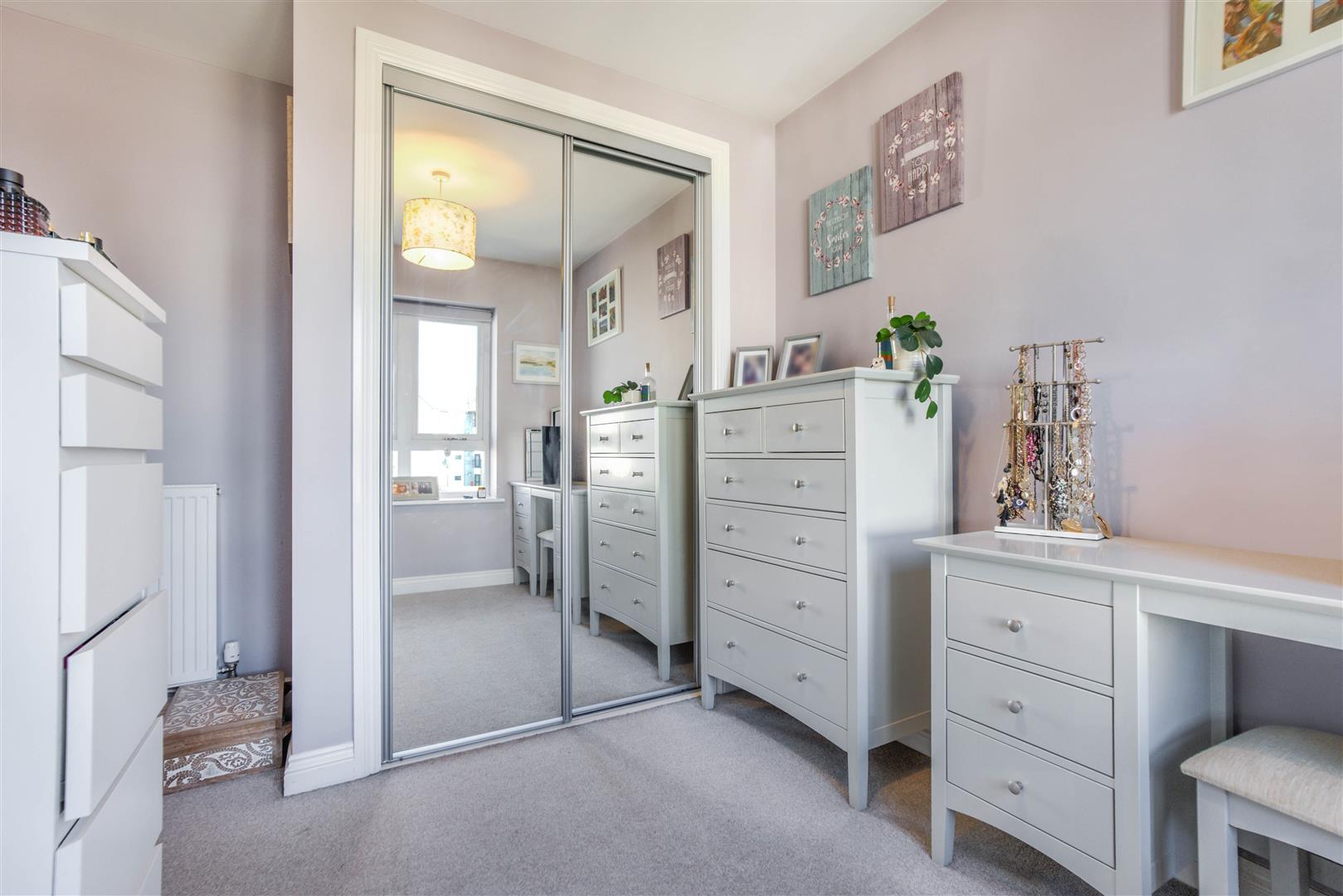 This beautifully maintained home is set across two levels and offers stylish, modern living in a peaceful cul-de-sac setting. On the ground floor, you’re welcomed by an inviting entrance hall, a convenient cloakroom WC, and a bright, front-facing lounge bathed in natural light, featuring neutral décor throughout. To the rear, the contemporary kitchen/dining area is fitted with sleek floor and wall-mounted units, an integrated eye-level oven with gas hob, and additional built-in appliances. French doors open directly onto the landscaped rear garden, creating a perfect flow for indoor-outdoor living.