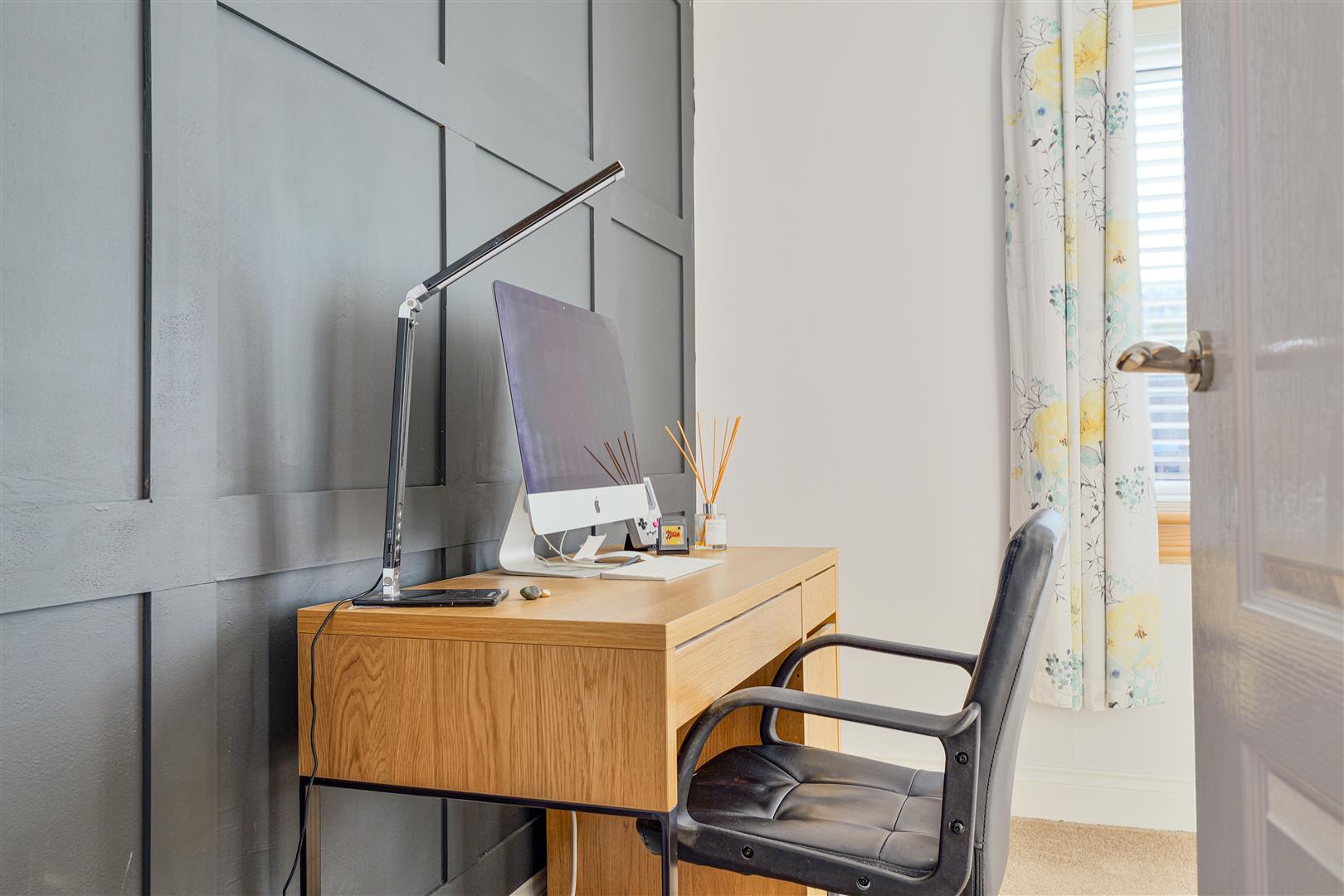 The lovely contemporary kitchen is fitted with sleek modern units, integrated appliances, and eye-catching acoustic wall panels, offering both style and functionality. The property boasts three well-proportioned, carpeted bedrooms, one of which benefits from fitted wardrobes for excellent storage. A beautifully finished, fully tiled shower room completes the accommodation, featuring a WC, vanity sink unit, and an enclosed electric shower.