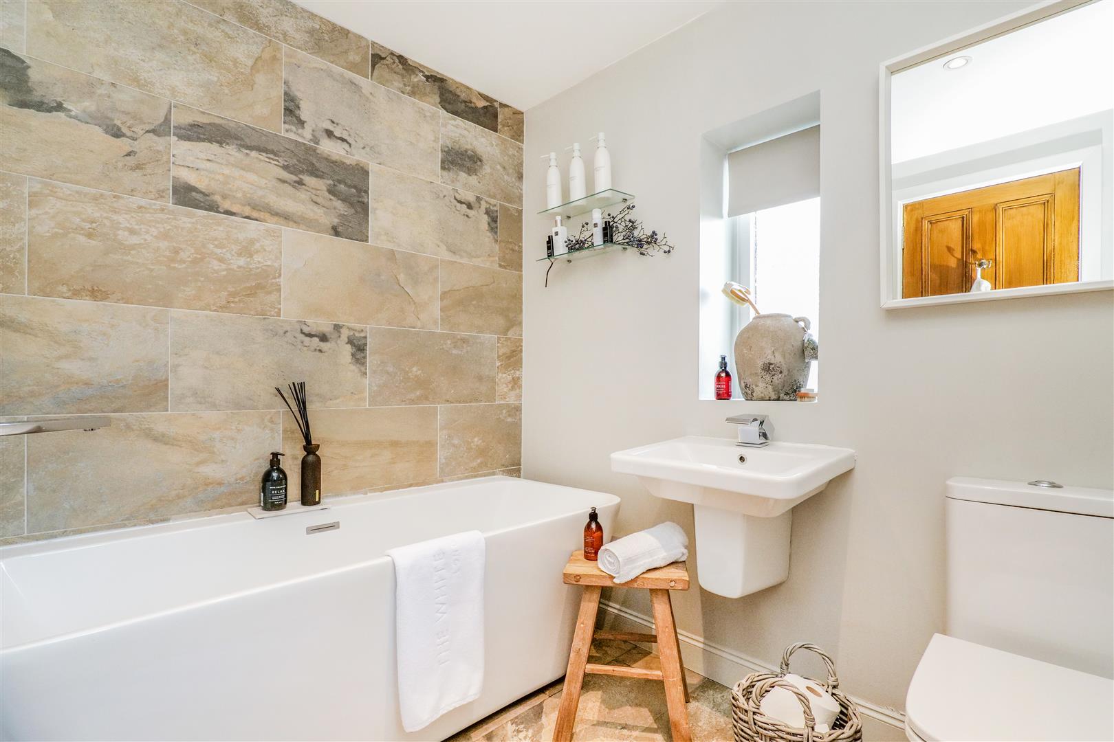 The upper floor offers an impressive landing which lead to three bedrooms, all of which are tastefully decorated with carpeted flooring and ample storage space. On the middle landing you will find a lovely part tiled family bathroom which consists of a WC, half pedestal sink and stylish bath with freestanding shower tap.