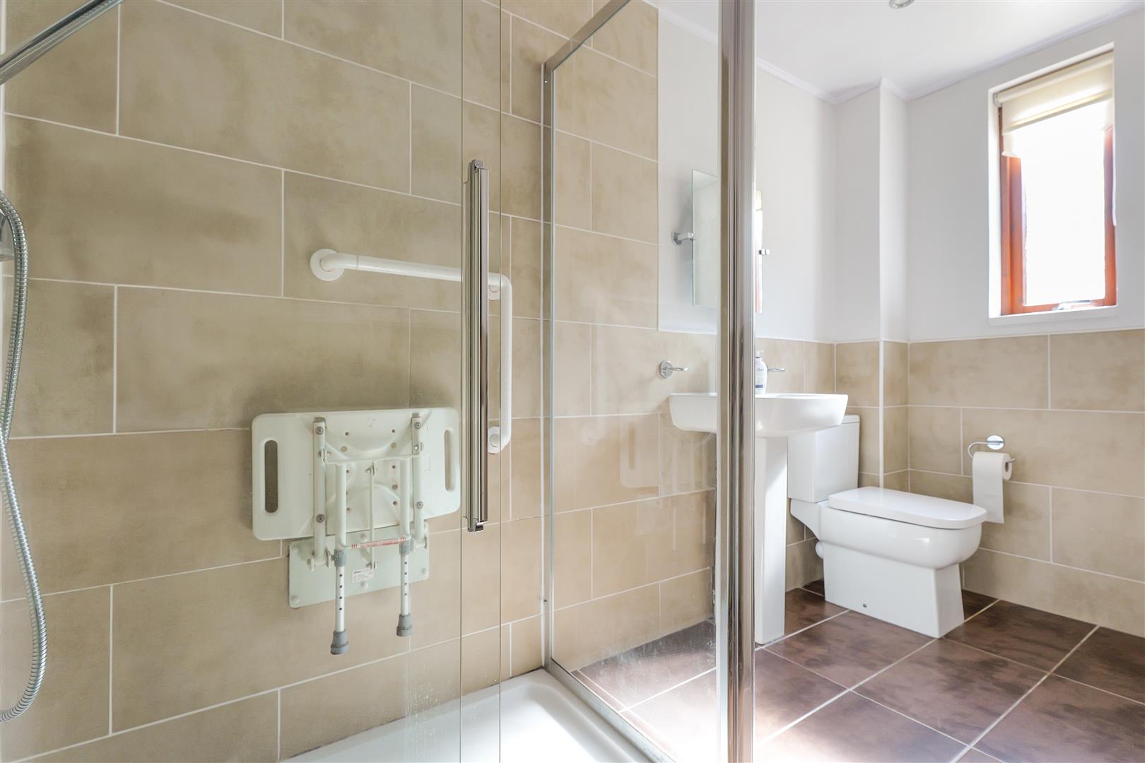 The well-looked-after kitchen offers good workspace and storage, while the generous shower room features a closed-off shower for added convenience.