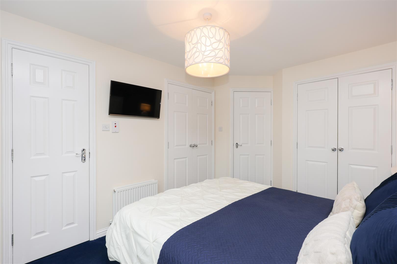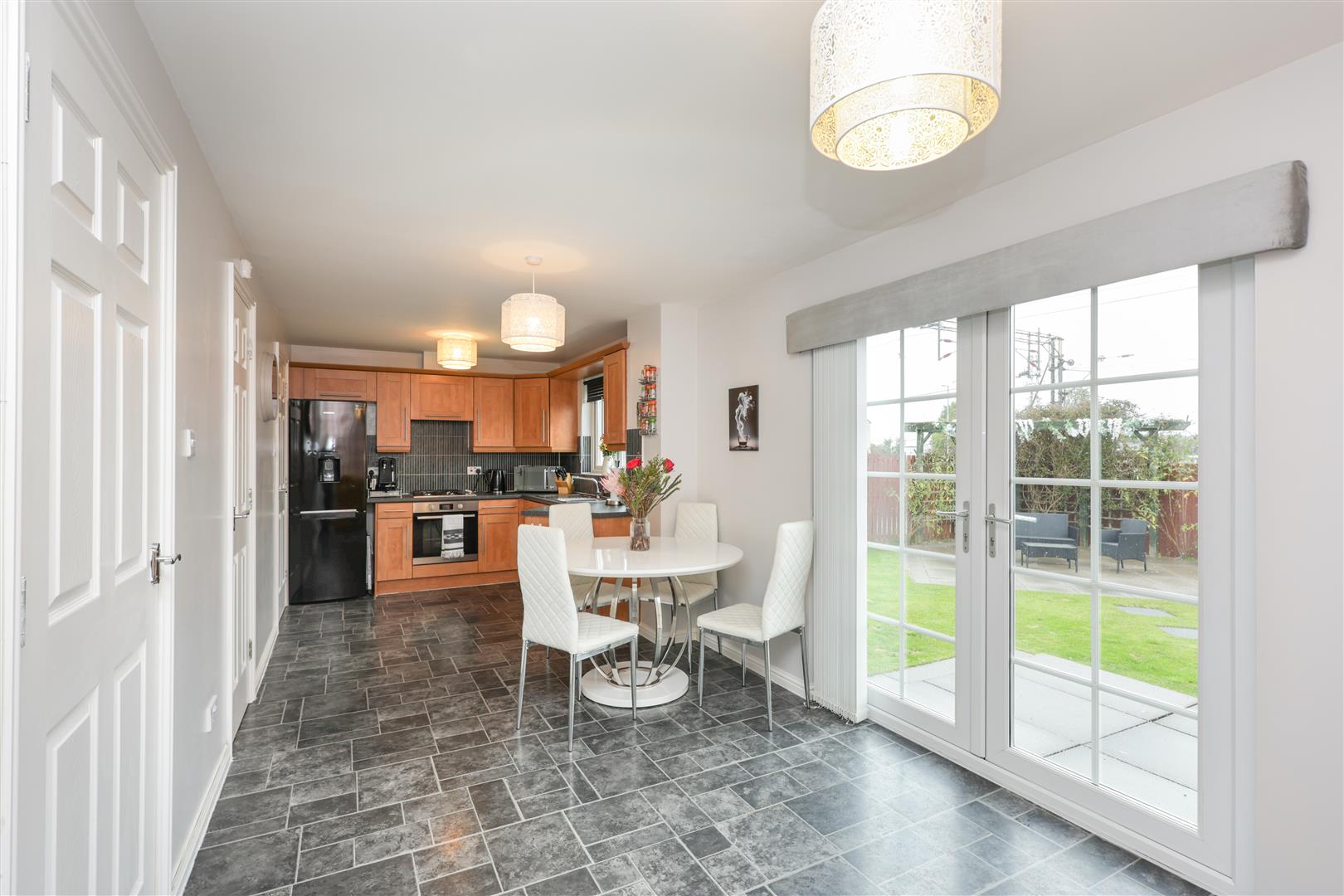 This beautiful detached property has been finished to a high standard throughout . On the ground floor the property offers a large and airy front facing lounge, a very generously sized dining kitchen with French doors leading out to the rear garden, a utility room and a WC. Upstairs, there are four bedrooms and a family bathroom finished with quality wall and floor tiling. The master bedroom is extremely generously sized and provides built in wardrobes and an en suite bathroom.