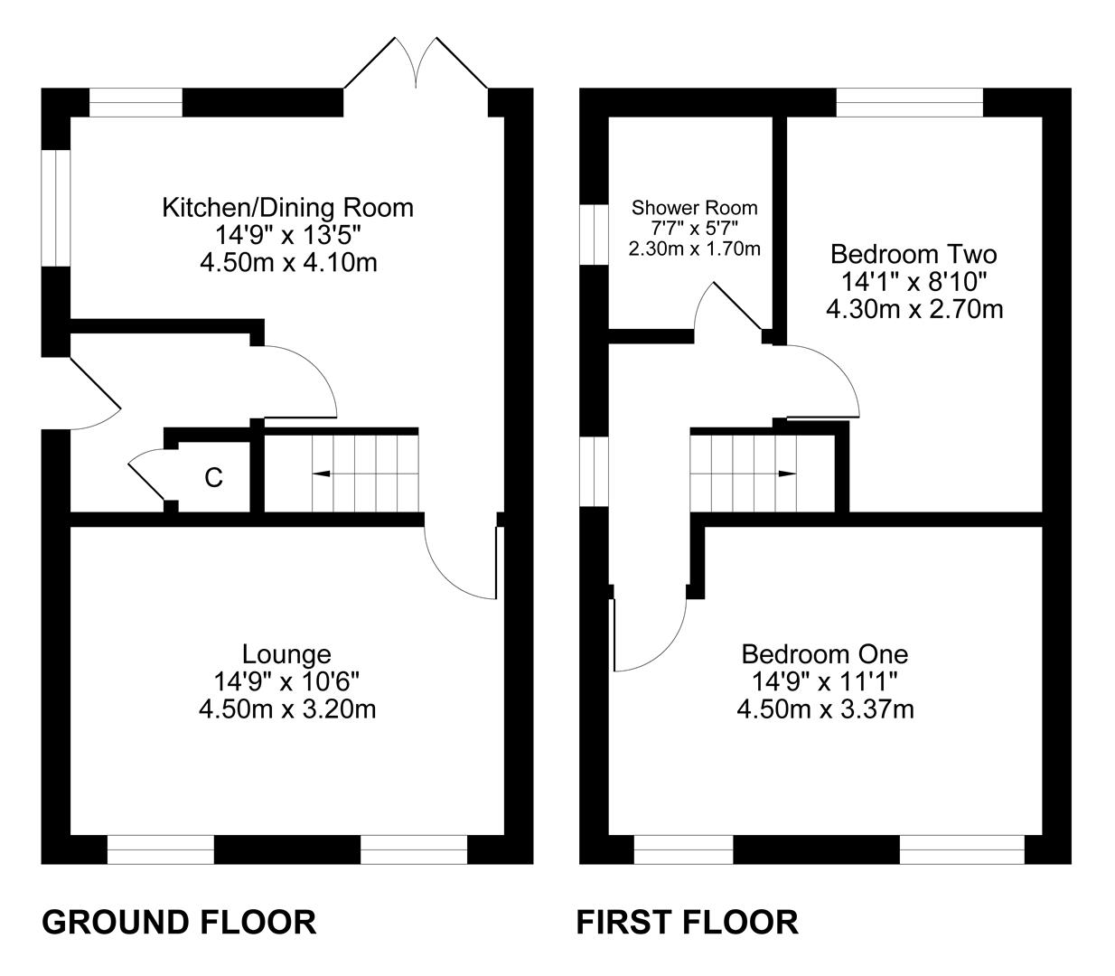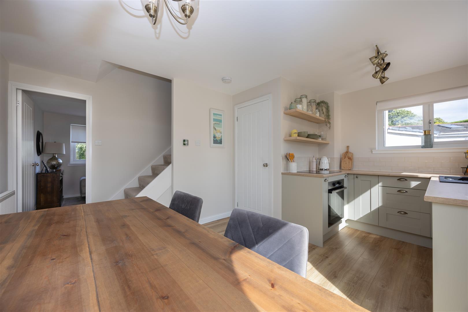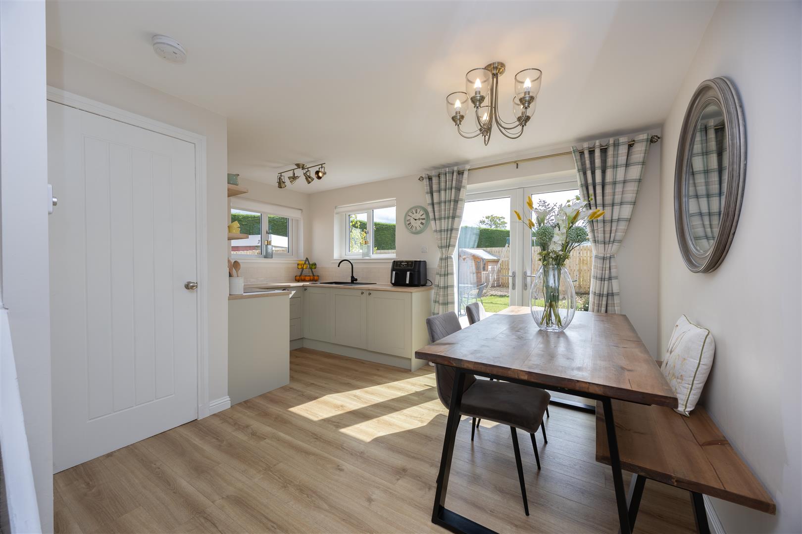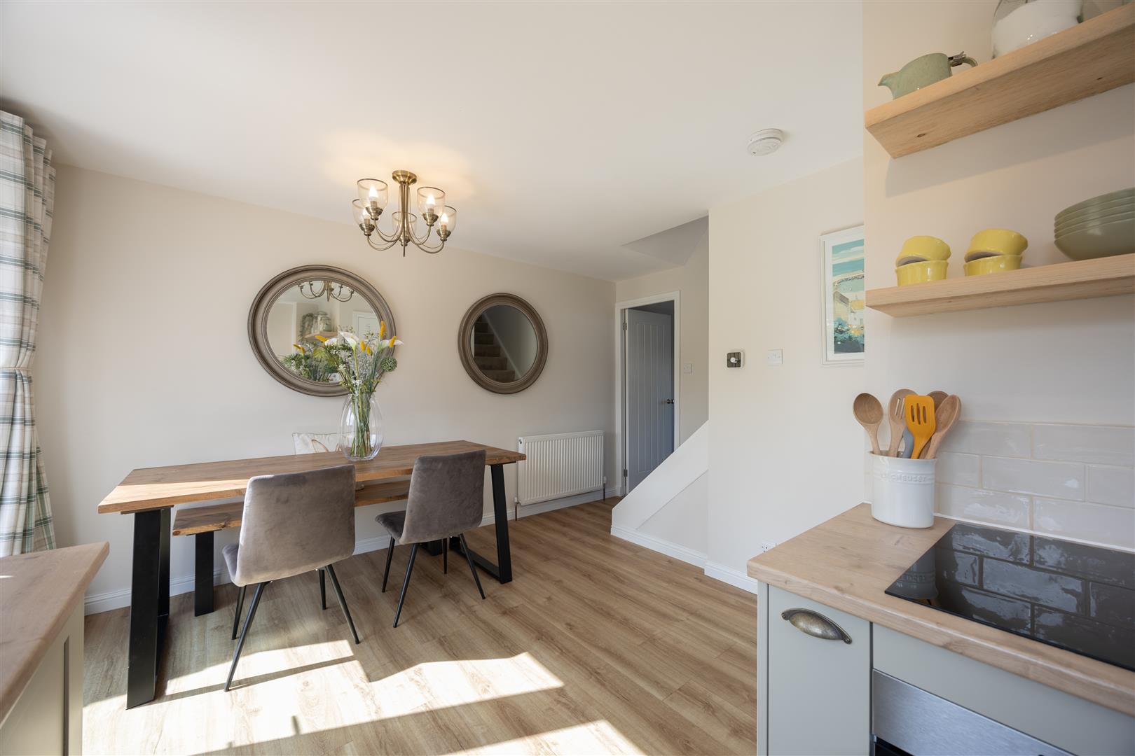 The property is split over two levels with the ground floor comprising of a welcoming side entrance vestibule with storage cupboard, a stunning kitchen/dining area with fitted floor units, integrated appliances and French doors leading out to decked patio area. Completing this floor is a front facing carpeted lounge with dual aspect windows allowing for plenty of natural daylight. On the upper level you will find two good size bedrooms, both of which have neutral colour decor, carpeted flooring. There is also a part tiled beautiful shower room consisting of a WC, vanity sink unit and shower enclosure.