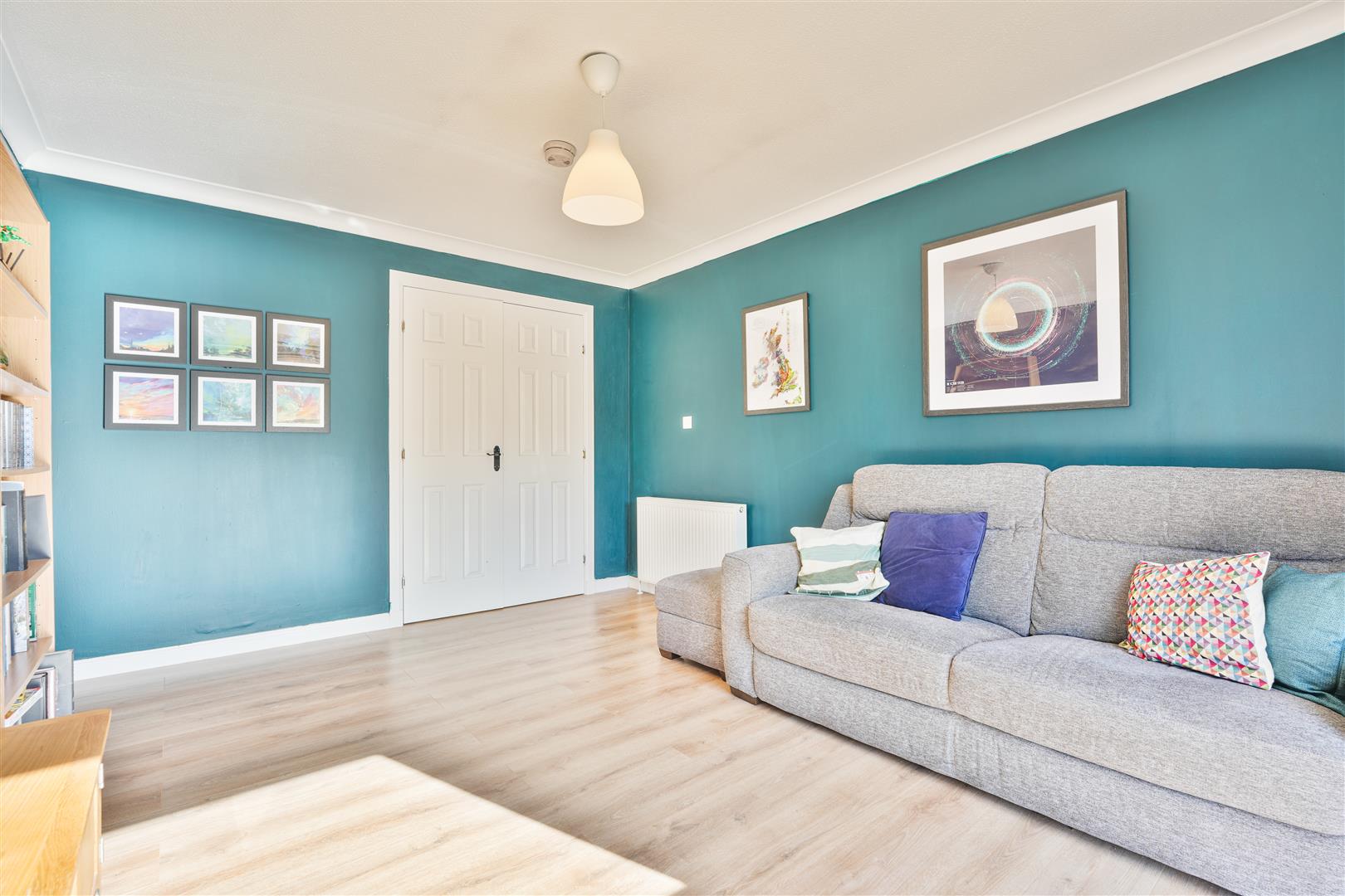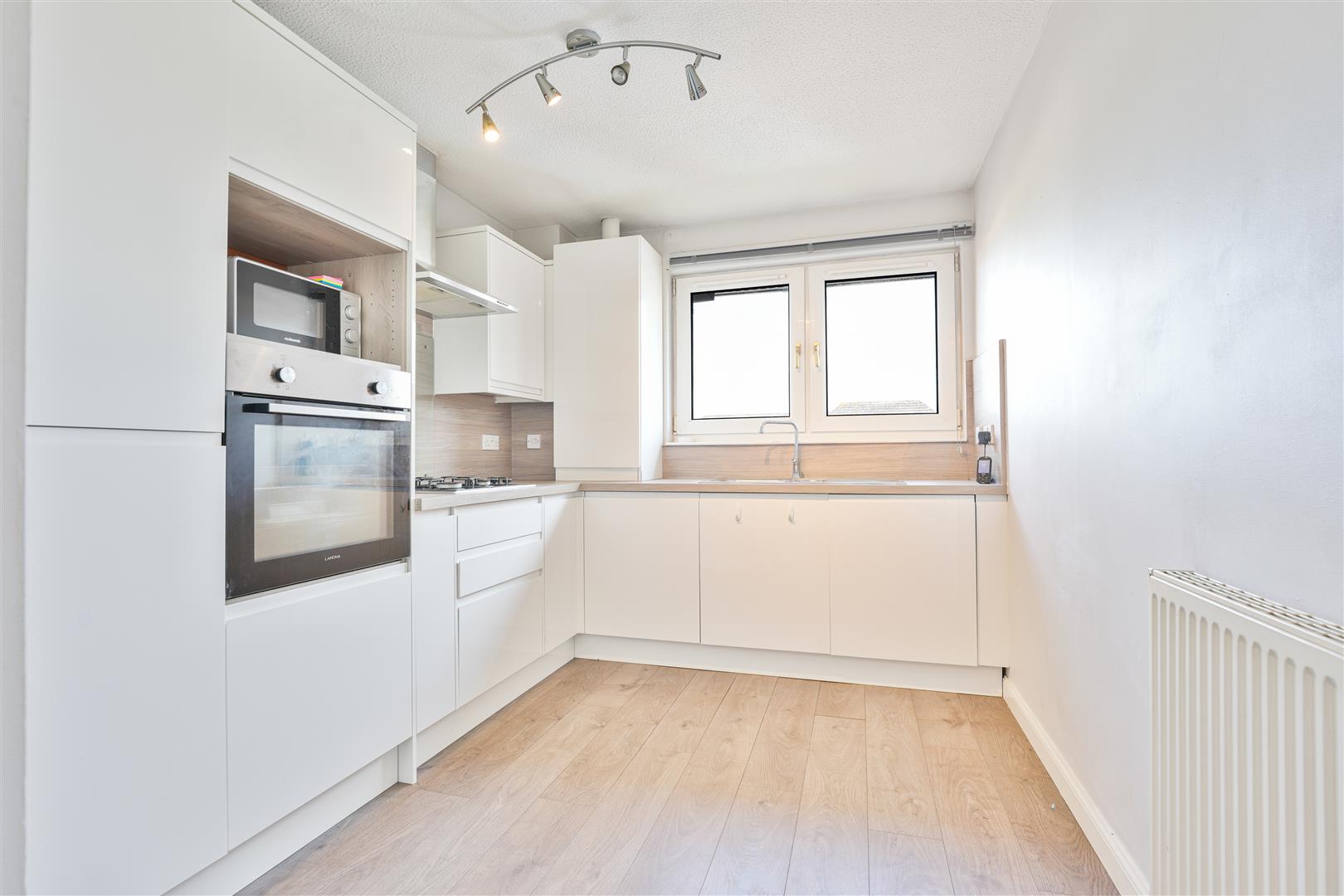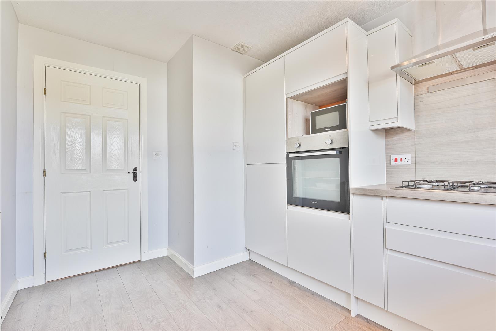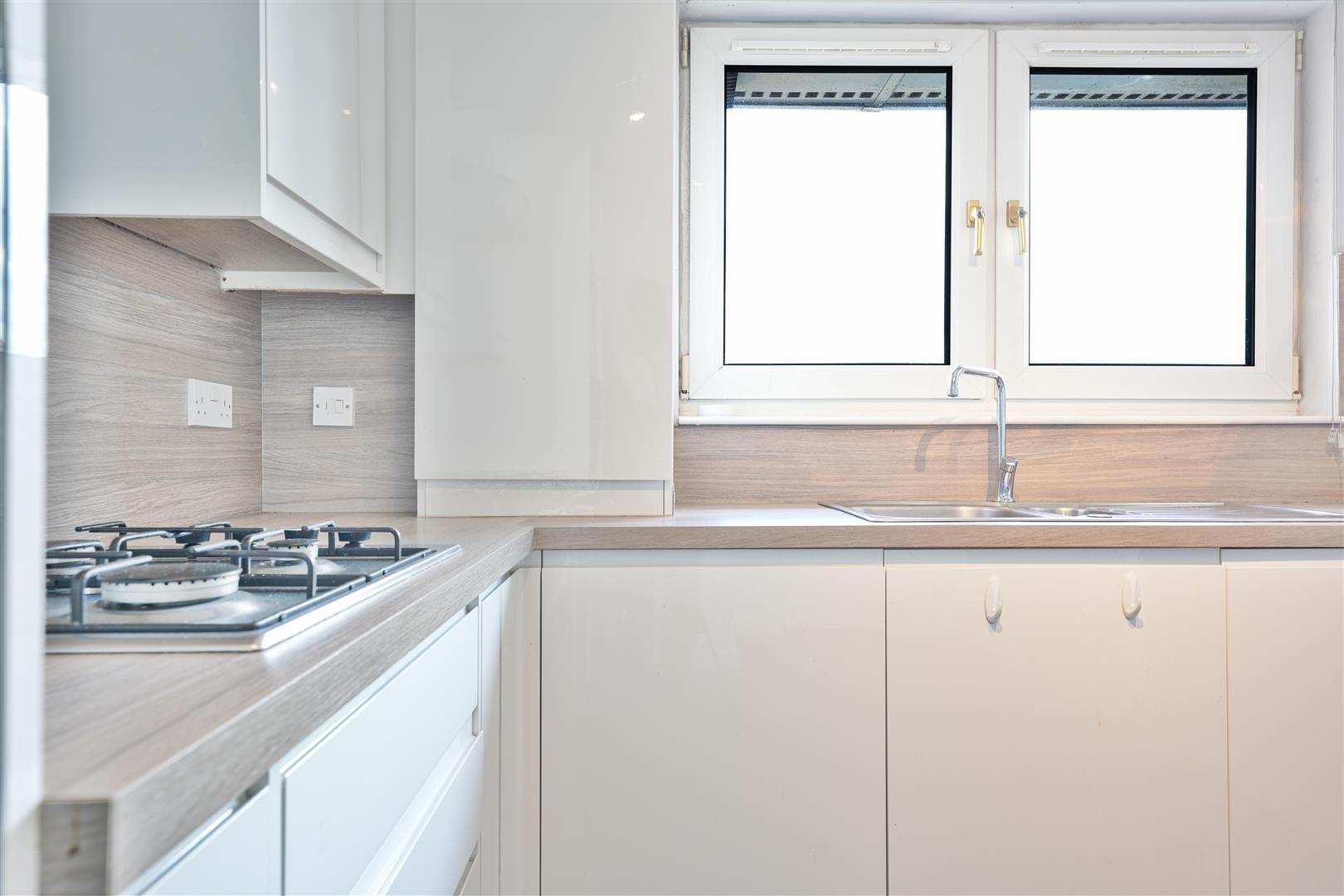This beautifully presented two-bedroom flat combines modern style with comfortable living, set within a well-maintained development. The welcoming entrance hallway leads into a spacious, light-filled lounge, where full-length windows and stylish feature décor create an inviting atmosphere. The sleek kitchen is fitted with contemporary handleless units, integrated appliances, and a gas hob, perfect for everyday living and entertaining.