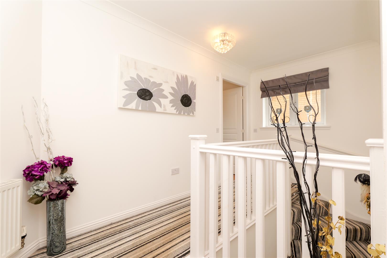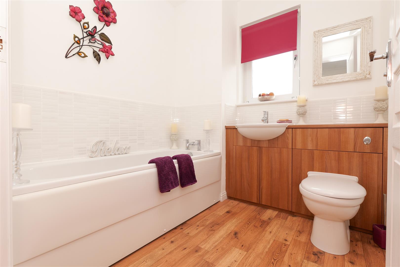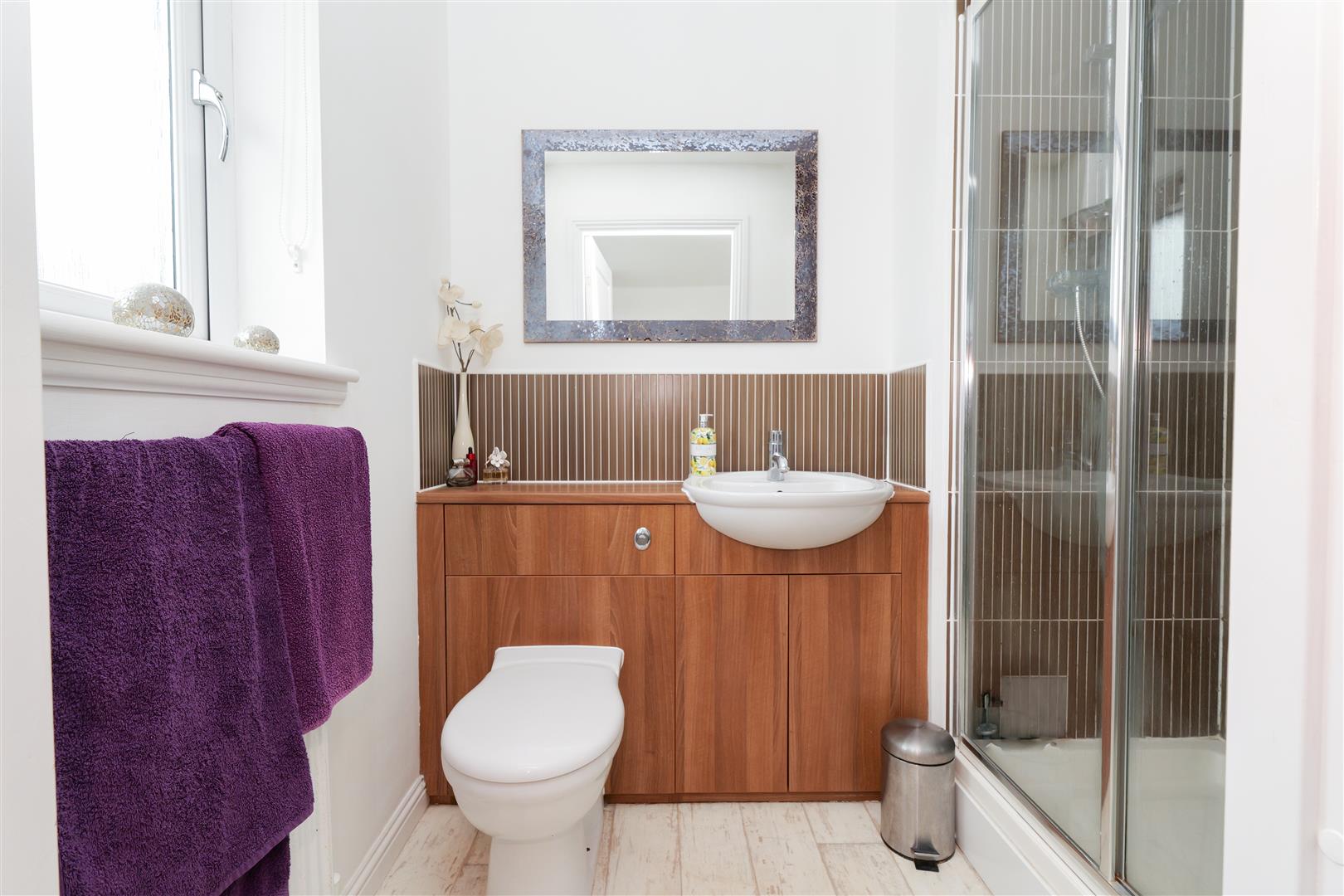 The upper floor consists of a landing area, three bedrooms all with neutral colour decor, carpeted throughout and two benefiting from fitted wardrobe space. The master bedroom hosts a modern en-suite shower room. Completing this floor is a stylish part tiled family bathroom consisting of back to wall WC/sink combination unit and bath.
