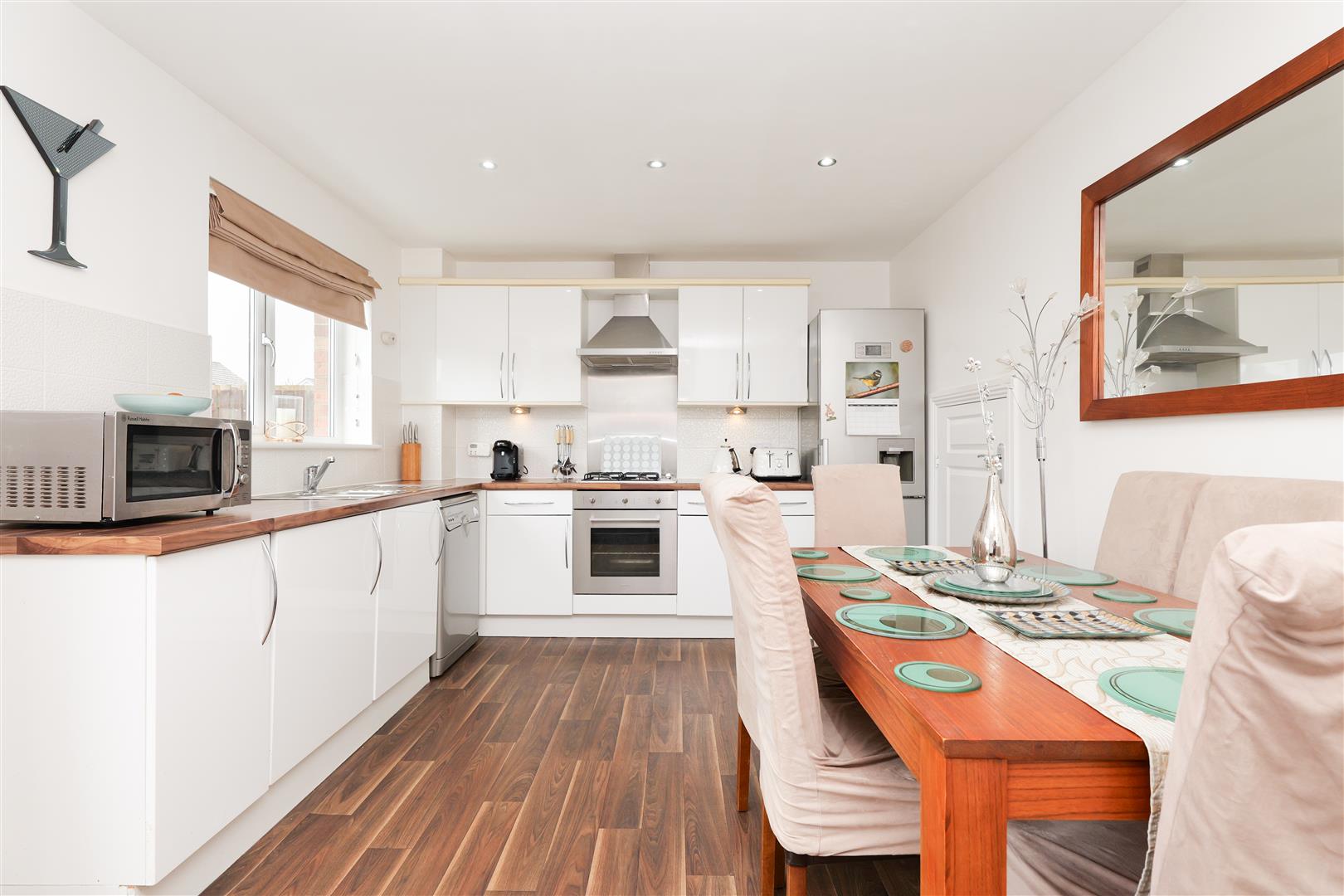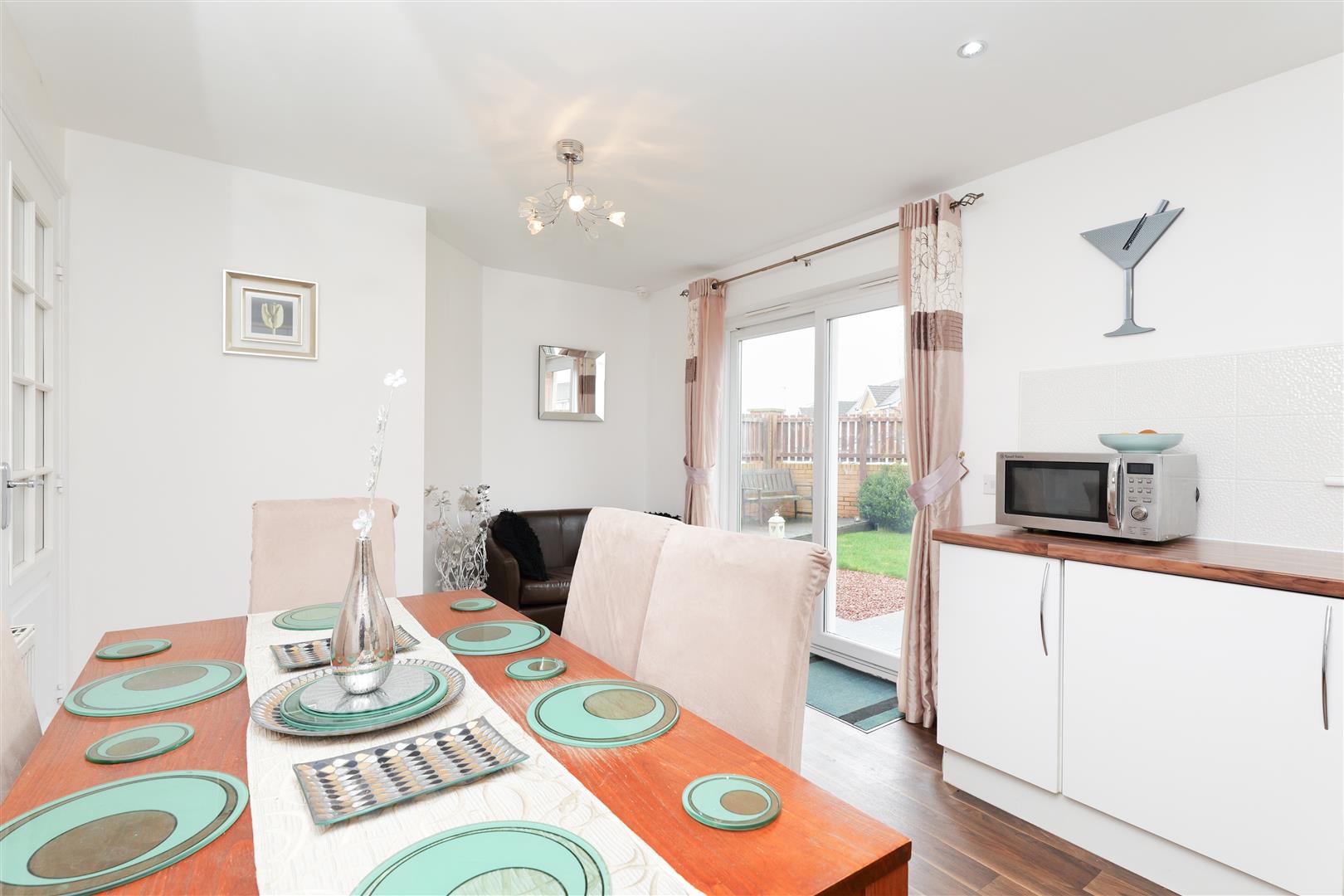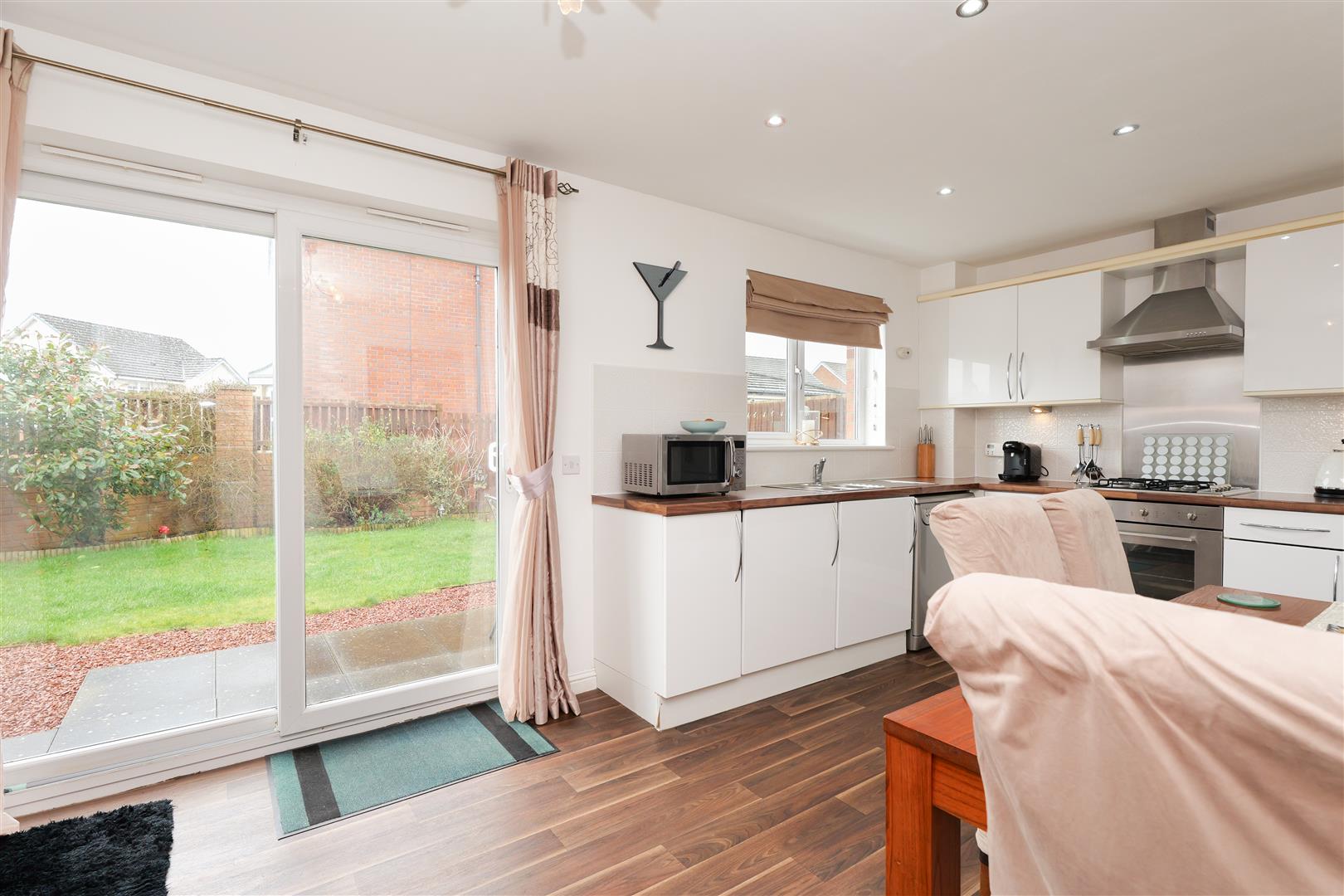 This beautifully presented and impressive three bedroomed detached home occupies an excellent position within this quiet residential development. Set over two levels with the ground floor comprising of a welcoming entrance hallway with laminate flooring leading through to a lovely front facing lounge with bay style window allowing for plenty of natural light, a stunning fitted kitchen/dining area with ample storage, built in oven/gas hob and patio doors providing access to the rear garden. Completing the ground level is a convenient WC.