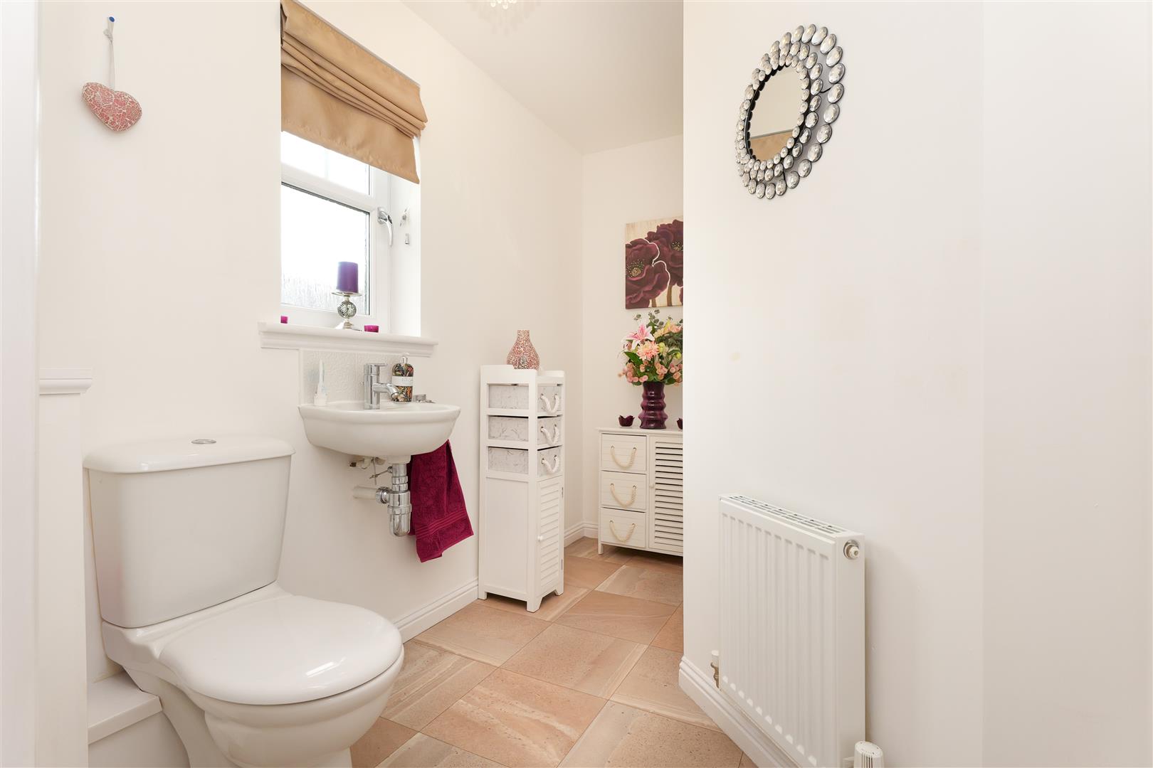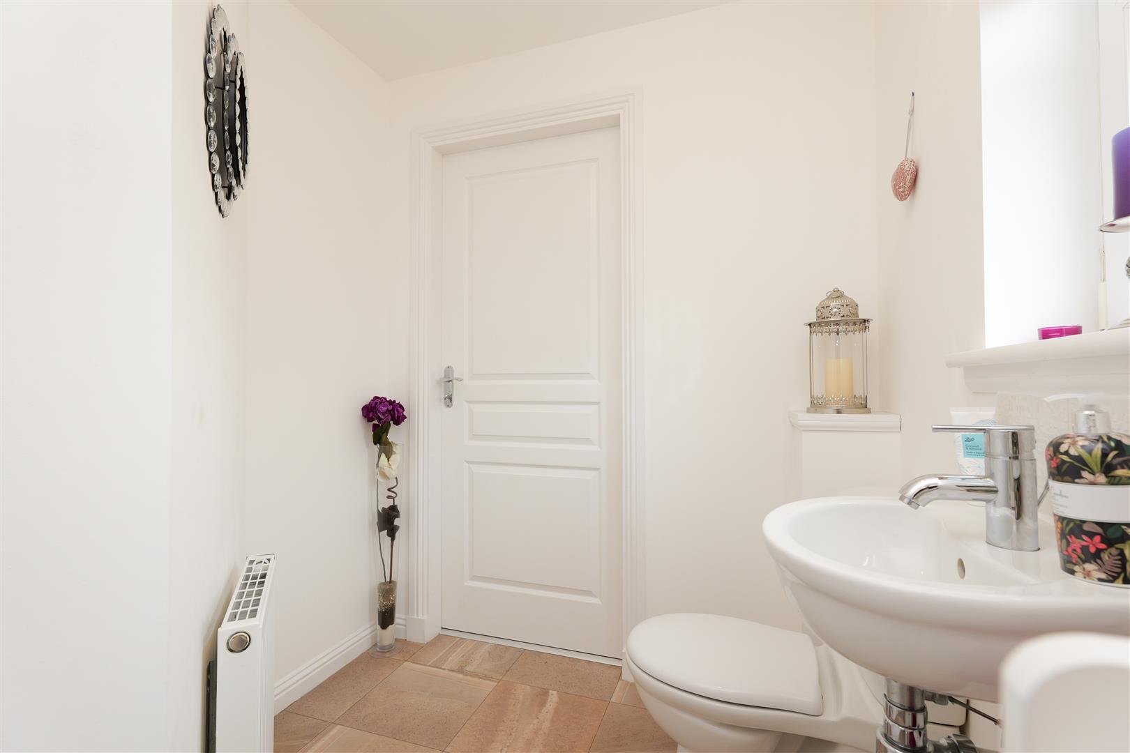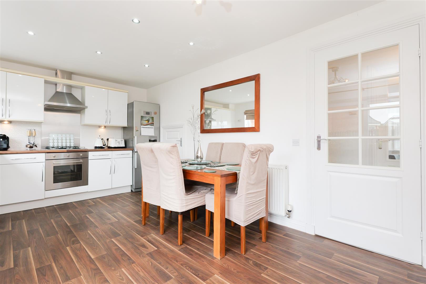 This beautifully presented and impressive three bedroomed detached home occupies an excellent position within this quiet residential development. Set over two levels with the ground floor comprising of a welcoming entrance hallway with laminate flooring leading through to a lovely front facing lounge with bay style window allowing for plenty of natural light, a stunning fitted kitchen/dining area with ample storage, built in oven/gas hob and patio doors providing access to the rear garden. Completing the ground level is a convenient WC.