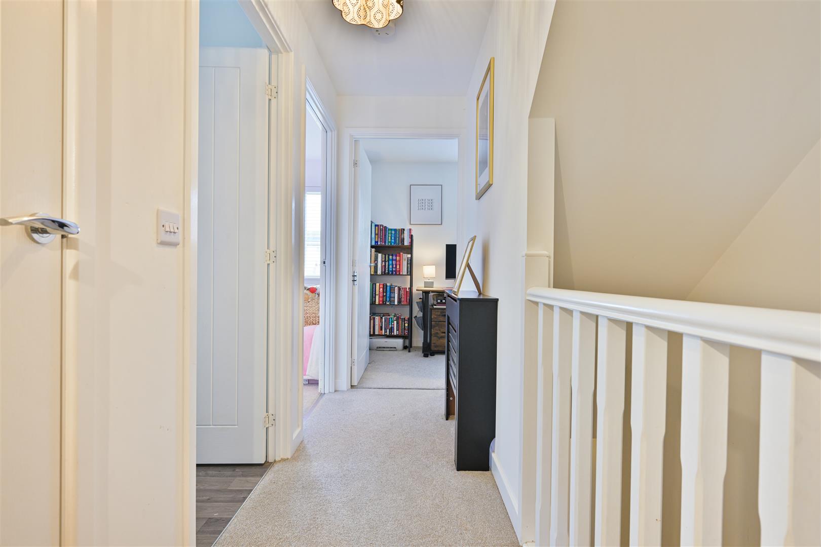 On the first floor, two spacious double bedrooms are complemented by a modern family bathroom and a versatile home office area, perfect for remote working or study. The top floor is dedicated to an exceptional master bedroom with a private en-suite shower room, offering a peaceful retreat from the rest of the home. Excellent storage is thoughtfully incorporated throughout.