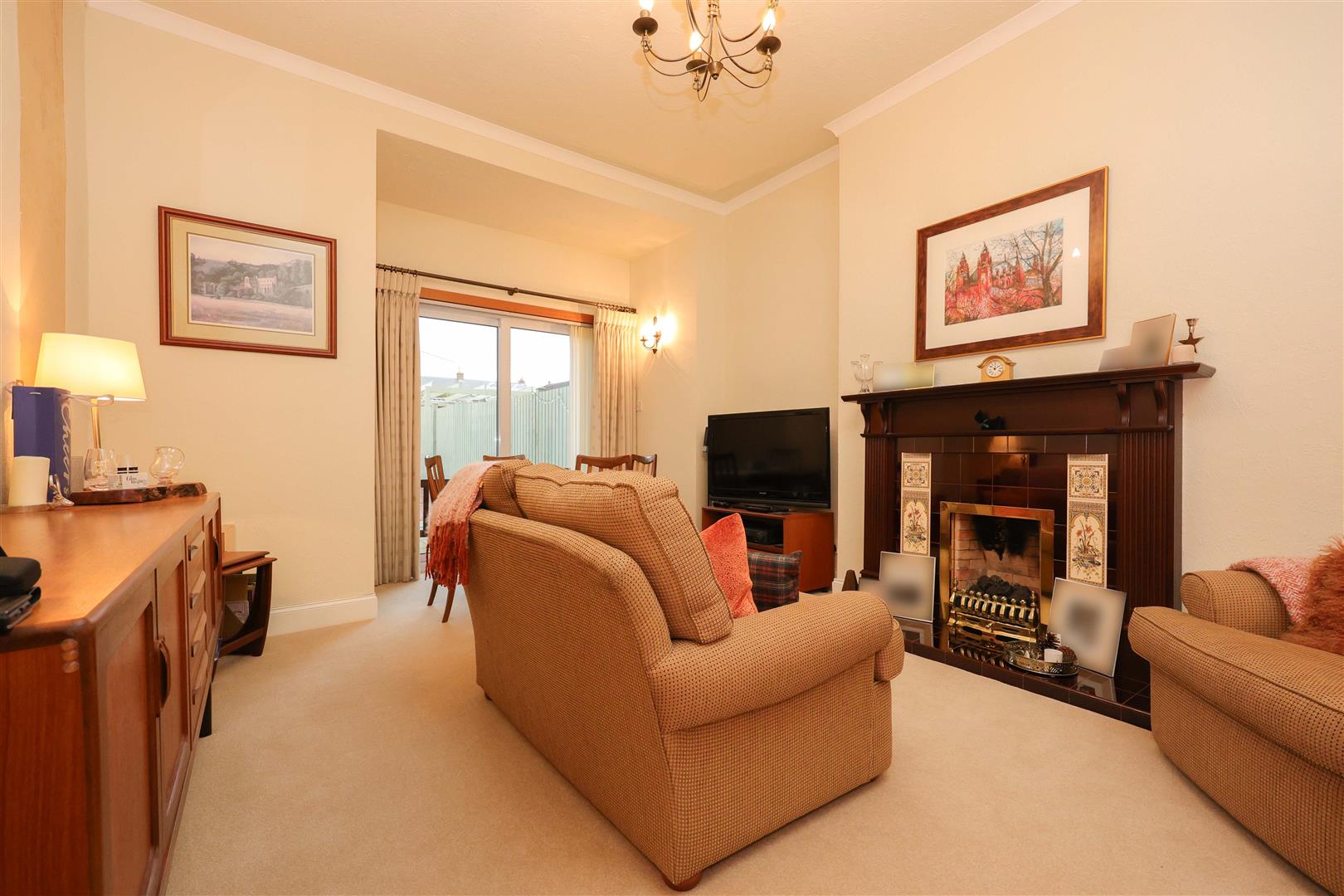 Set over two levels with the ground floor comprising of a welcoming entrance carpeted hallway, a front facing spacious bright and airy lounge with feature fireplace, a traditional style kitchen with fitted floor and wall mounted units with built in oven and gas hob. Completing this floor is a rear facing lounge/dining areas with patio doors leading out to rear garden.