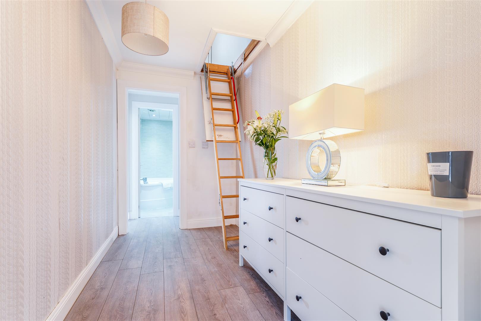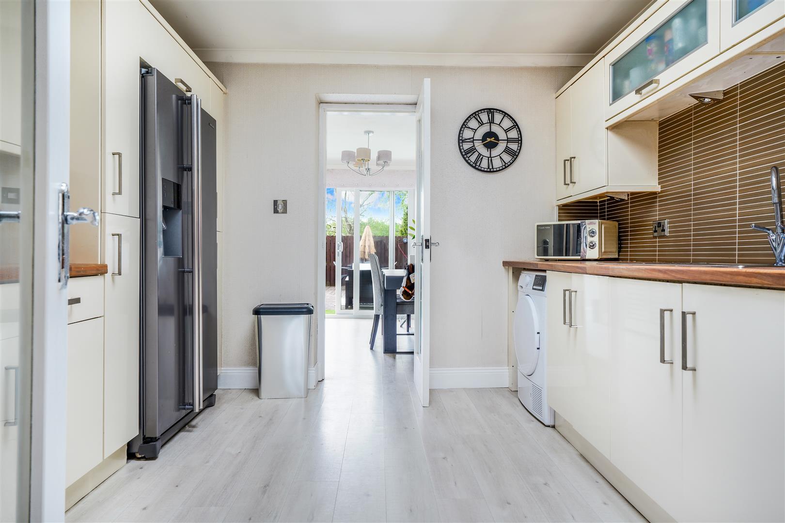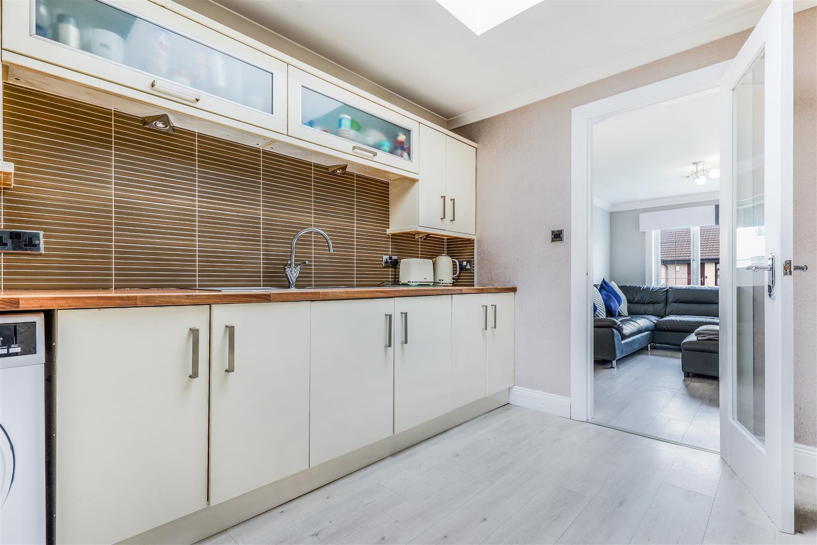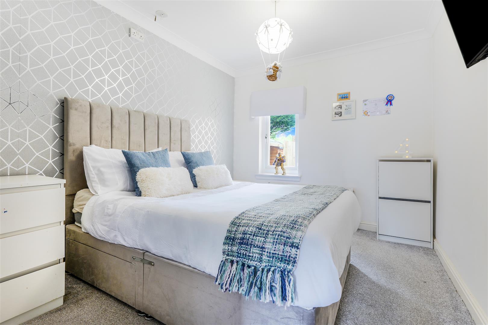 This beautifully presented property offers bright, airy living spaces and a well-thought-out layout. The generous front-facing lounge features stylish laminate flooring and a striking feature wall, providing a warm and inviting space to relax. There is a generously sized fitted kitchen complete with wall and floor-mounted units, integrated oven and hob, and a skylight that floods the space with natural light. There's ample storage throughout, along with a contemporary family bathroom featuring a three-piece suite including a corner bath, back-to-wall WC, and a sleek vanity sink unit.