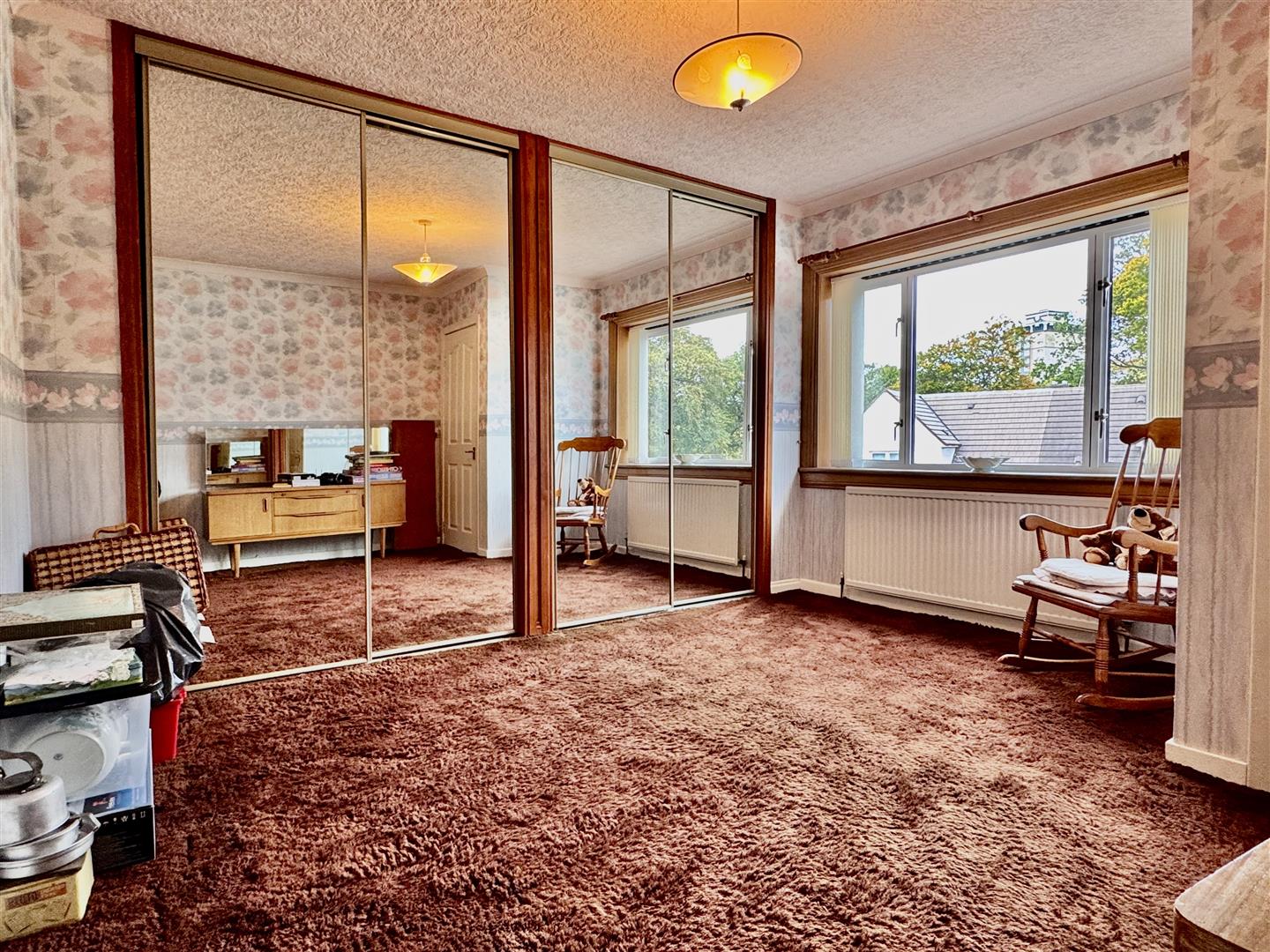 Upstairs, there are two bedrooms, both carpeted for comfort. The main bedroom benefits from fitted floor-to-ceiling mirrored wardrobes, providing excellent storage and enhancing the sense of space. The accommodation is completed by a practical wet room featuring a WC, wash hand basin, and electric shower.