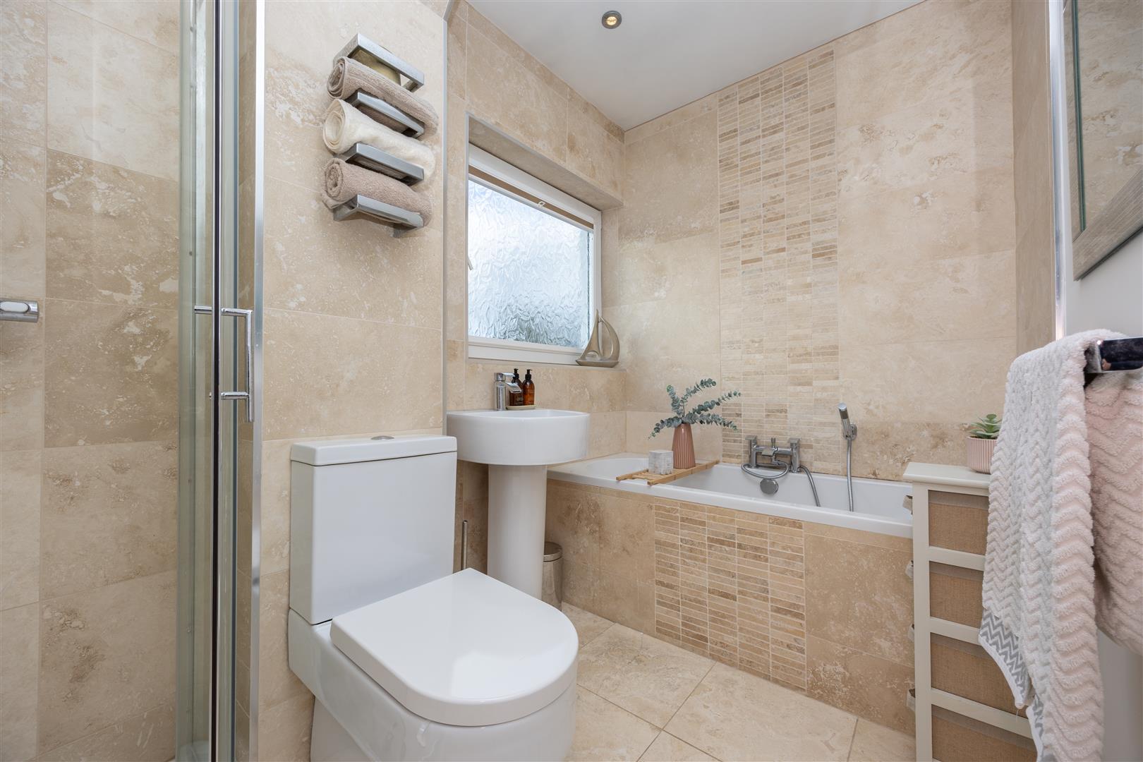 On the upper floor you will find three good size bedrooms, all of which are carpeted throughout and have ample space for wardrobe/storage furniture with the master benefiting from a walk in wardrobe. Completing this floor is a stylish part tiled bathroom consisting of WC, sink, bath and separate walk in shower enclosure.