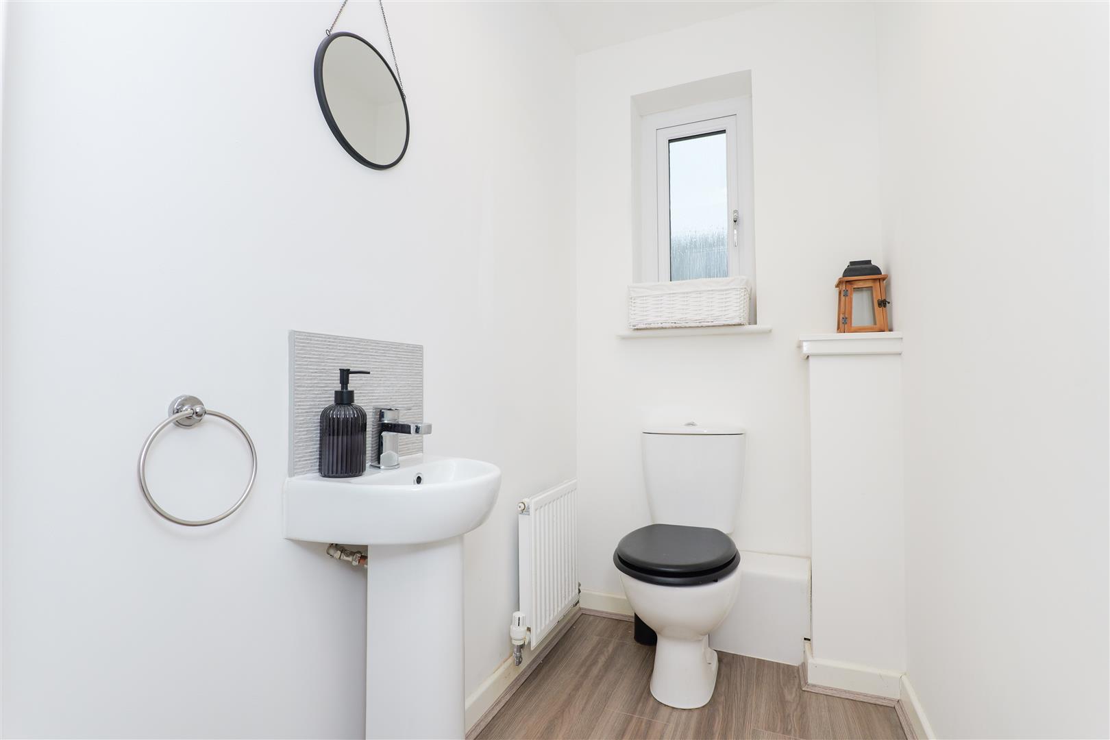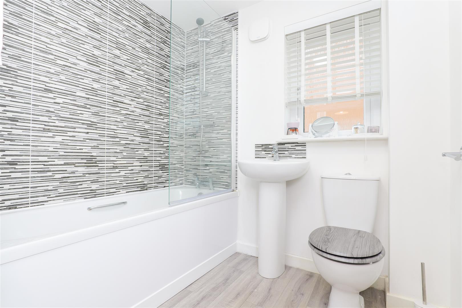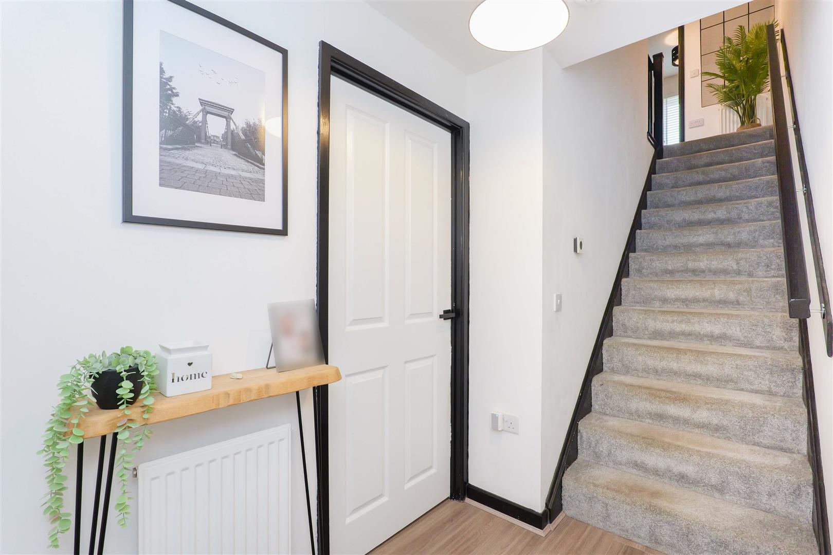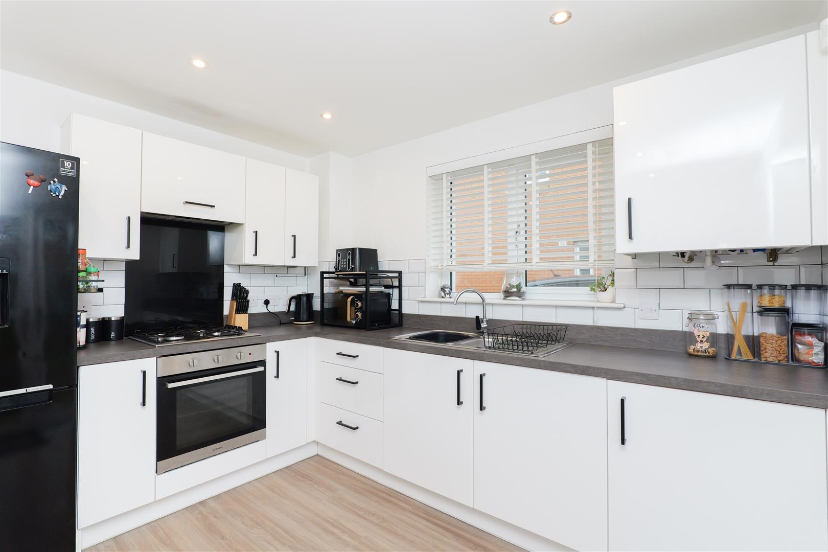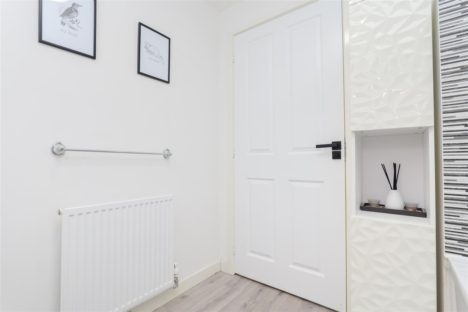 The ground floor of the property comprises of a welcoming entrance, a bright and airy lounge with laminate flooring and front facing window allowing for plenty of natural light, a modern fully fitted dining kitchen with French doors leading out to the rear garden, a separate utility area and a ground floor W.C. The upper floor consists of a landing area, three bedrooms all of which are carpeted throughout with ample storage space. The master bedroom benefits from built-in mirrored wardrobes, providing additional convenience. Completing the floor is a stylish part tiled family bathroom consisting of WC, sink and bath with overhead shower.