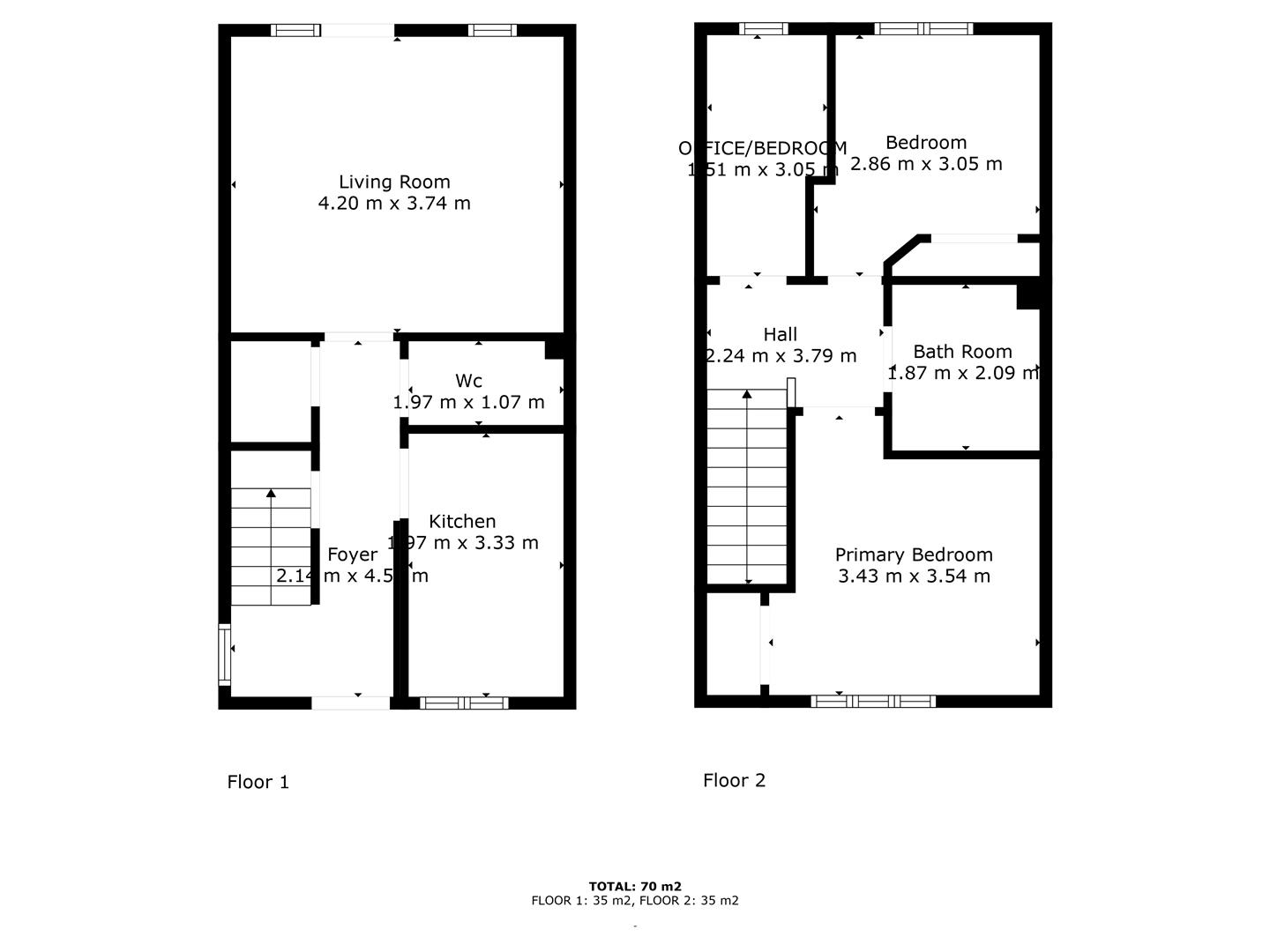 Set over two levels with the ground floor comprising of a welcoming entrance hallway, a beautiful modern rear facing lounge with plush carpeted floor covering and French doors leading out to rear garden, a lovely front facing kitchen with fitted wall and floor mounted units, space for appliances and built in oven/gas hob. Completing this floor is a cloakroom WC. On the upper floor you will find two bedrooms, both of which are carpeted throughout with floor to ceiling mirrored wardrobes, an additional office/box room and a part tiled family bathroom consisting of back to wall WC/sink combination and bath with overhead mixer shower.
