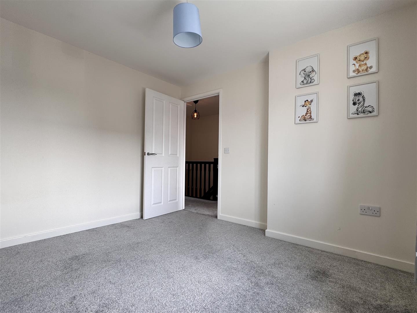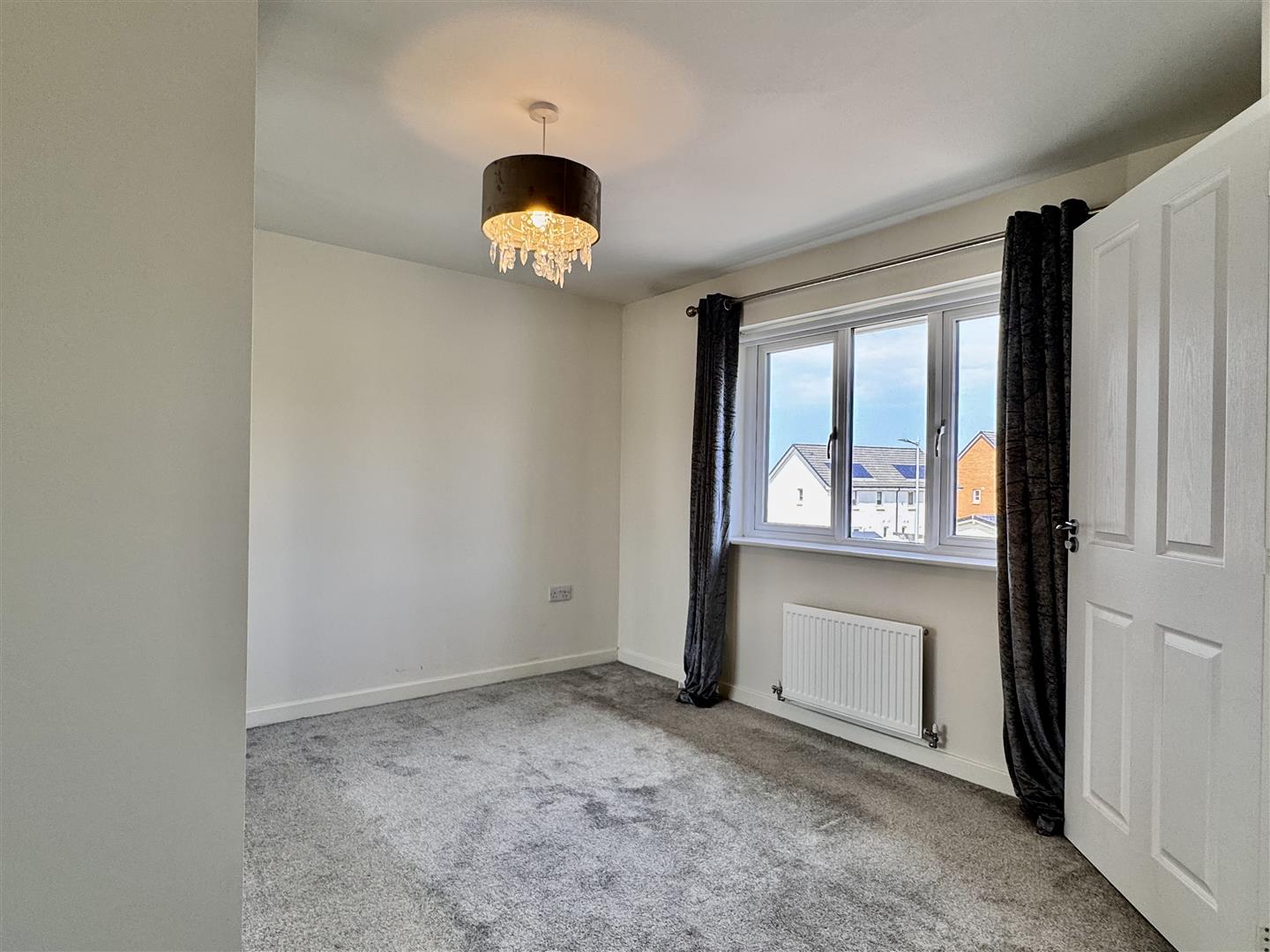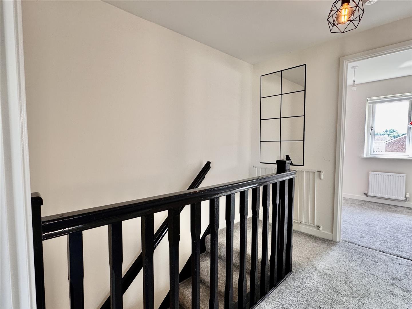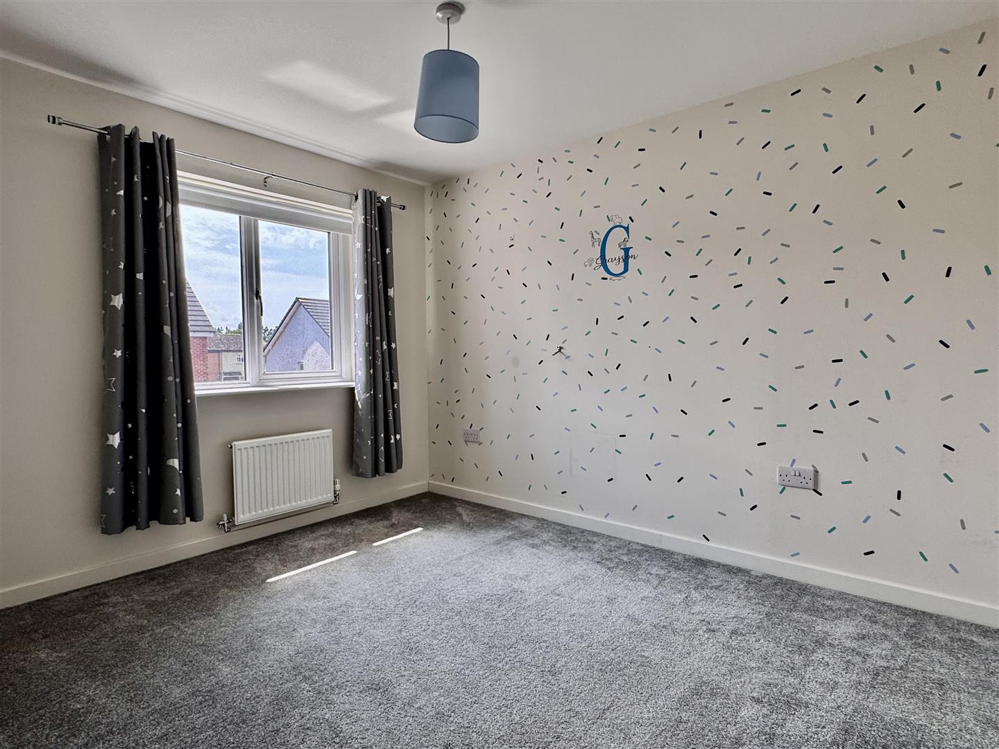 Upstairs, the property comprises a well-appointed landing and three generously sized, fully carpeted bedrooms, each offering excellent storage. The master bedroom includes built-in mirrored wardrobes and a sleek en-suite shower room, adding both style and functionality. A contemporary, part-tiled family bathroom with a WC, sink, and bath completes the upper floor.