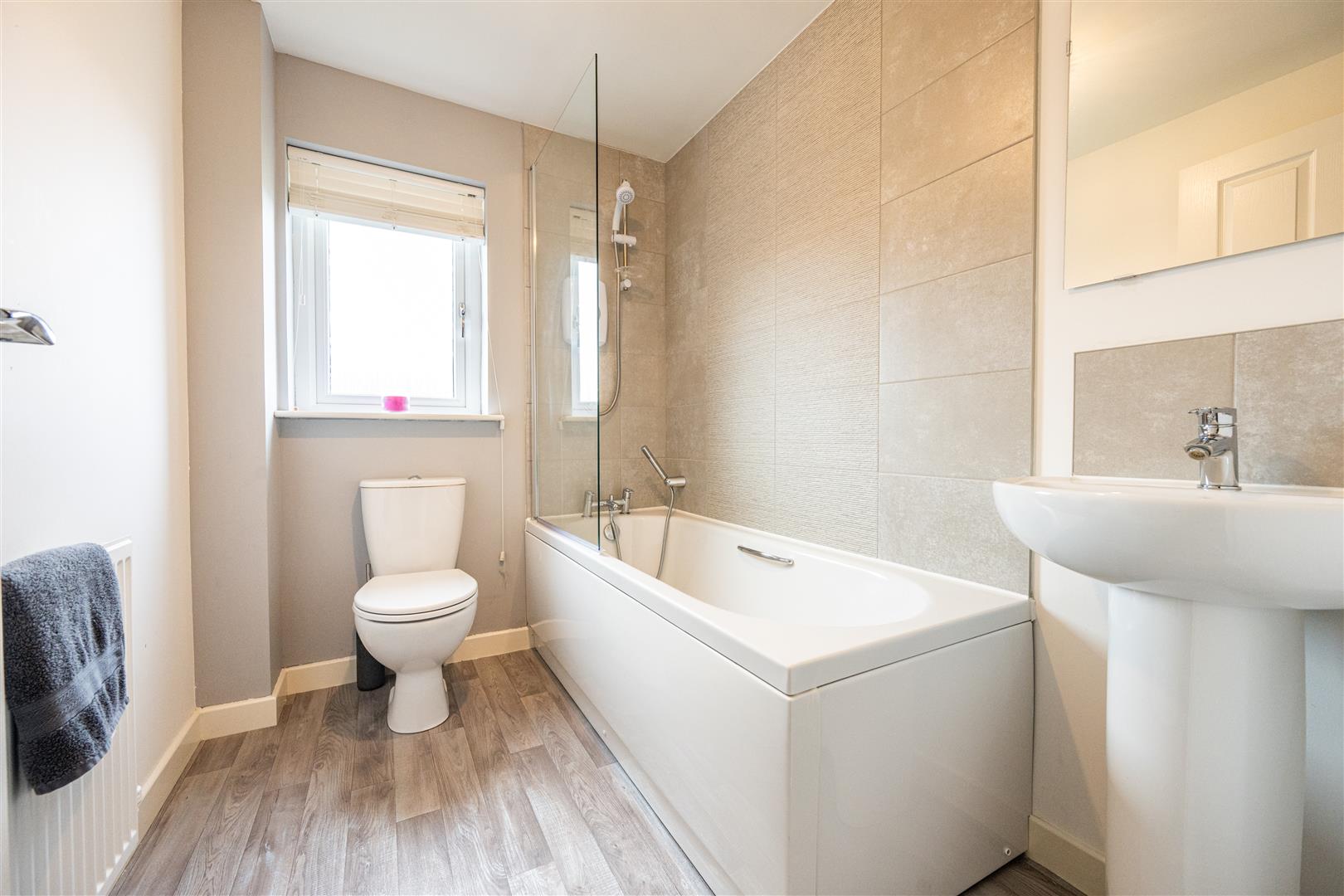 Upstairs, there are three well-proportioned bedrooms, all tastefully decorated and offering excellent storage. The spacious master bedroom benefits from a contemporary en-suite shower room, while the remaining bedrooms are served by a modern family bathroom complete with elegant tiling and a bath with shower overhead.