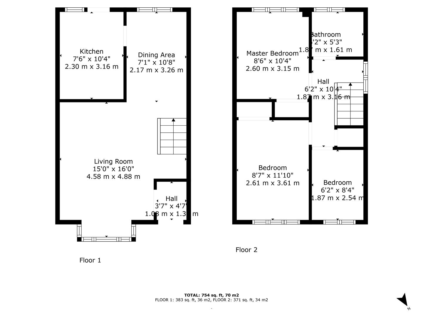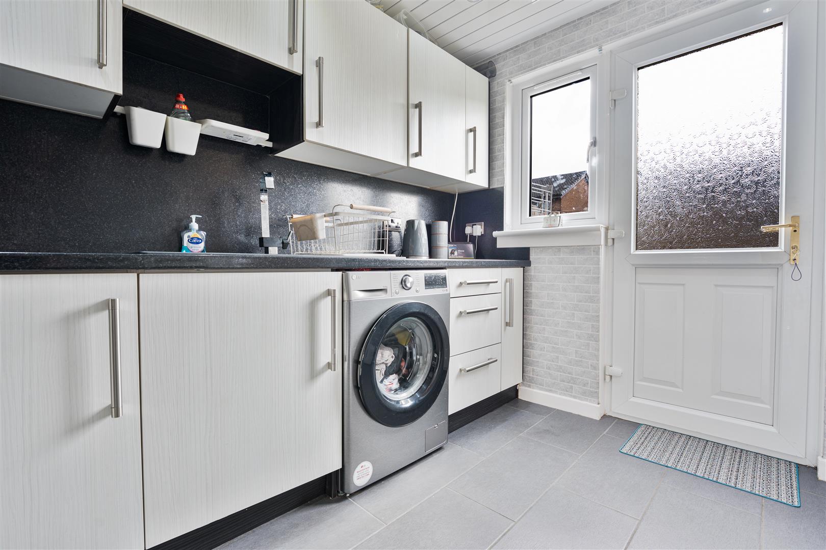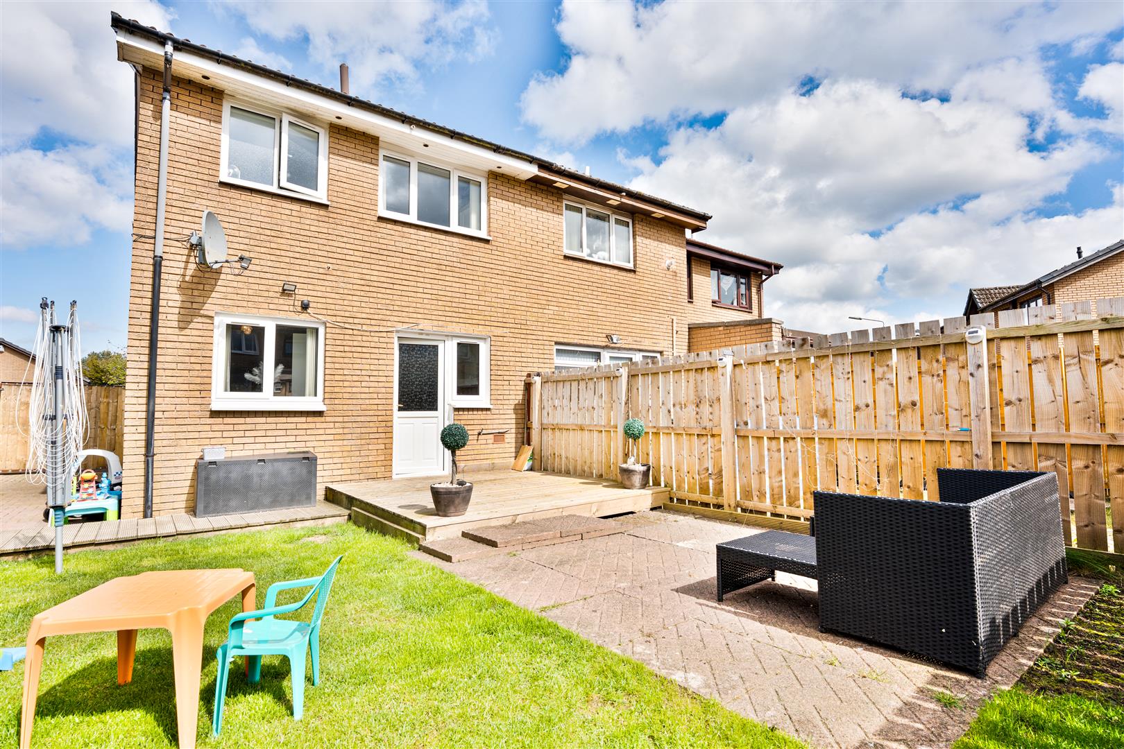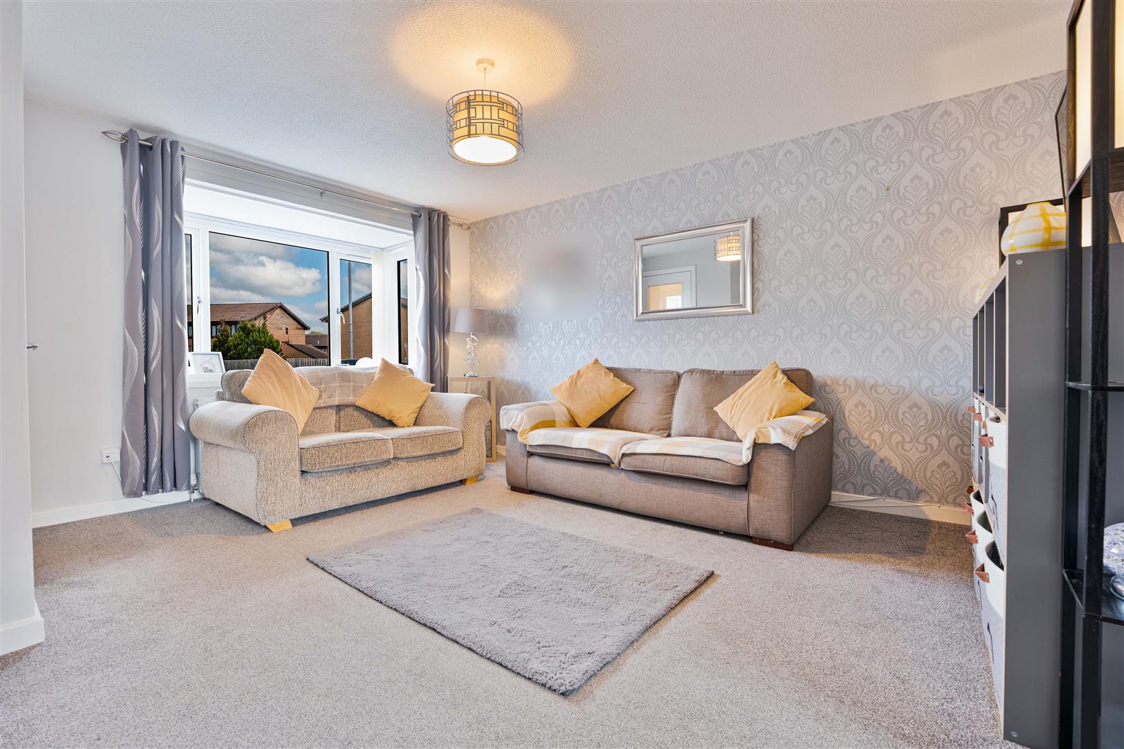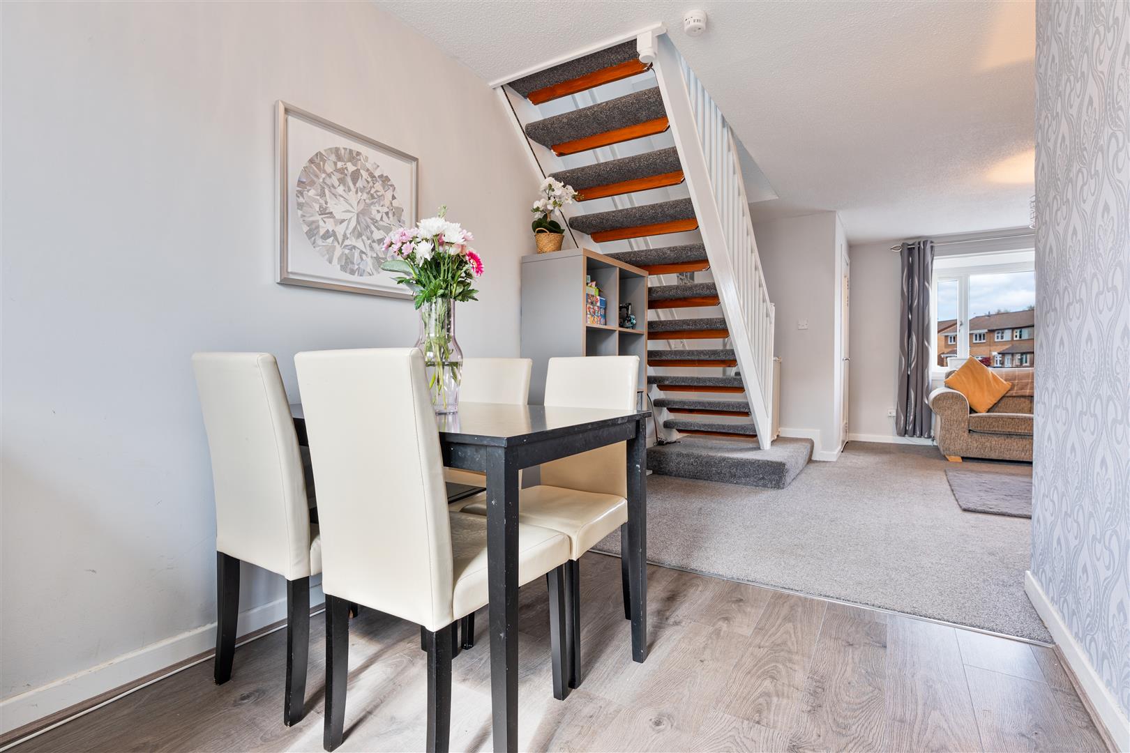 Set across two levels, this fantastic family home welcomes you with a bright entrance vestibule leading into a spacious, open-plan lounge and dining area with dual aspect windows, allowing for plenty of natural light, creating a warm and inviting atmosphere. The stylish, modern kitchen is fitted with floor and wall-mounted units, built in oven/gas hob and integrated appliances — perfect for everyday living. Upstairs, the landing area leads to three bedrooms, each featuring soft carpeting with two benefiting from fitted floor-to-ceiling mirrored wardrobes. Completing the upper level is a beautifully finished, fully tiled family bathroom, fitted with a back-to-wall WC, integrated wash hand basin, and a bath with overhead mixer shower.