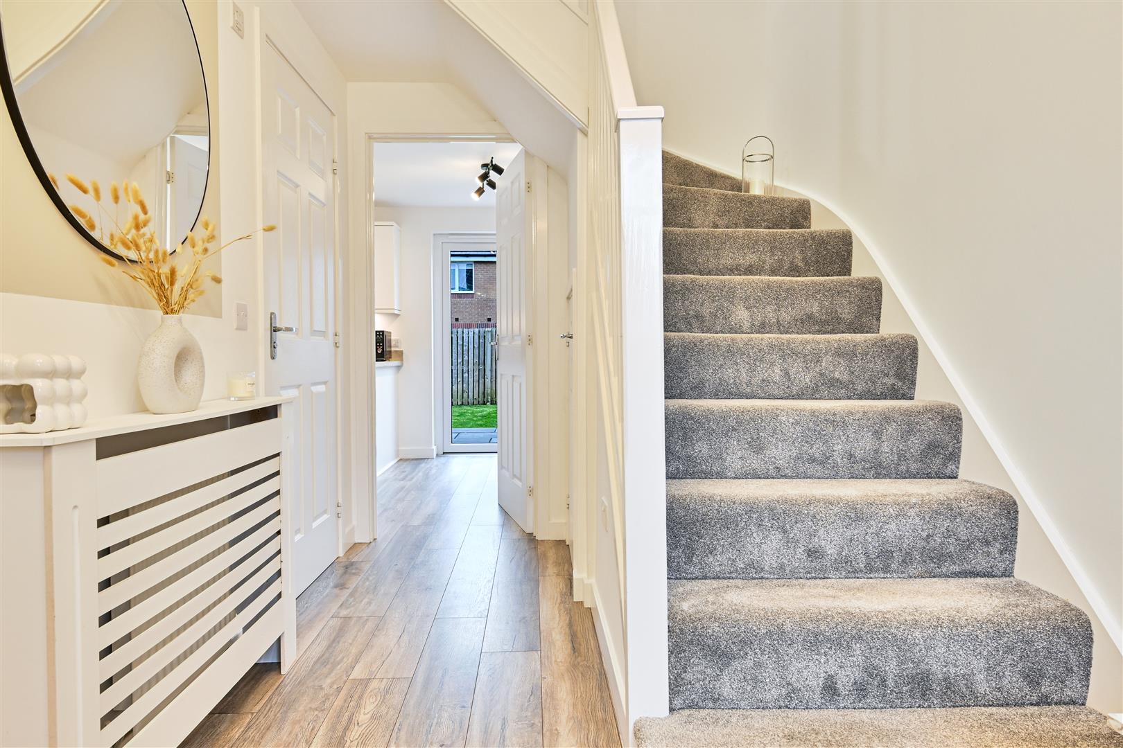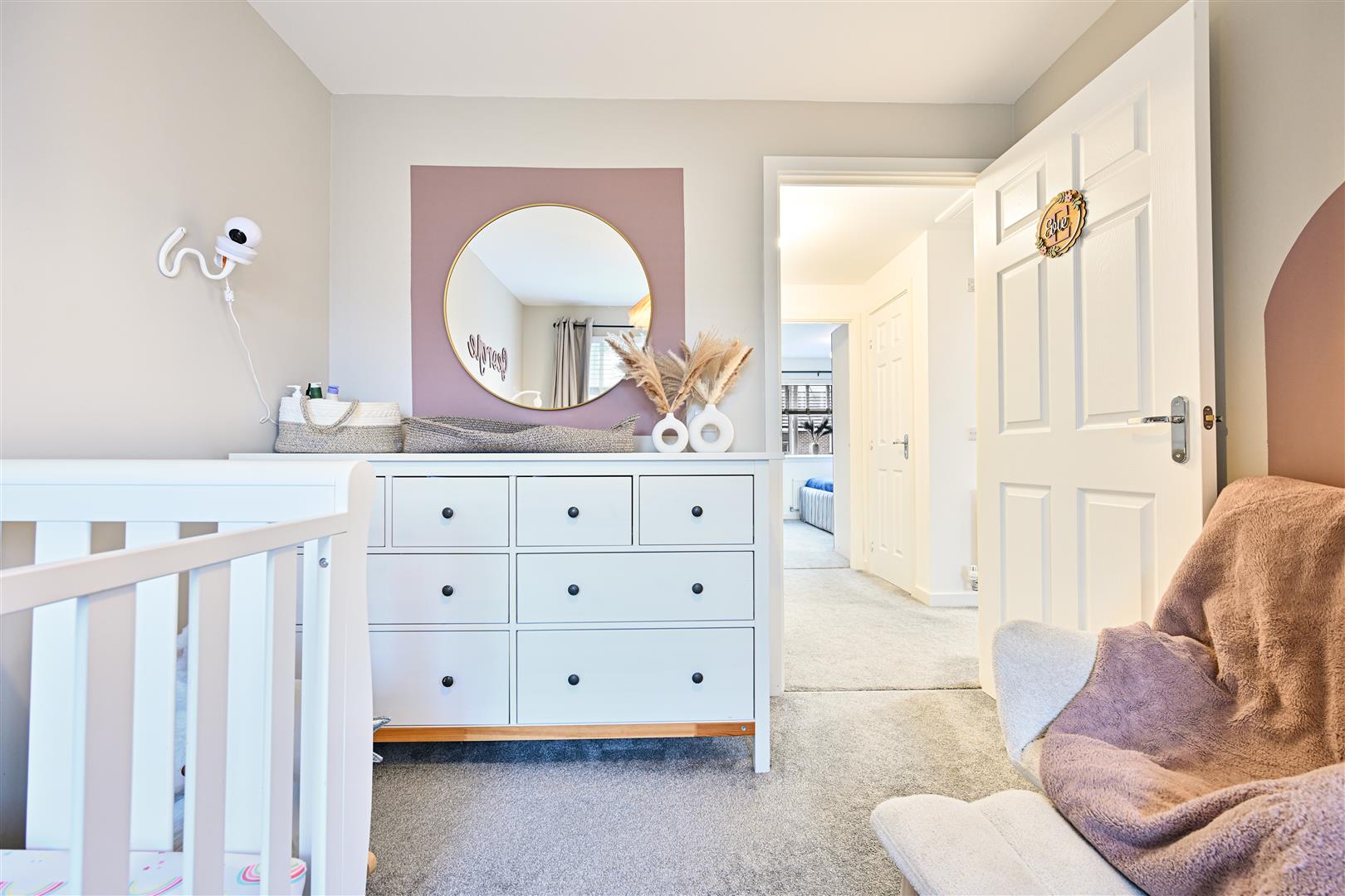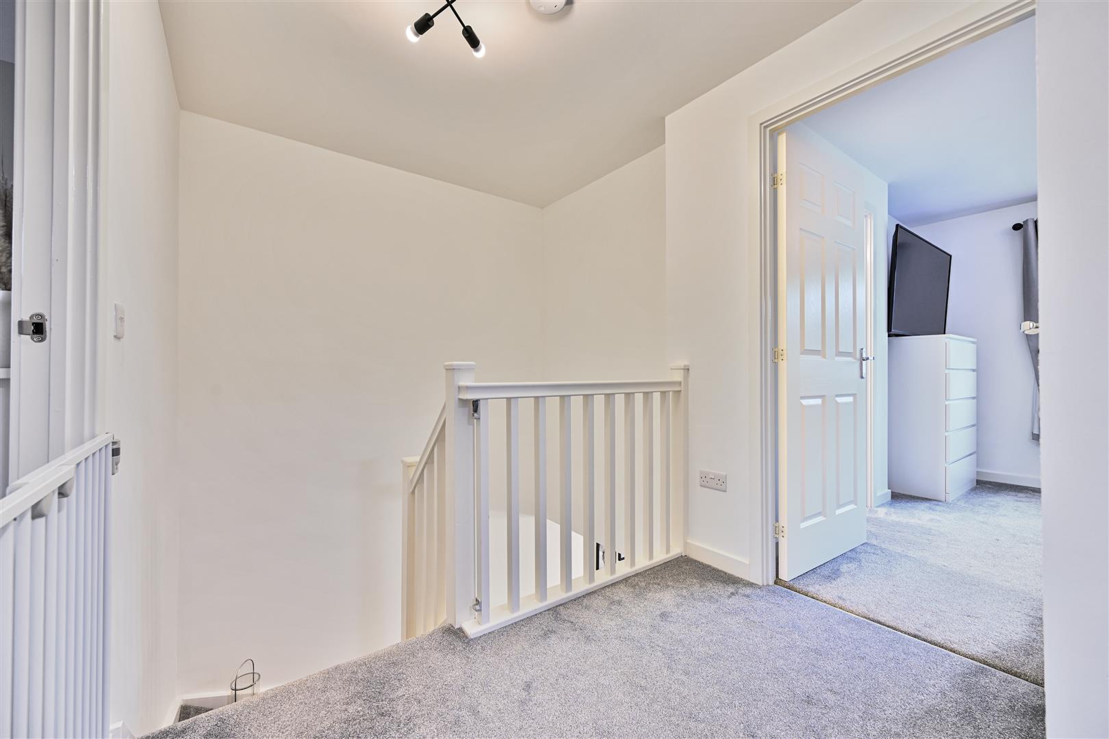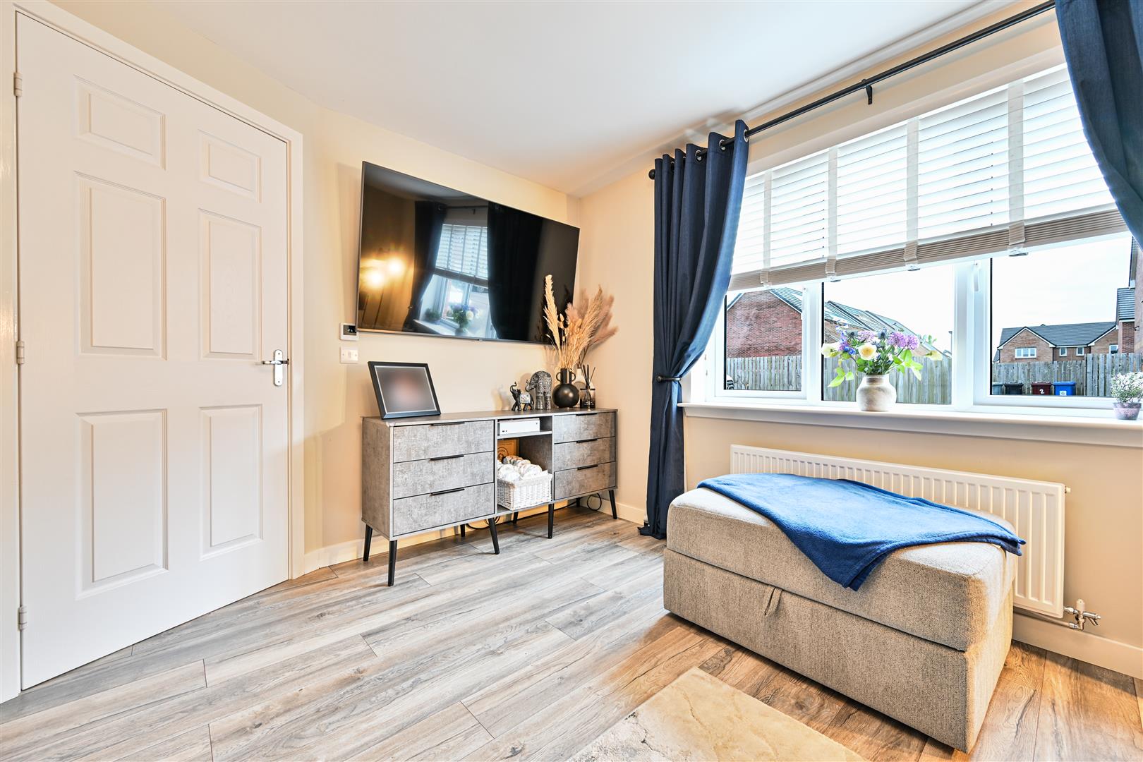 Upstairs, the property boasts three well-proportioned, fully carpeted bedrooms, all offering excellent storage. The master bedroom benefits from a stylish en-suite shower room, while the remaining bedrooms are served by a contemporary, part-tiled family bathroom fitted with a bath, W.C., and wash hand basin.
