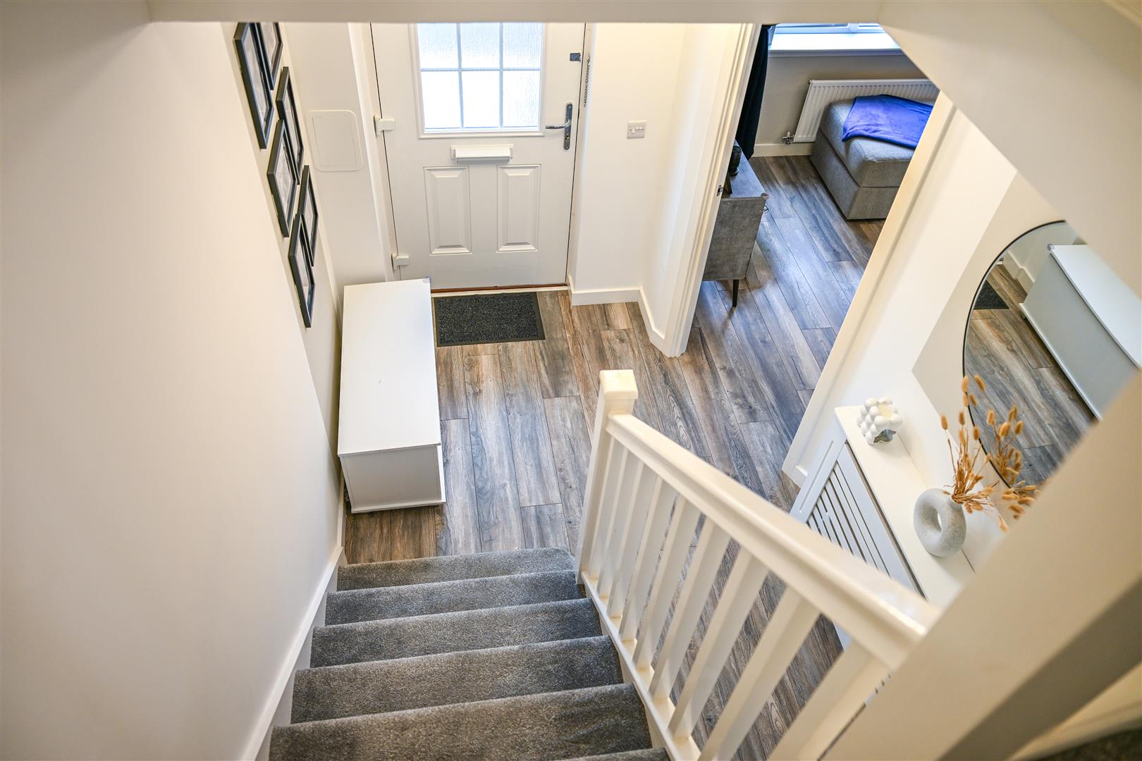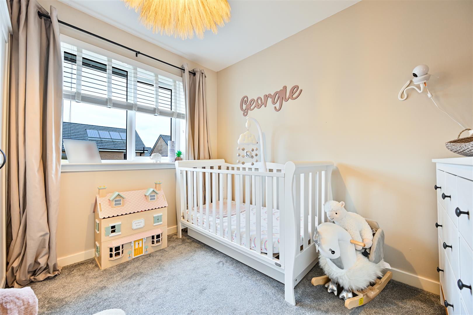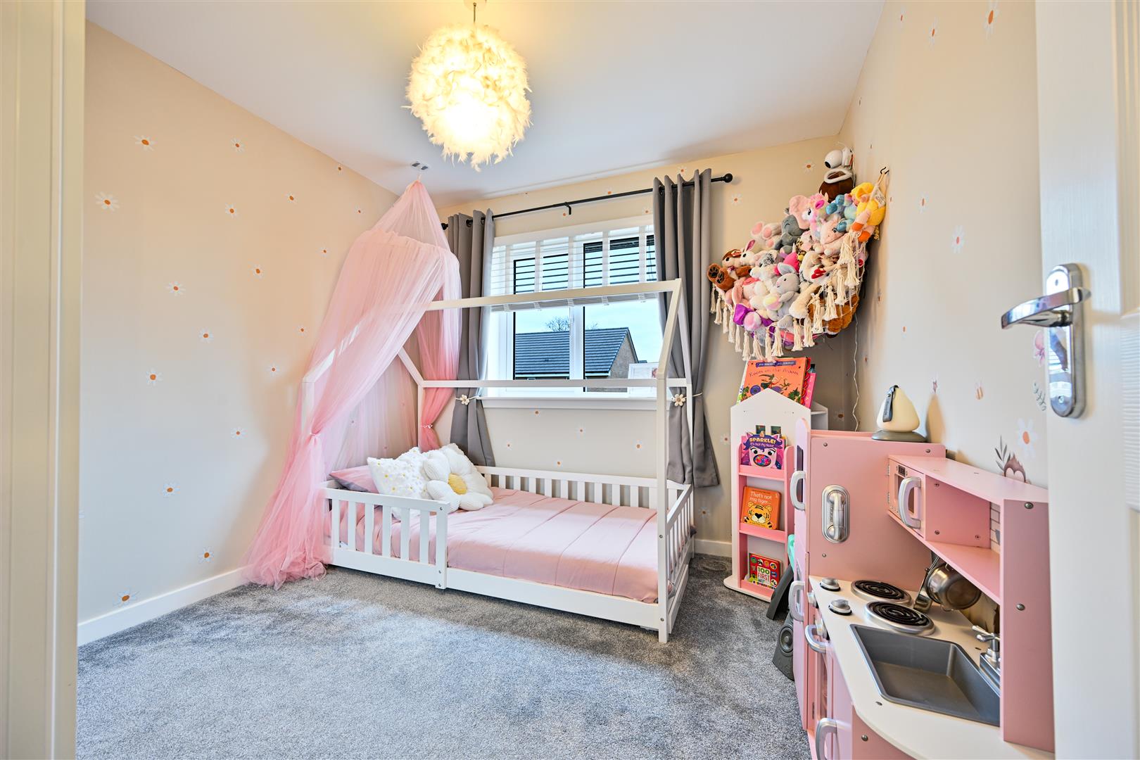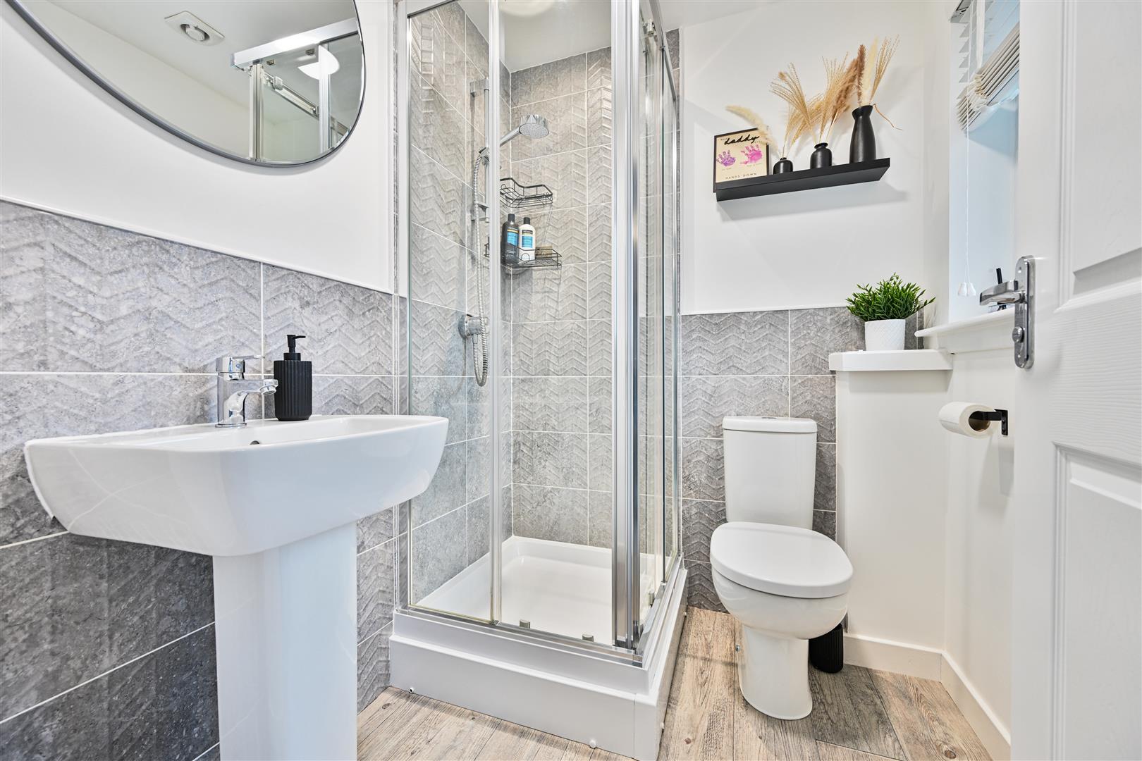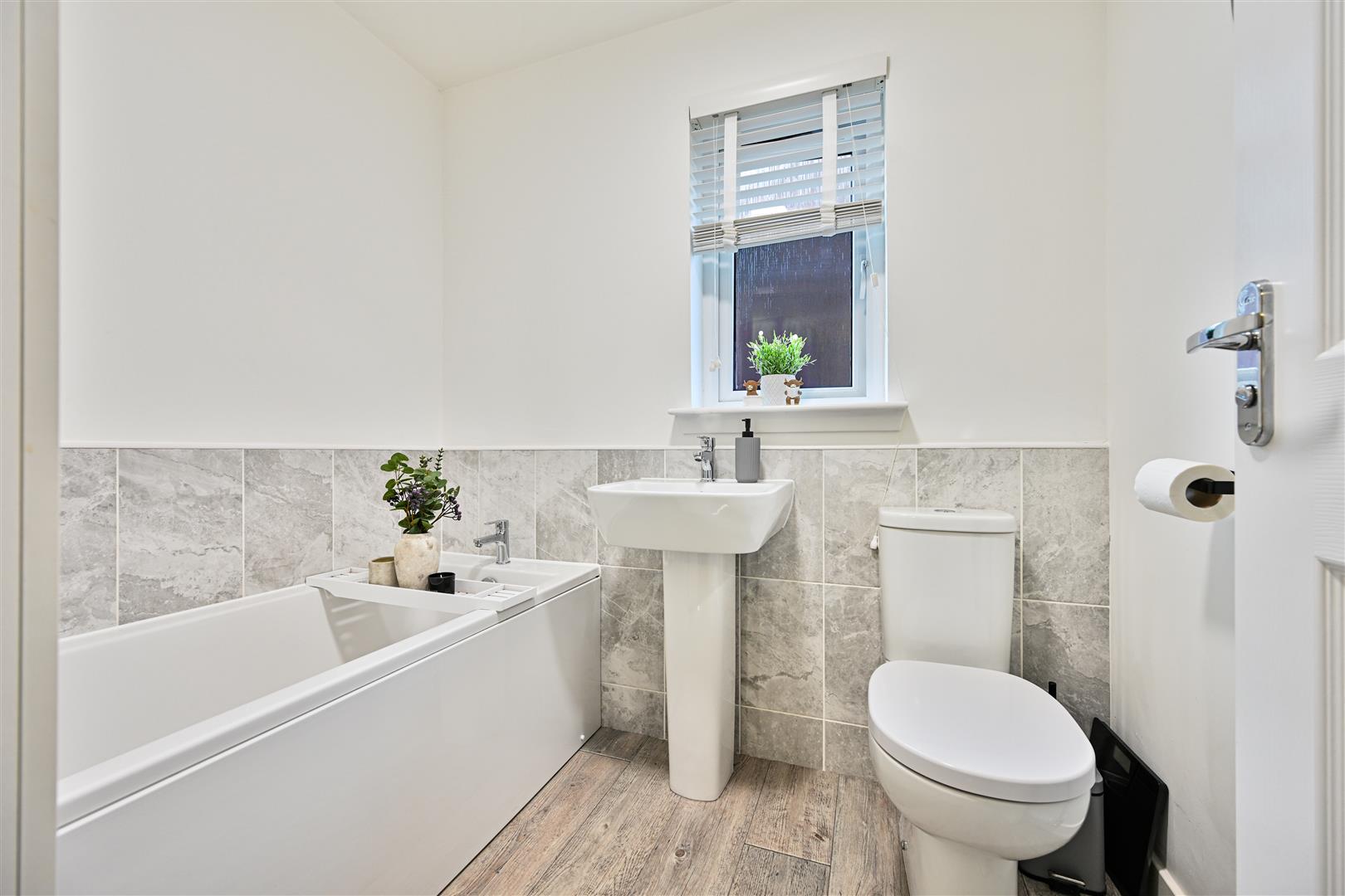 Upstairs, the property boasts three well-proportioned, fully carpeted bedrooms, all offering excellent storage. The master bedroom benefits from a stylish en-suite shower room, while the remaining bedrooms are served by a contemporary, part-tiled family bathroom fitted with a bath, W.C., and wash hand basin.