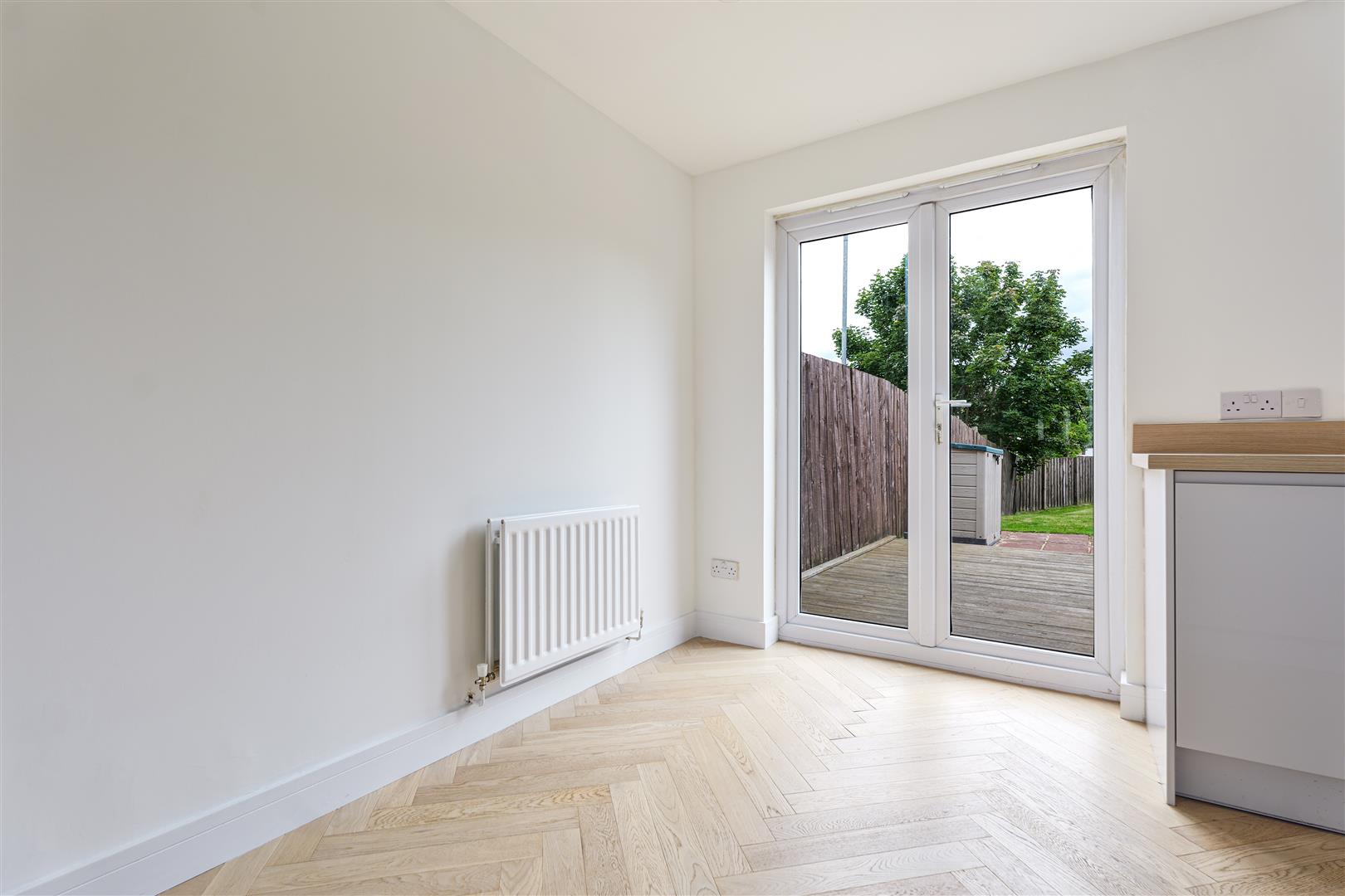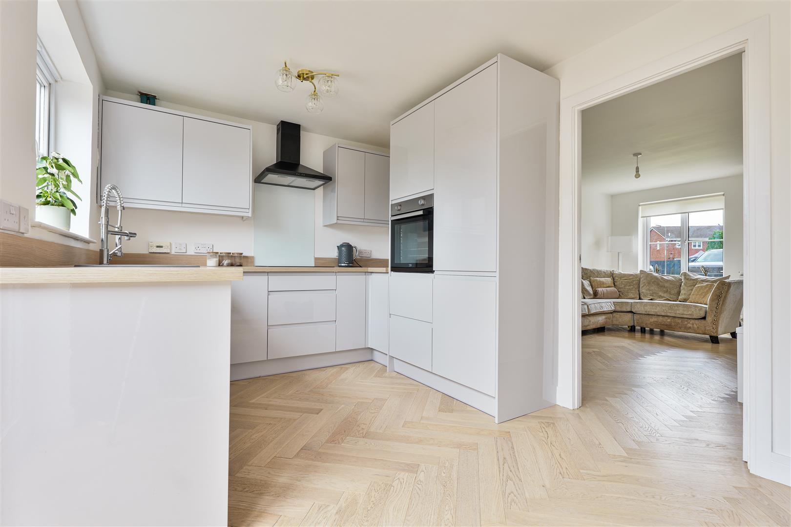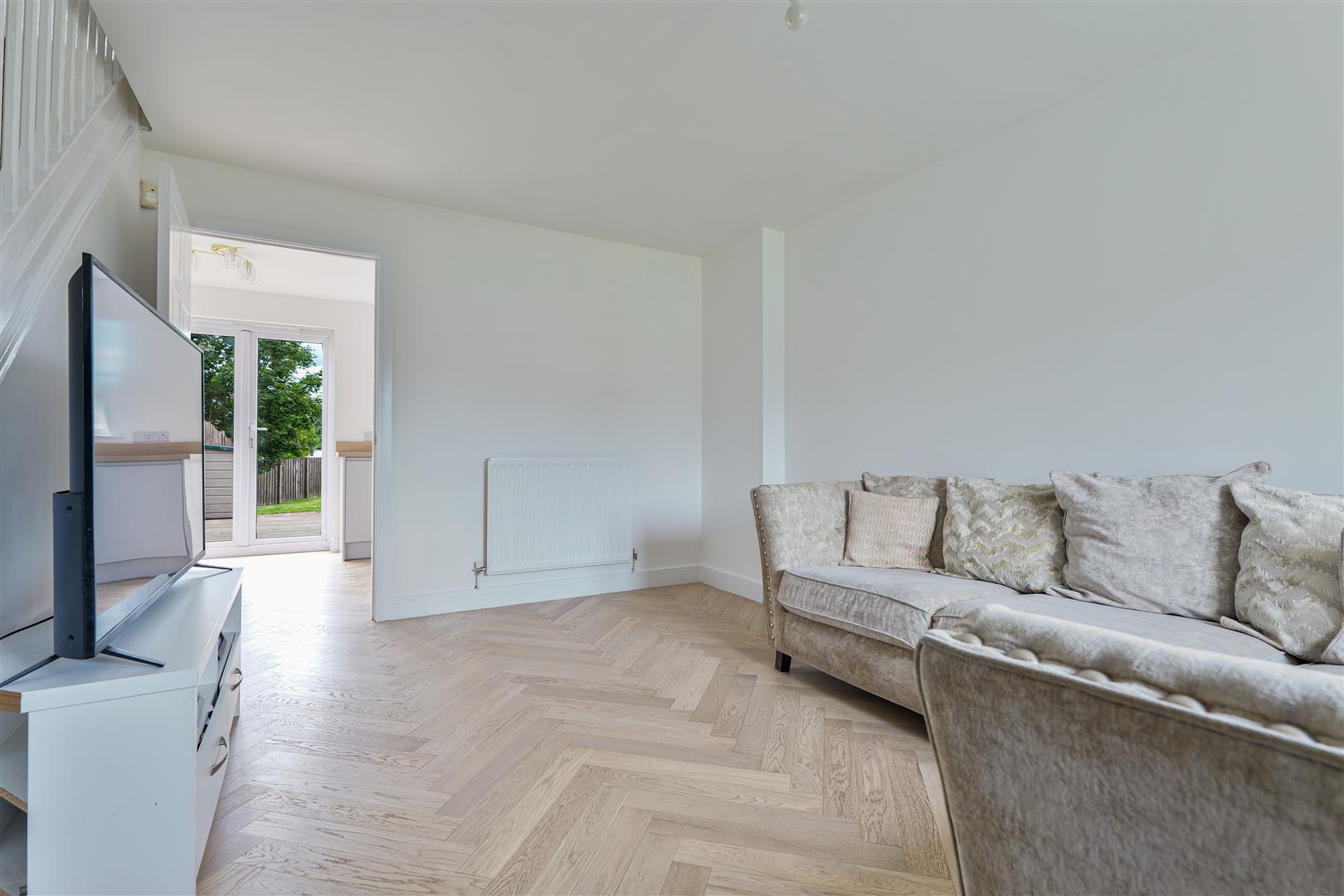 The ground floor welcomes you with an elegant entrance hallway featuring classic herringbone flooring, leading into a bright and good sized open plan front-facing lounge with neutral décor. The stunning kitchen/dining area is fitted with an excellent range of floor and wall units, integrated appliances, and ample space for dining furniture. French doors open directly to the rear garden, creating a perfect indoor-outdoor flow. Completing the ground floor is a convenient cloakroom WC.