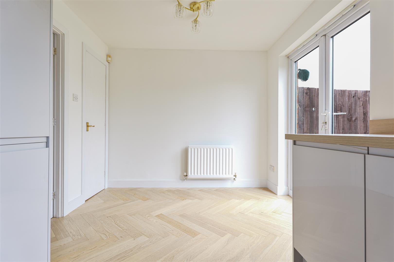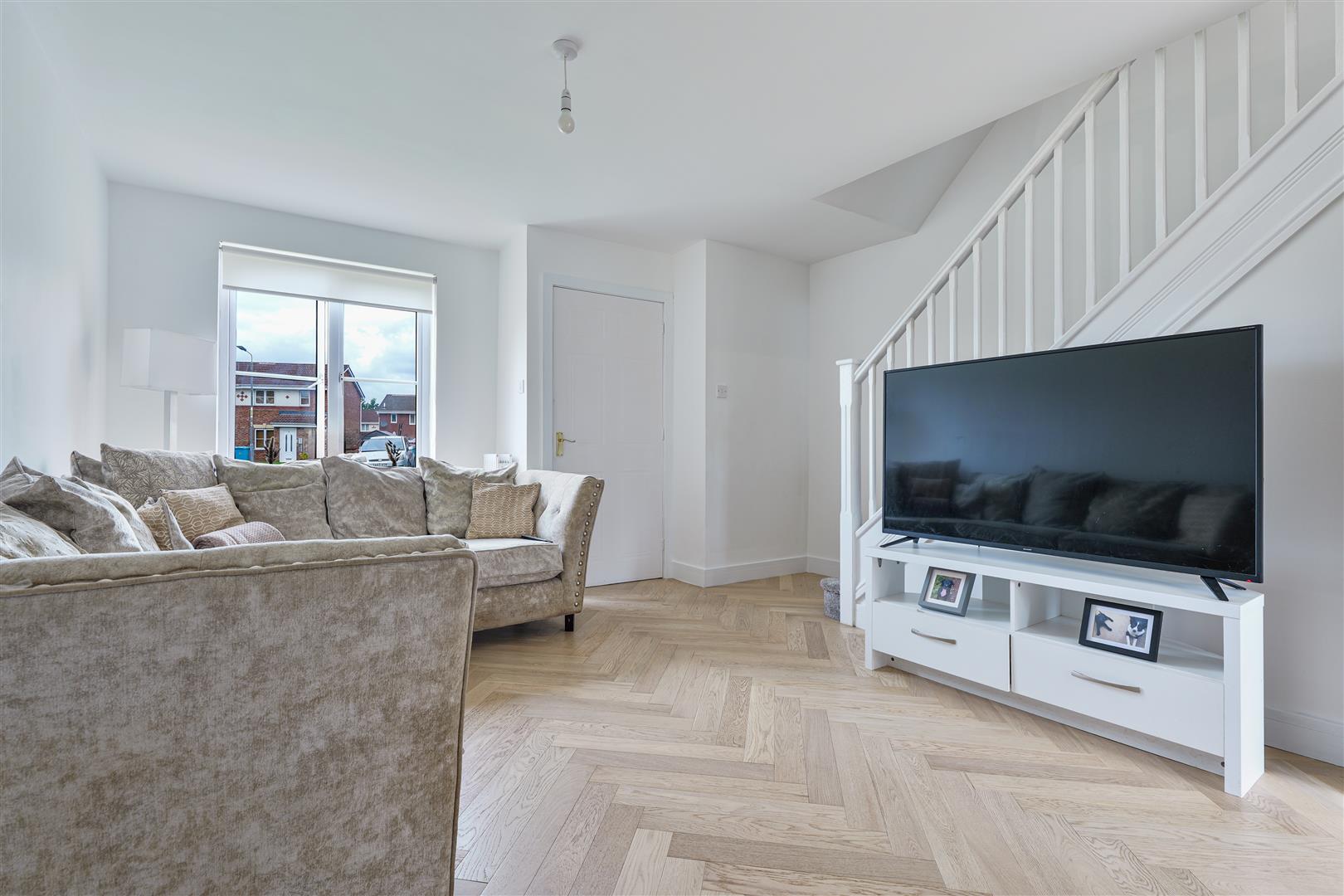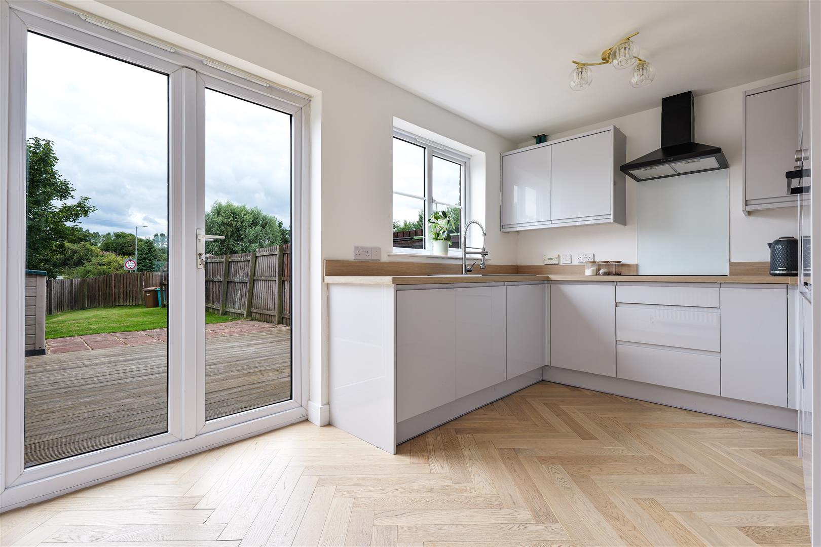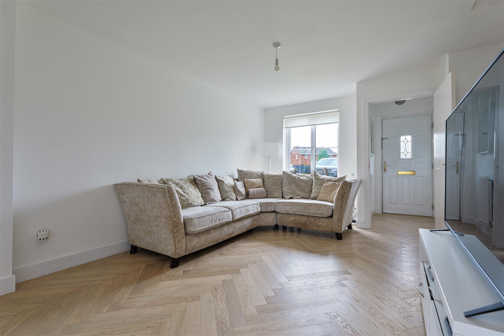 The ground floor welcomes you with an elegant entrance hallway featuring classic herringbone flooring, leading into a bright and good sized open plan front-facing lounge with neutral décor. The stunning kitchen/dining area is fitted with an excellent range of floor and wall units, integrated appliances, and ample space for dining furniture. French doors open directly to the rear garden, creating a perfect indoor-outdoor flow. Completing the ground floor is a convenient cloakroom WC.