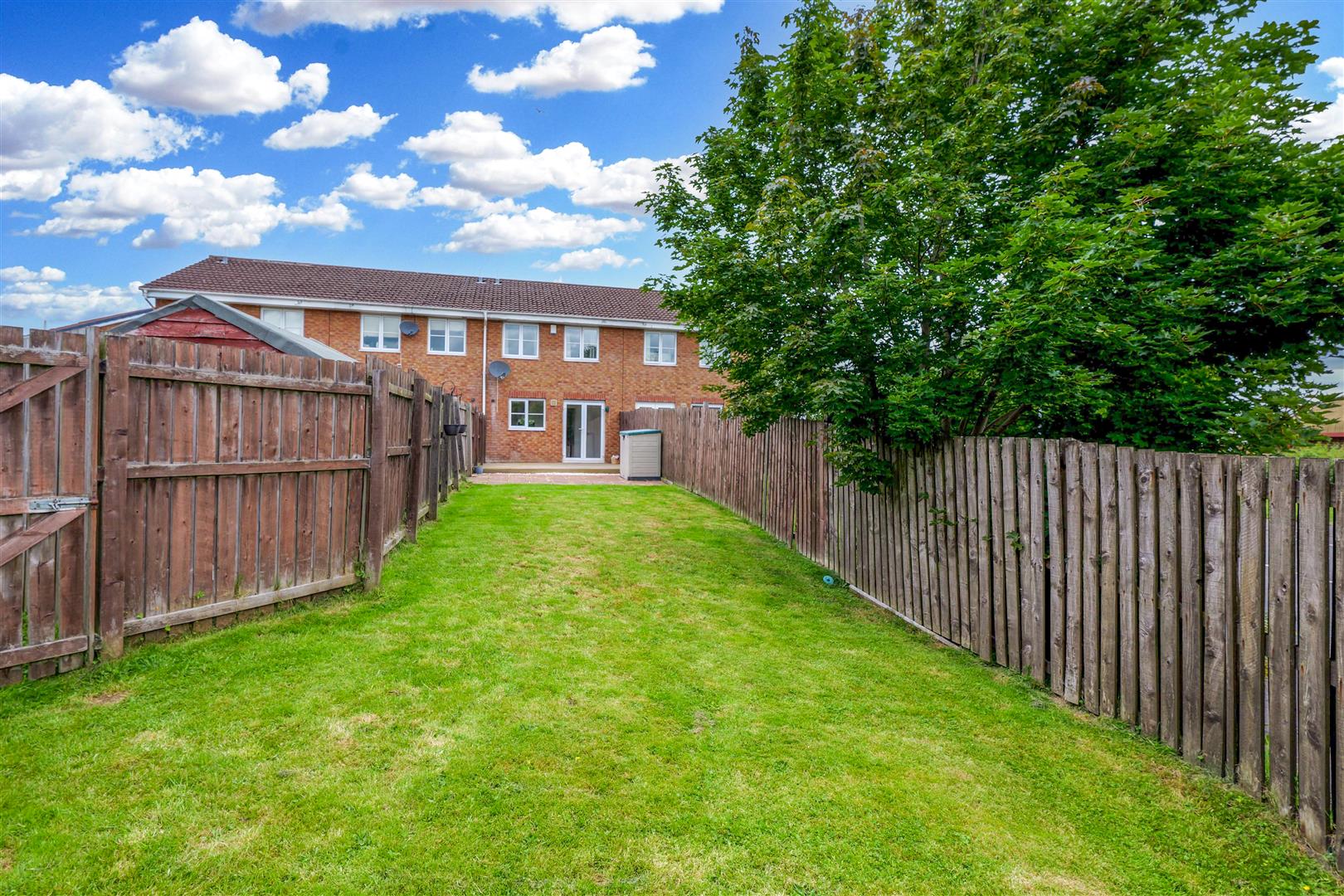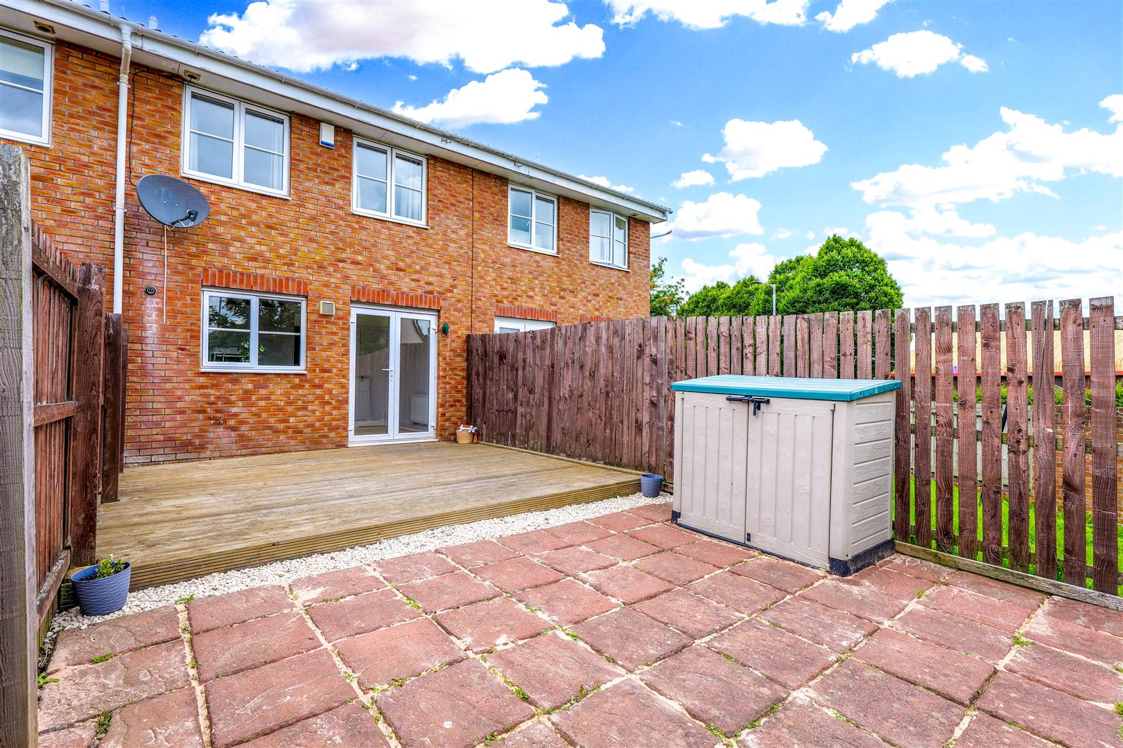 Further benefits include gas central heating, double glazing, and a private, fully enclosed rear garden with a raised decked patio area, paved sections, and a neat lawn — ideal for outdoor entertaining.