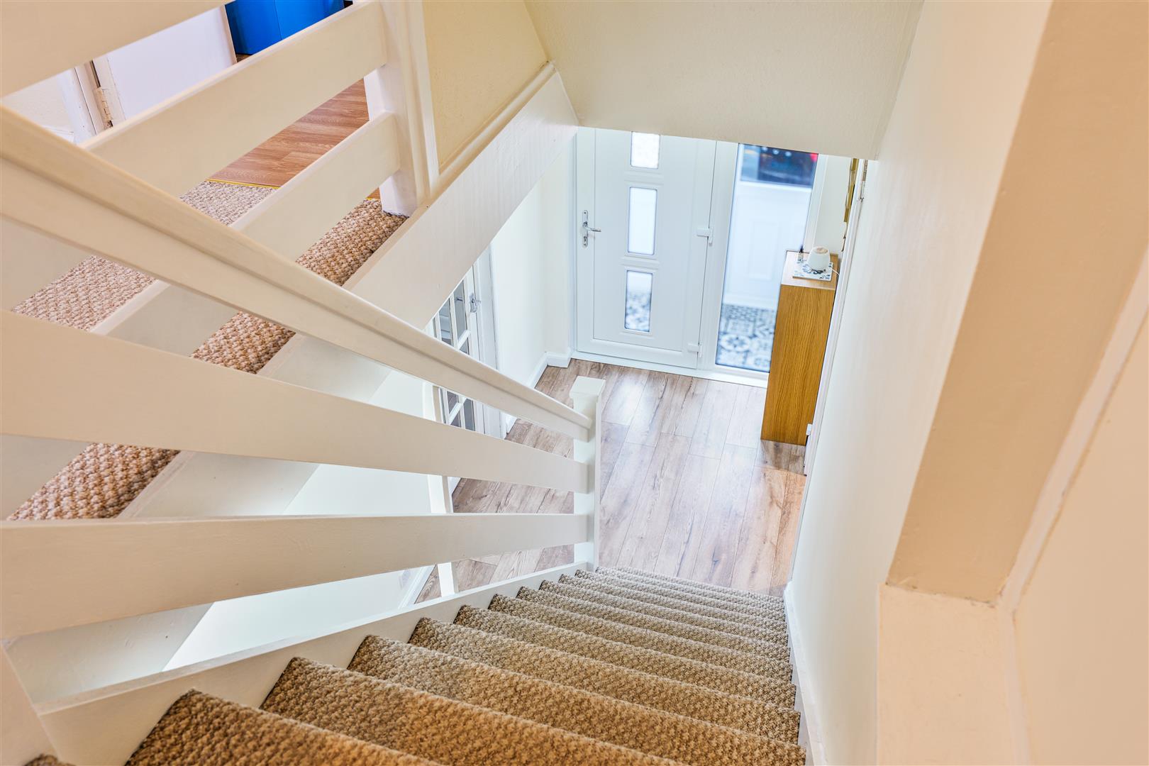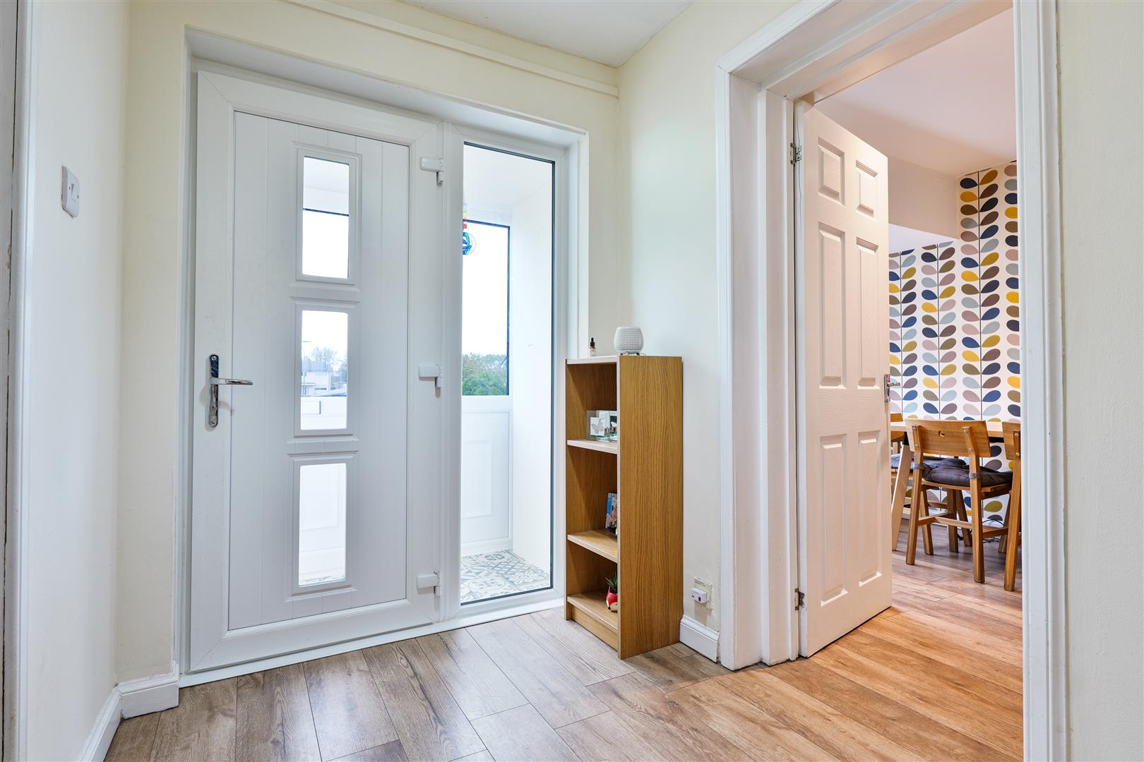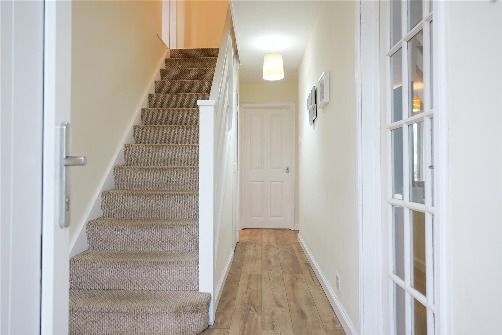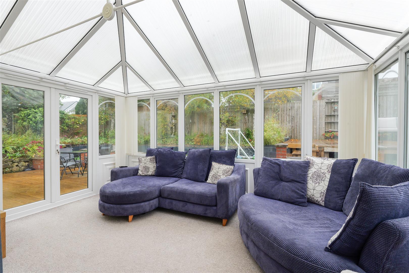 The property welcomes you through an entrance vestibule into a bright and inviting hallway. The spacious living room features a front-facing window and flows seamlessly into an additional living area, creating a perfect space for both relaxation and entertaining. The home boasts a stunning, modern kitchen with sleek fittings, complemented by a spacious dining area and french doors that open onto the rear garden, allowing natural light to fill the space. A conservatory to the rear of the property offers an ideal setting for larger households or those seeking extra living space. The accommodation is further complemented by a convenient downstairs WC.