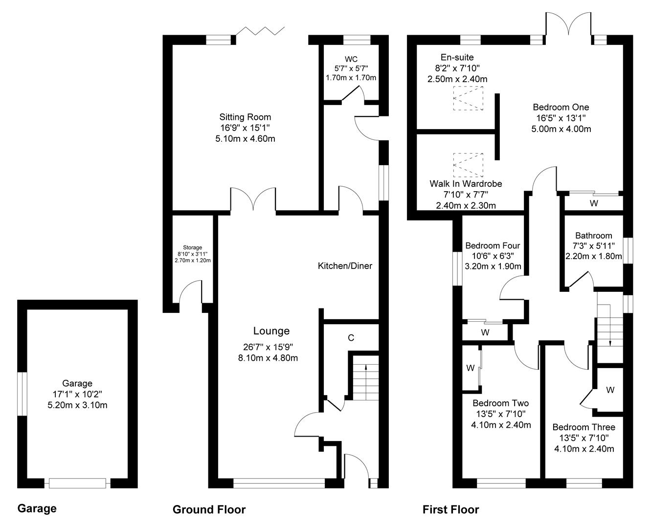 On the upper floor the landing gives access to four good size bedrooms, all of which are carpeted throughout with the master boasting a walk in dressing room and a beautiful en-suite consisting of a walk-in shower and jacuzzi bath. Completing this floor is a family bathroom with three piece suite with over bath shower.